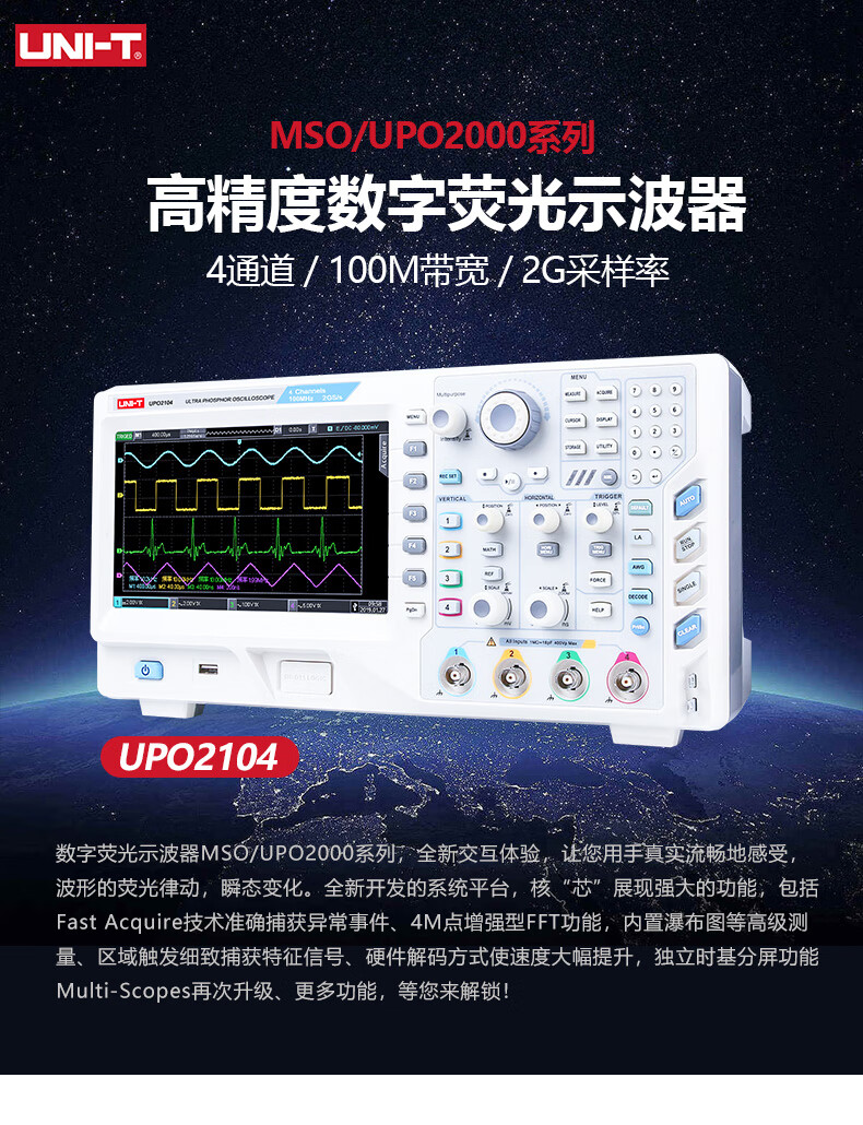 Unilever Industrial Products UPO2104 four-channel digital fluorescence oscilloscope 100M bandwidth 2G sampling rate digital oscilloscope