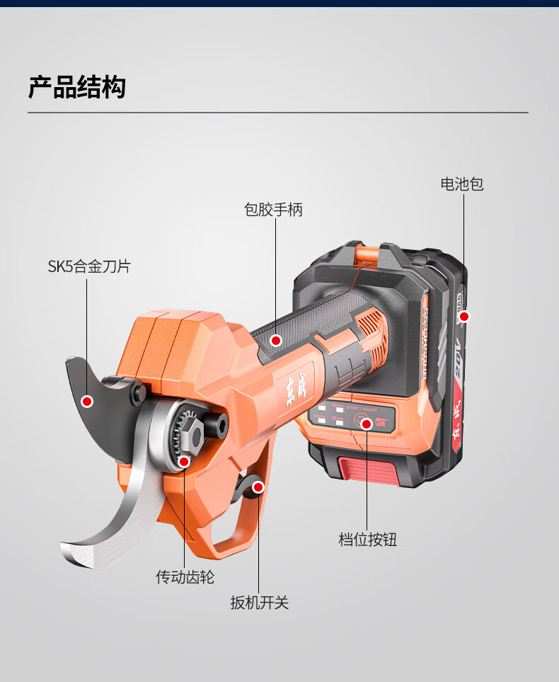 Dongcheng lithium battery brushless pruning shears high power DYD20V-35A 20V2.0Ah dual electric fruit tree scissors