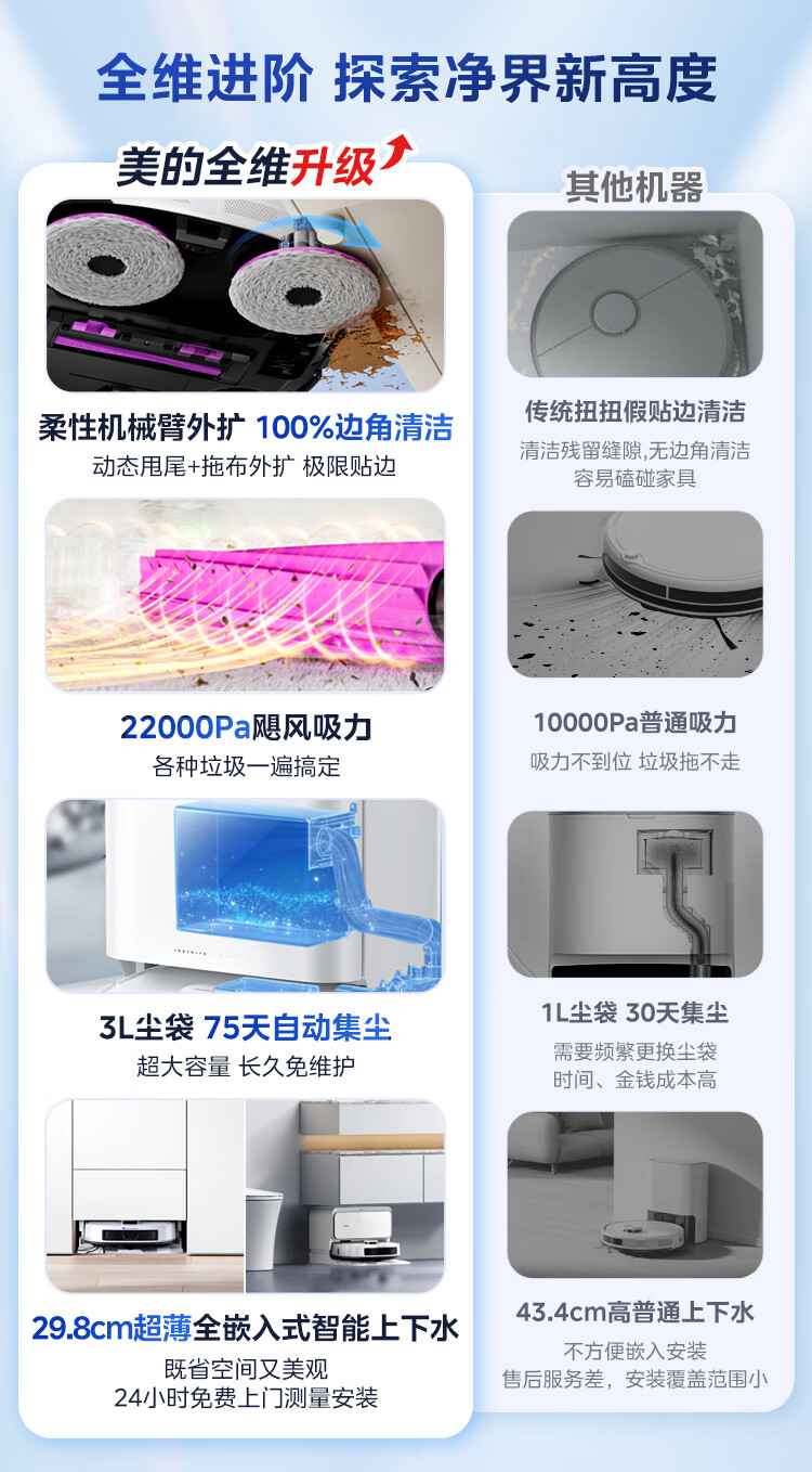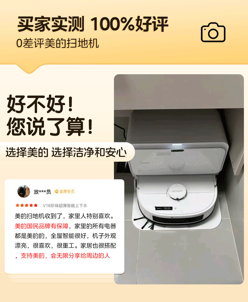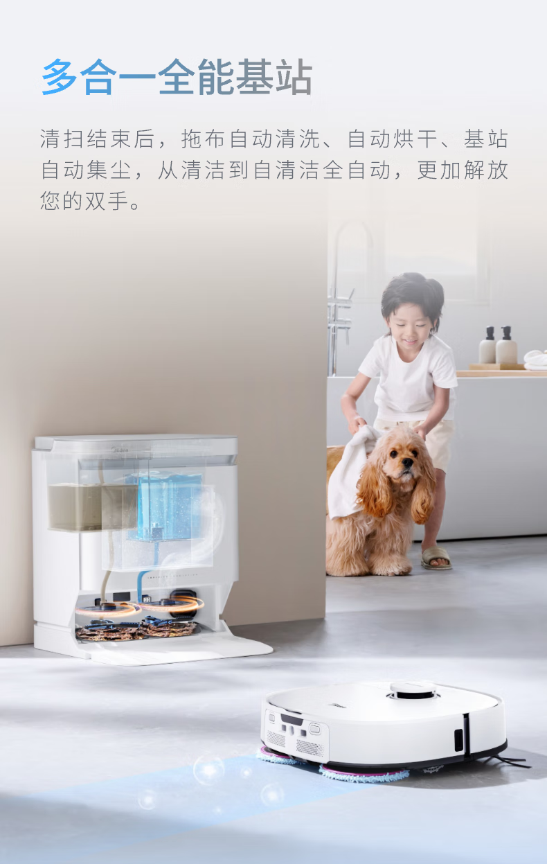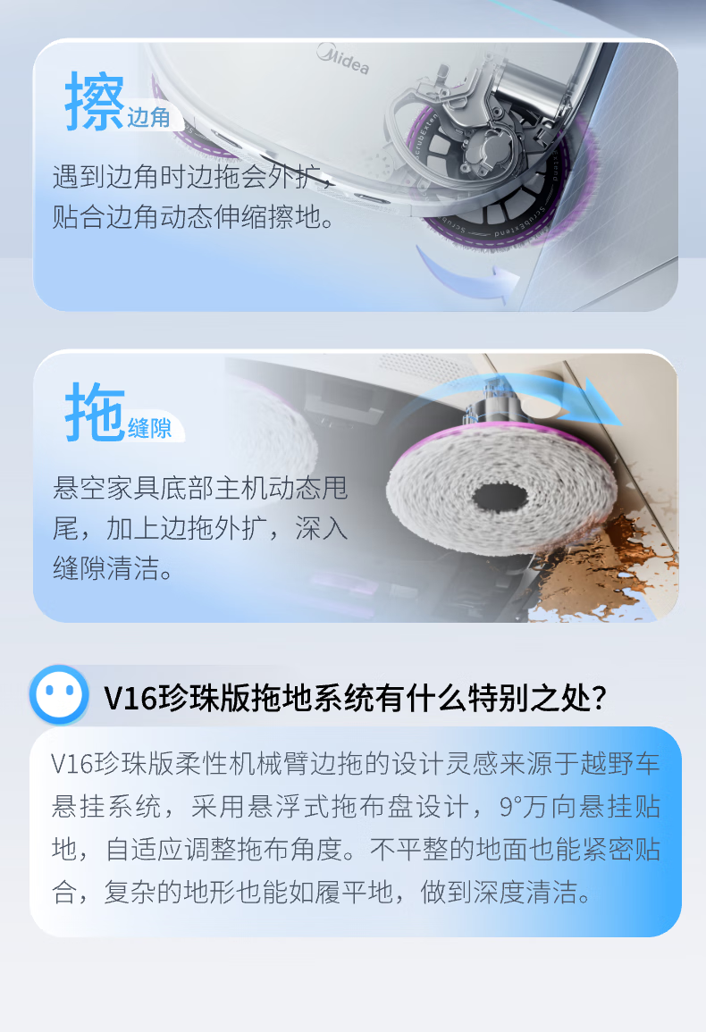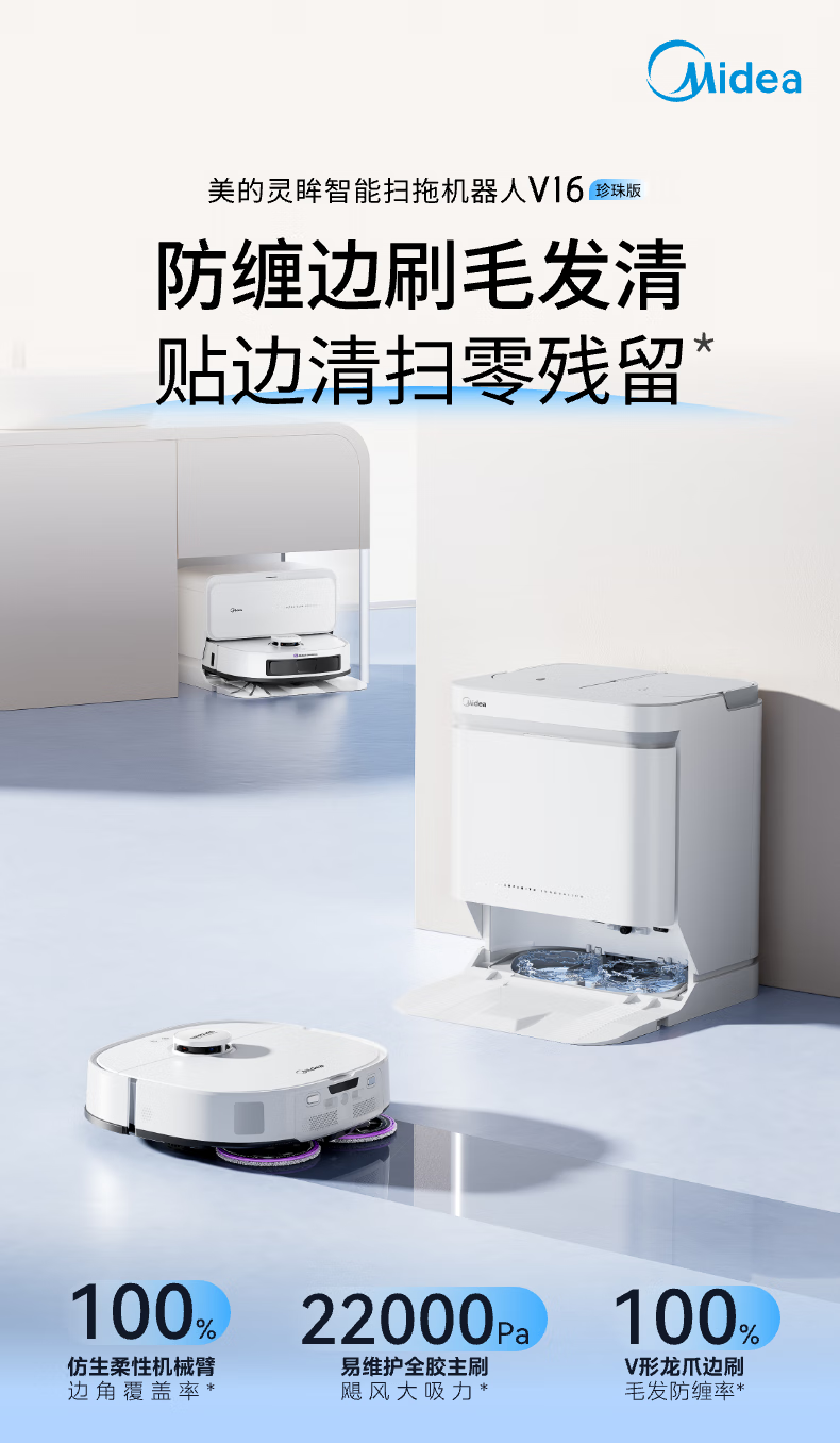 Midea V16 Pearl Edition sweeping robot, ultra-thin upper and lower water version, integrated sweeping and mopping, fully automatic base station cleaning and sterilization, maintenance-free floor scrubber, integrated suction and mopping New Year gift