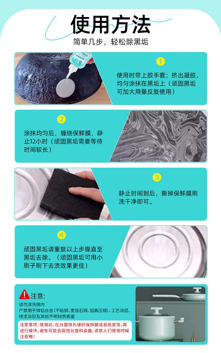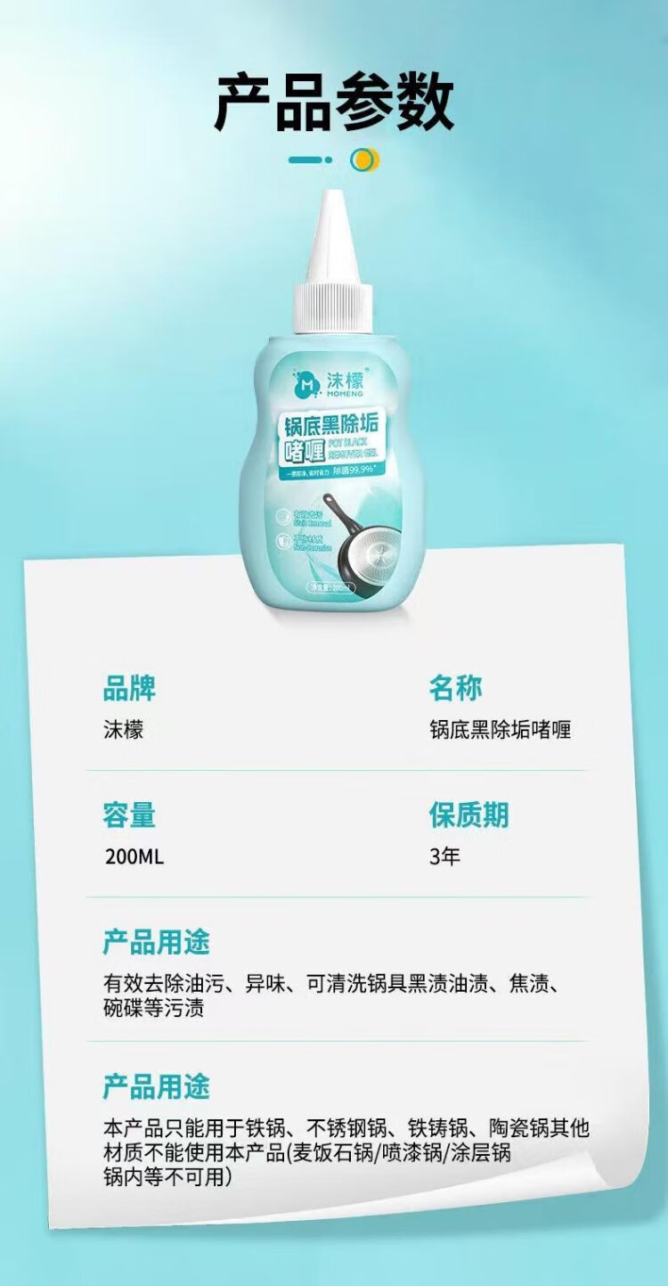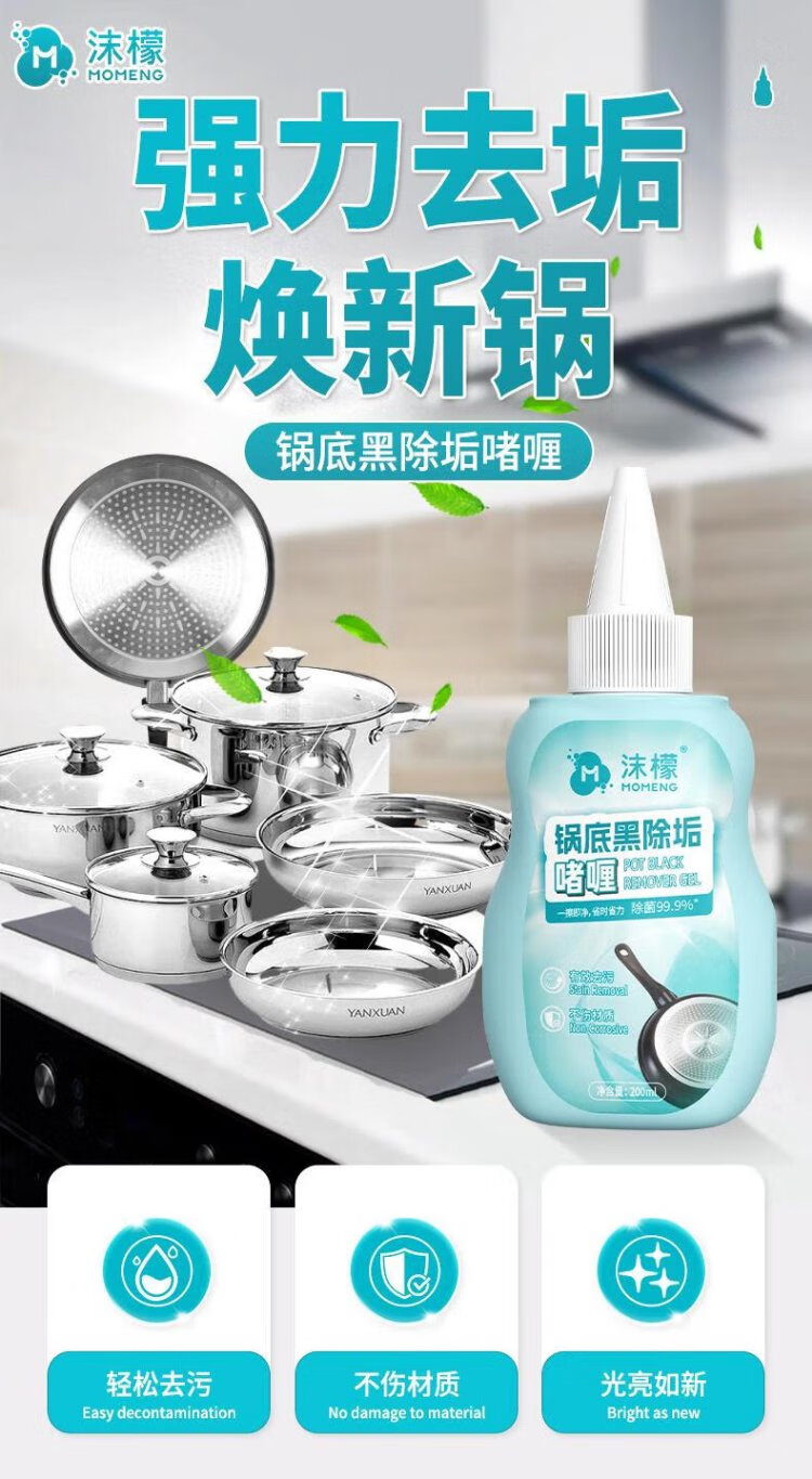 Momeng pot bottom black scale cleaner 200ml*3 stainless steel cleaning and descaling gel pot bottom powerful descaling and pot washing artifact