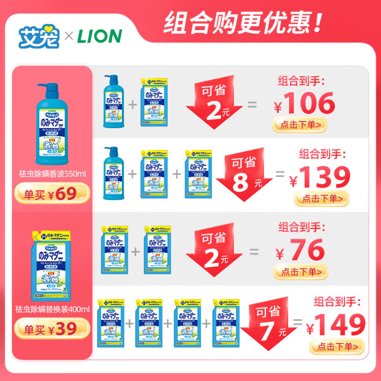Lion King Lion King Pet Shower Gel Set for Dogs Deodorizing, Deodorizing, Antibacterial, Low-Irritation Dogs 550ml+400ml