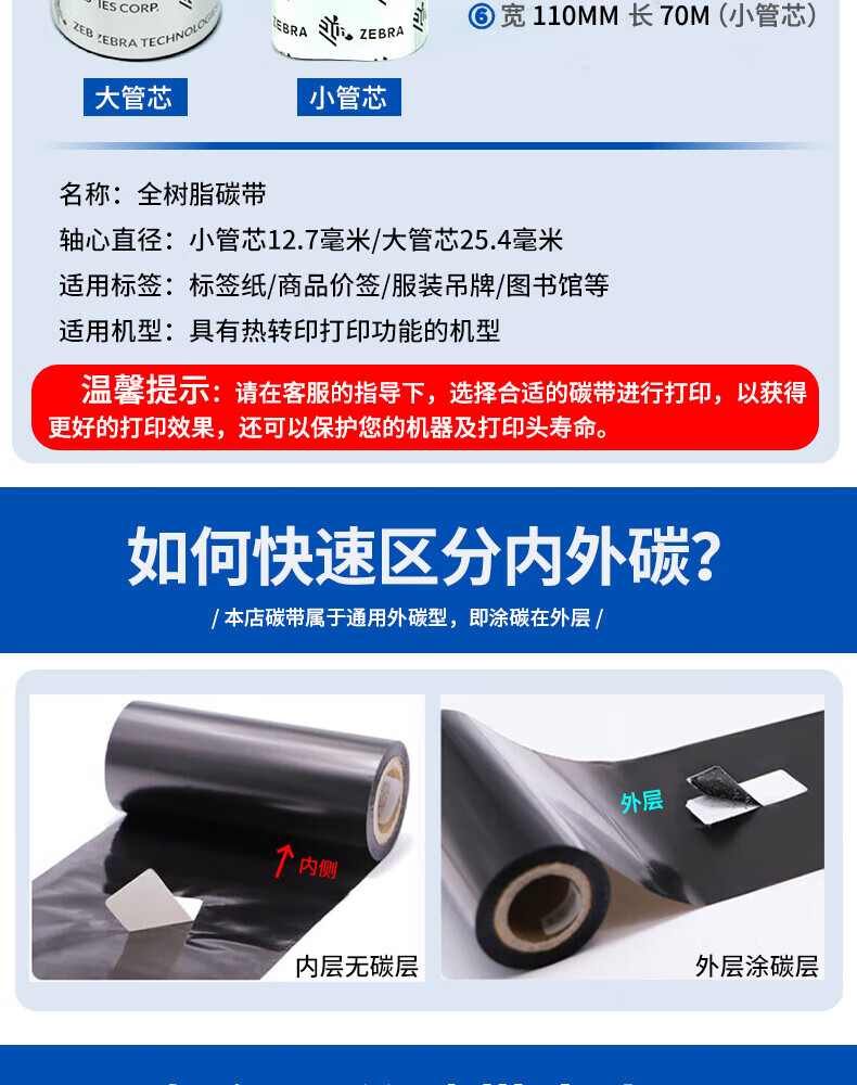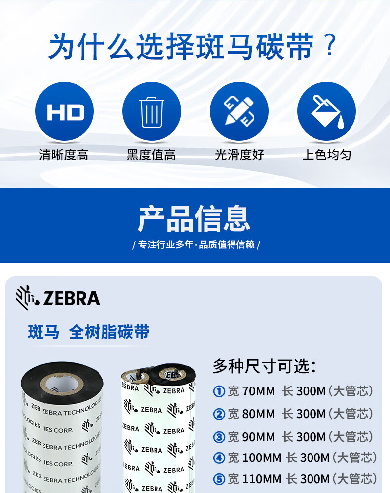 ZEBRA TECHNOLOGIES full resin-based ribbon A4203BK special ribbon for barcode label printer 110MM*300M/roll