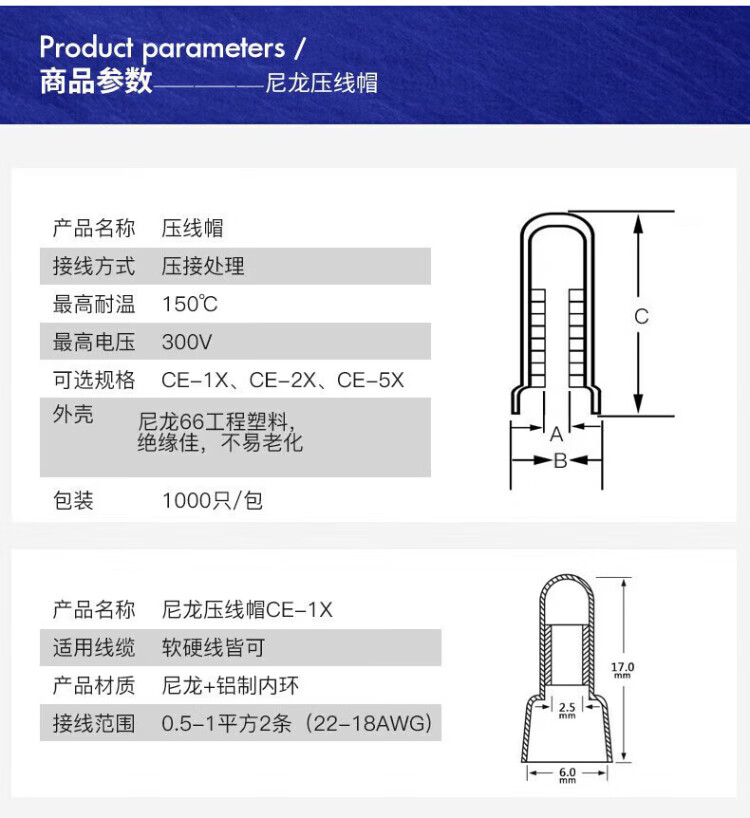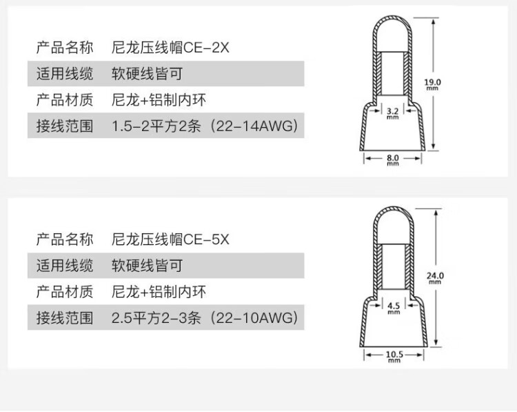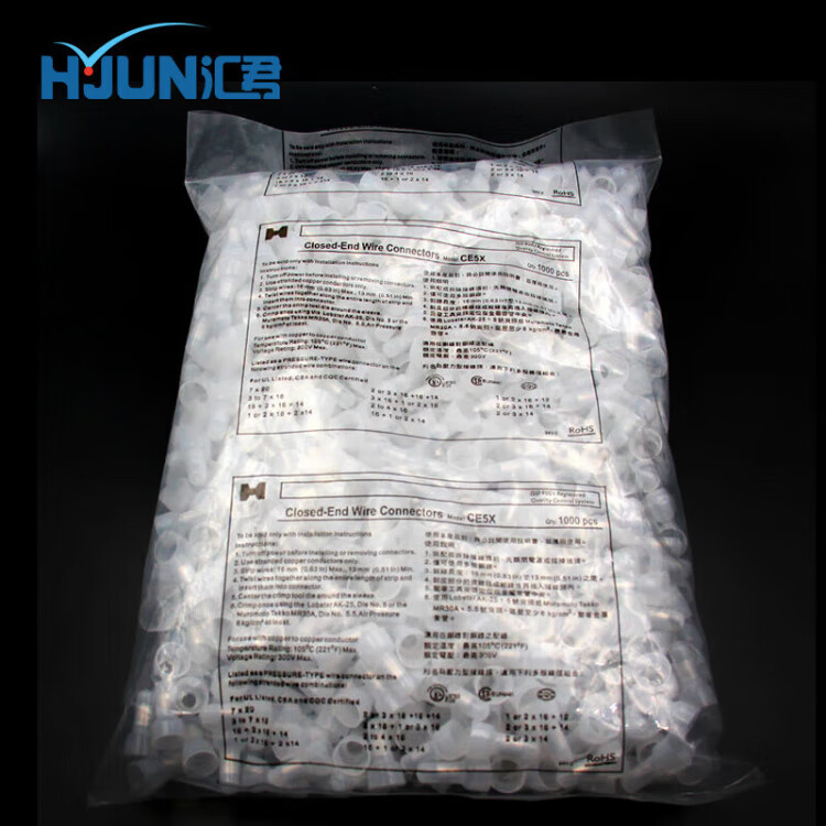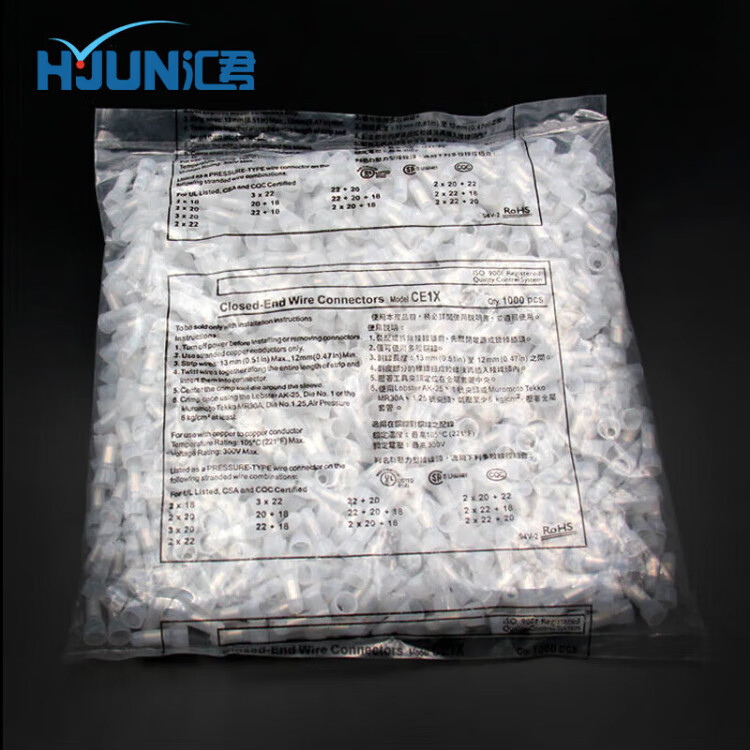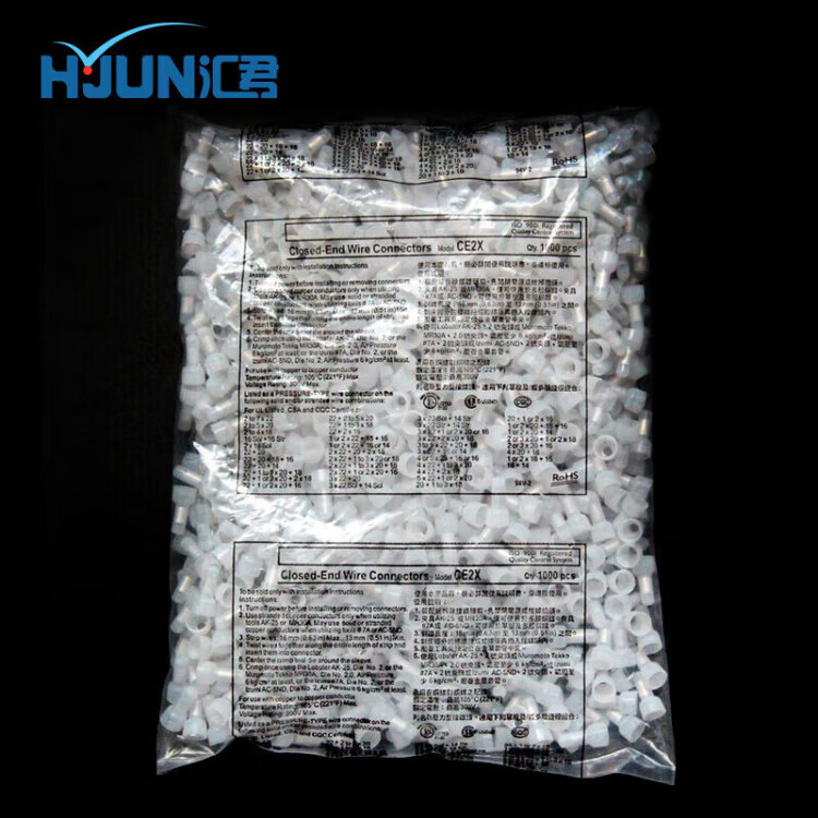 Huijun Terminal Block Terminal Cap Closed Terminal Nylon Crimp Cap Closed Terminal Spring Spiral Nipple Terminal CE-1X 1000 Pieces/Pack White