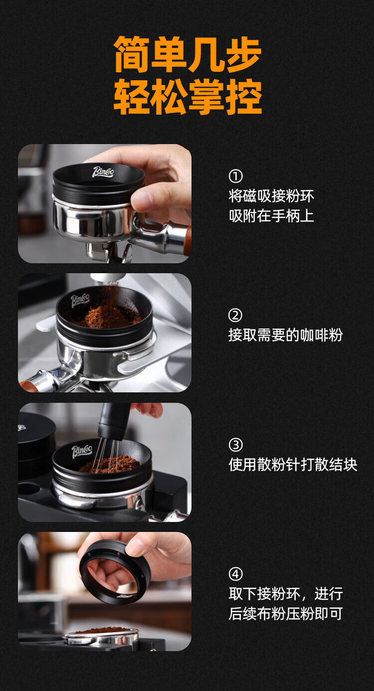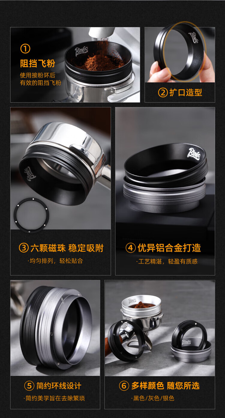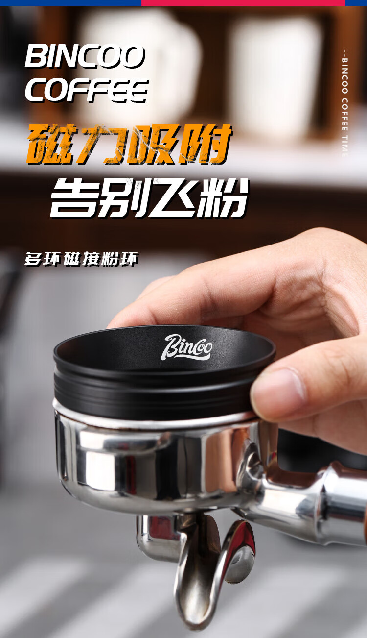 Bincoo coffee powder ring magnetic handle powder dispenser multi-sided wide mouth anti-flying powder Italian appliance 51/58mm