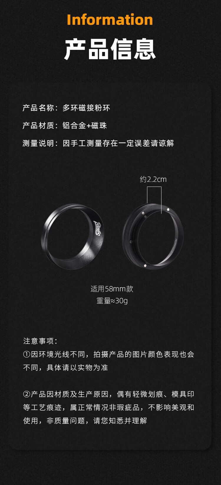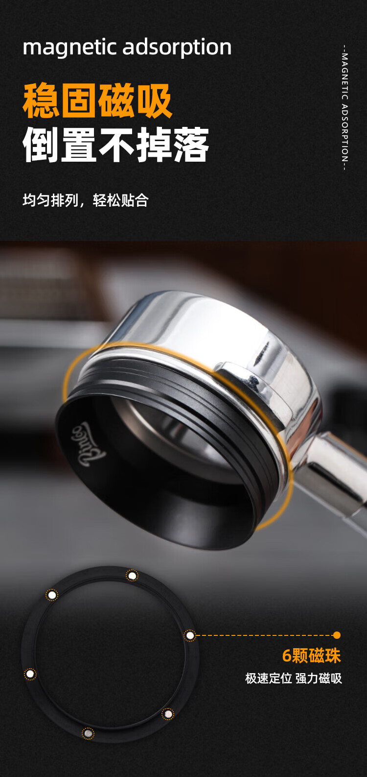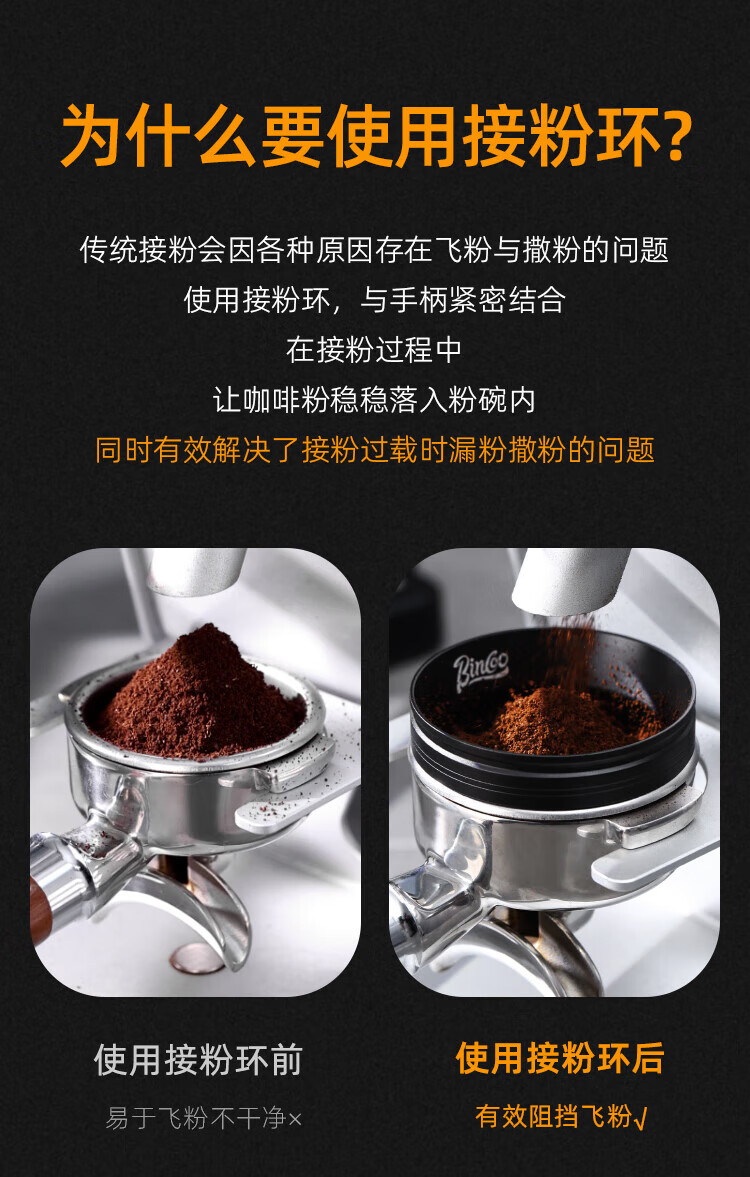 Bincoo coffee powder ring magnetic handle powder dispenser multi-sided wide mouth anti-flying powder Italian appliance 51/58mm