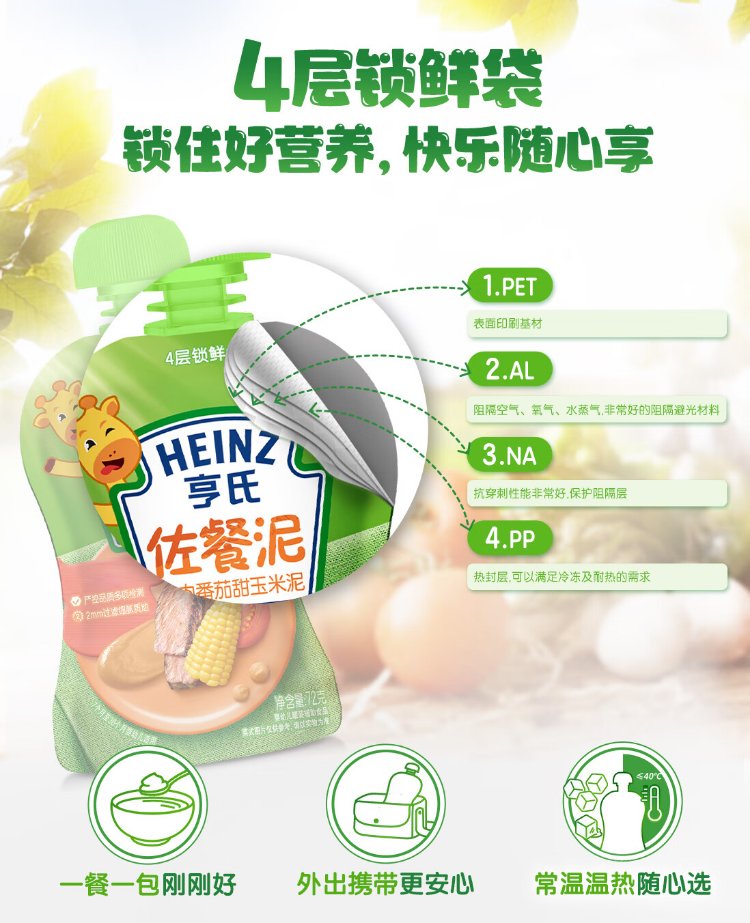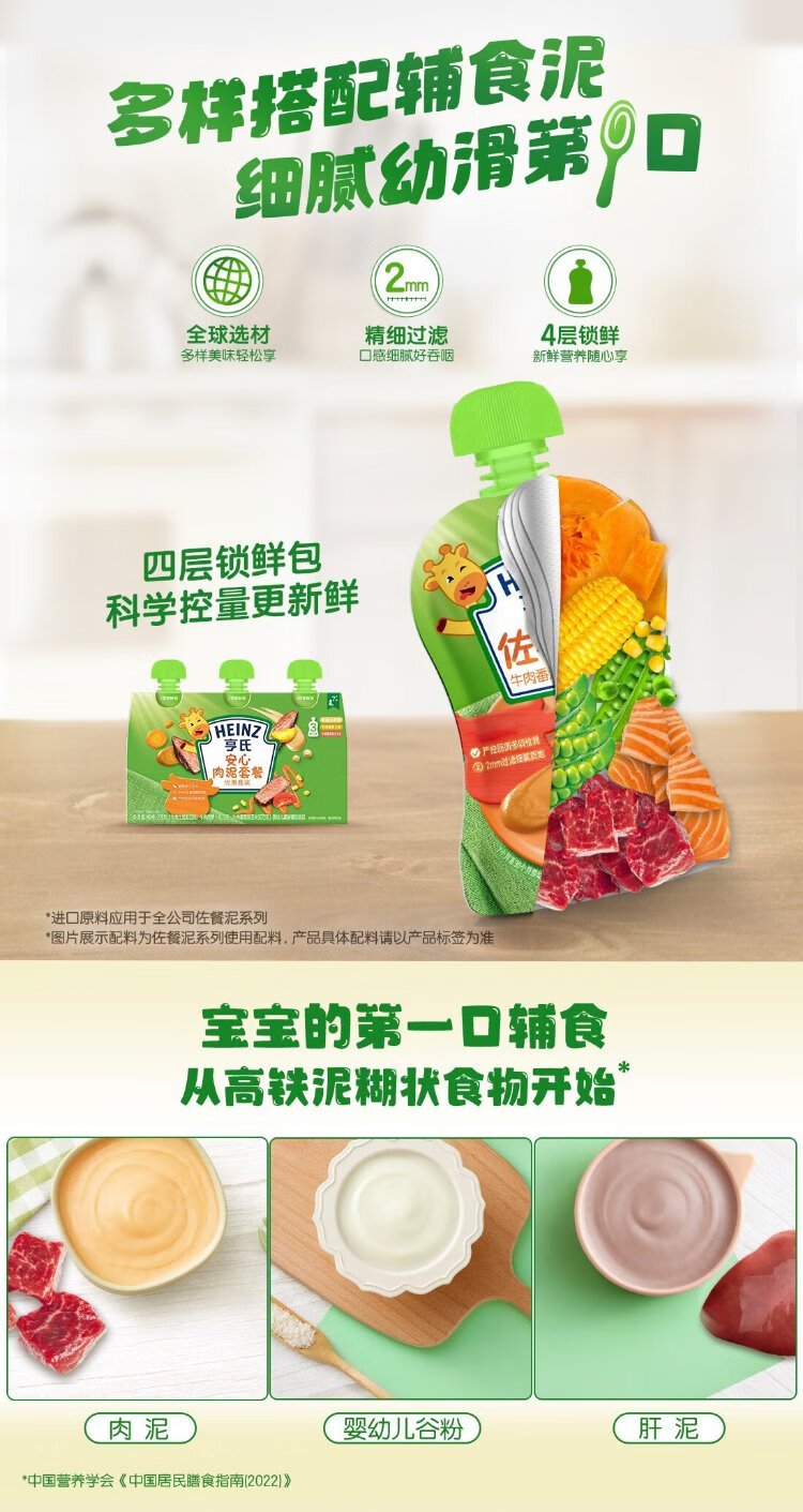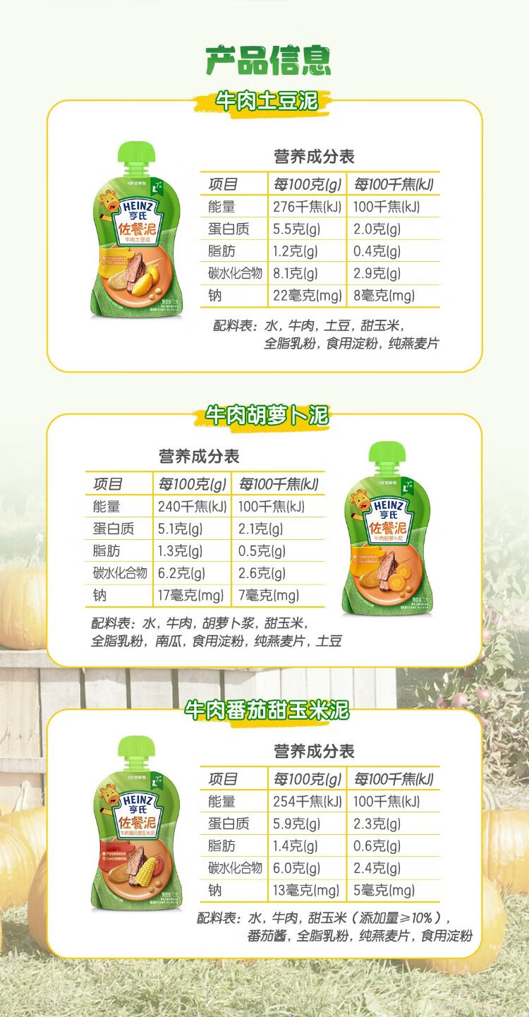 Heinz Baby Complementary Food Nutritious Baby Meat Puree Bulk Beef and Vegetable Meat 72g*3 Bags 2 Assemblies 7 Months+