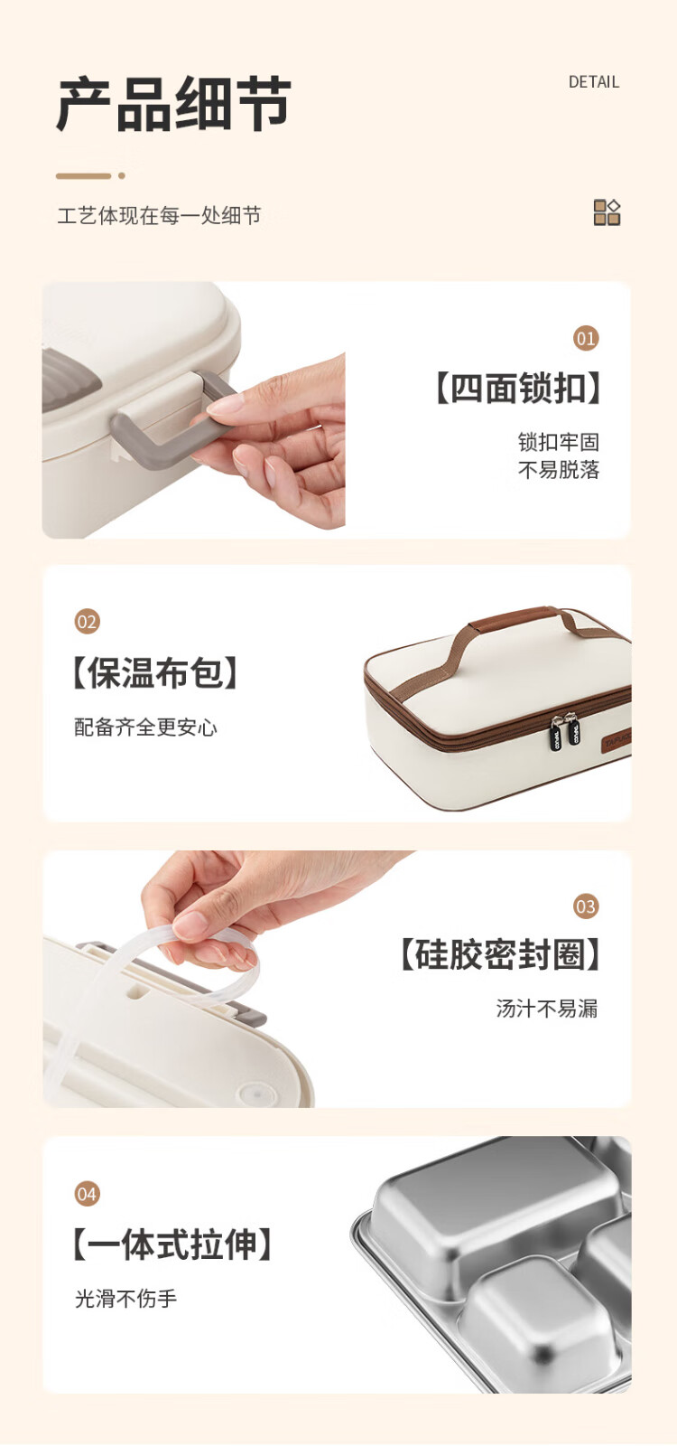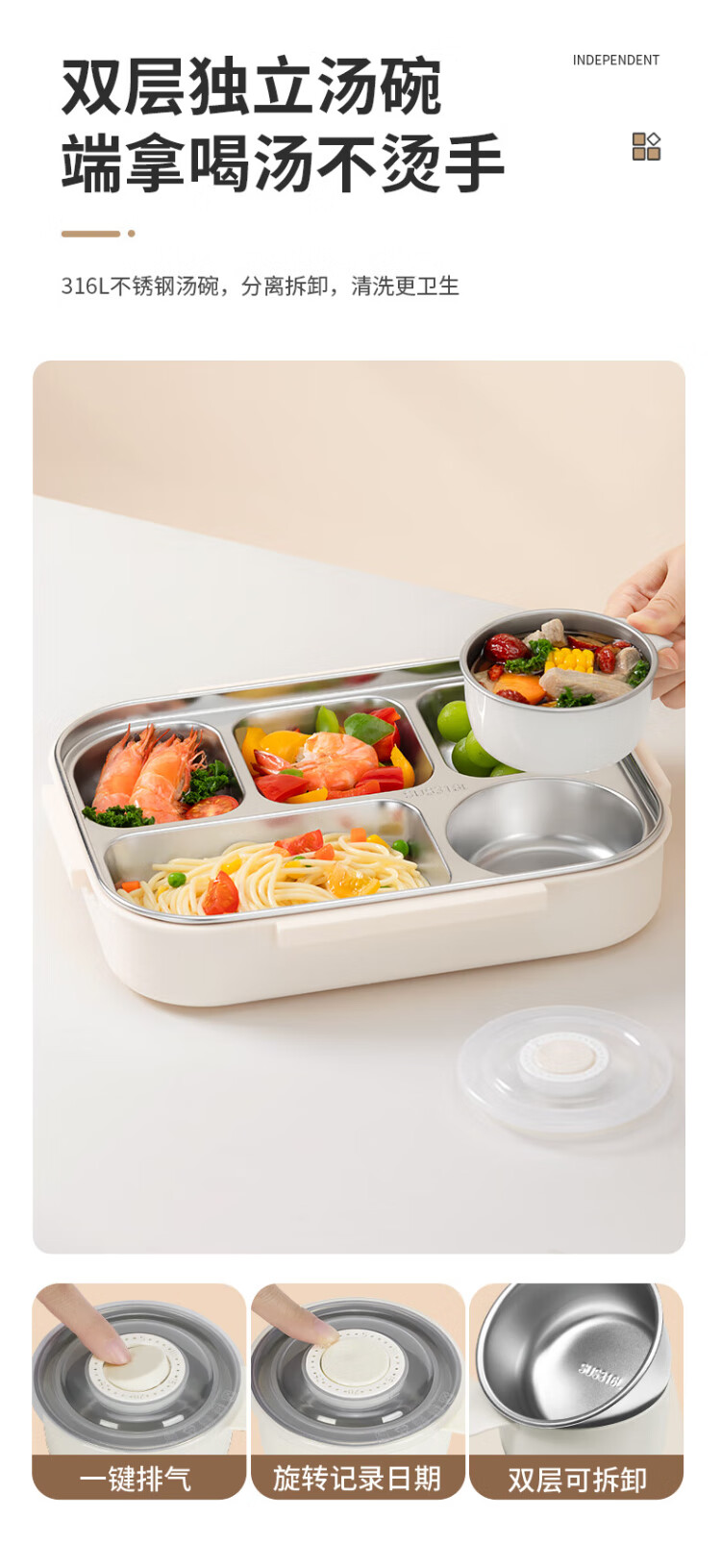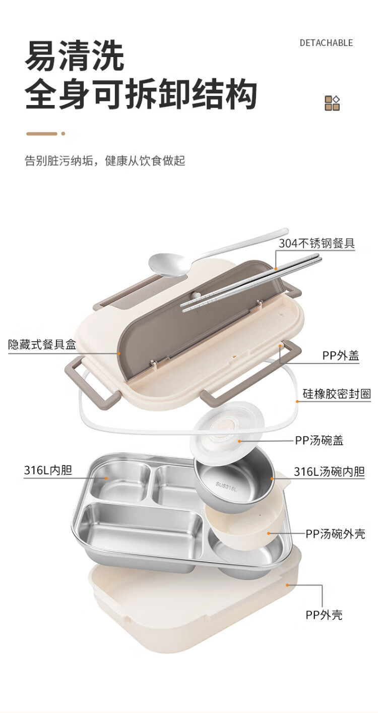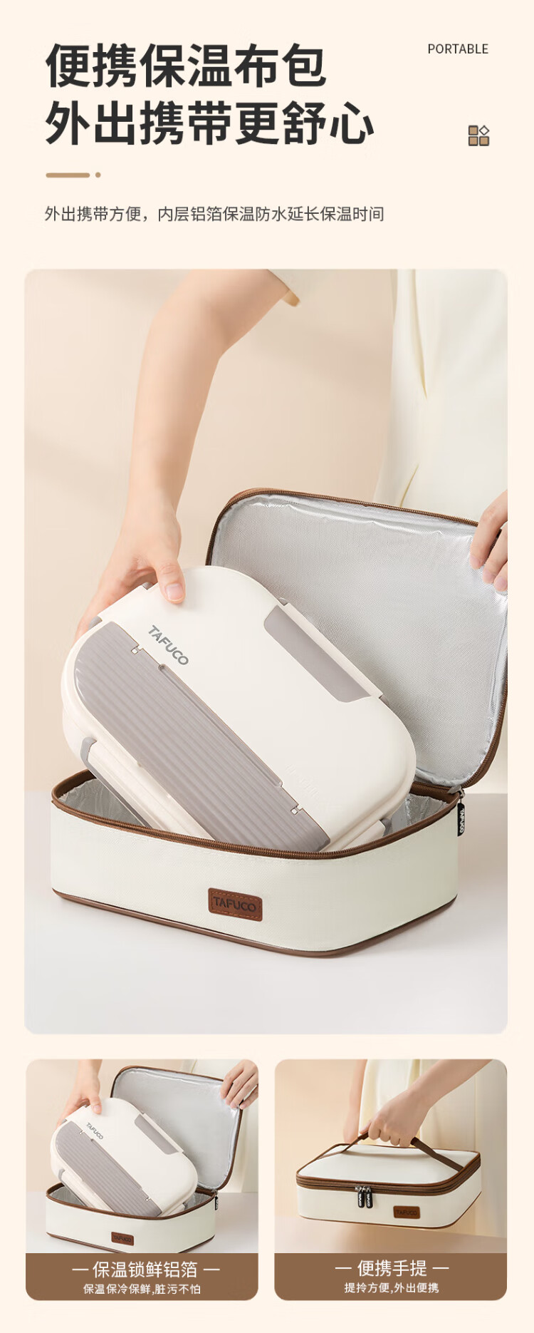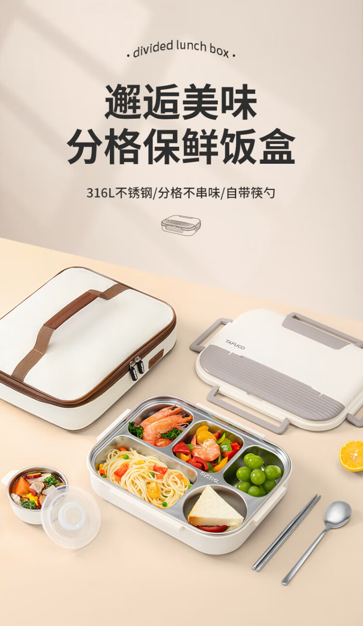 TAFUCO lunch box stainless steel 316L food grade insulated lunch box for primary school students and office workers canteen lunch box T5313