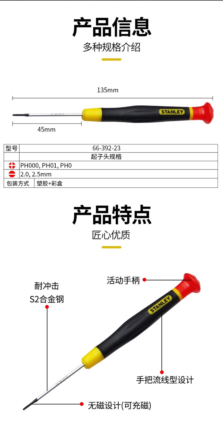 STANLEY Precision Screwdriver Set Cross Slotted Screwdriver Household Laptop Disassembly Tool 66-392-23