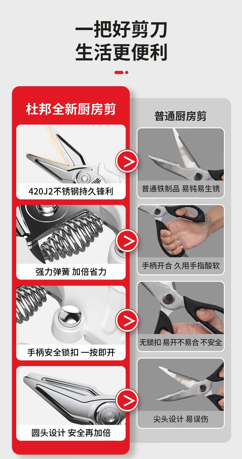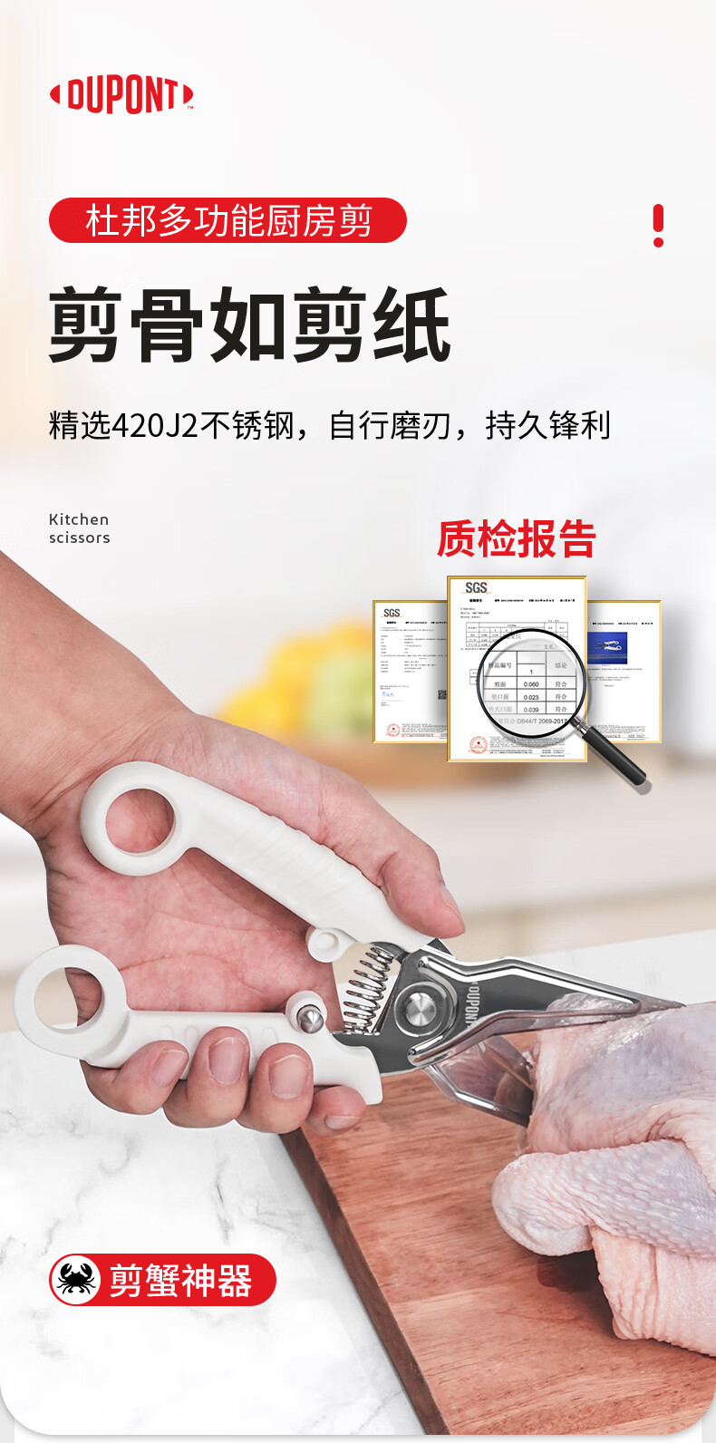 Dupont (DU PONT) stainless steel kitchen scissors, barbecue scissors, chicken bone scissors, multi-functional household vegetable fish bone food supplement scissors