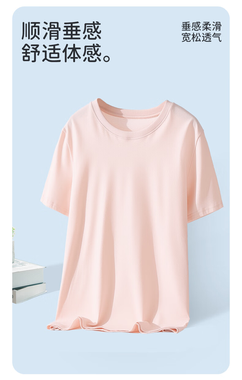 Yiershuang women's t-shirt summer thin pure cotton short-sleeved pajamas small fresh solid color versatile bottoming shirt cool and breathable top