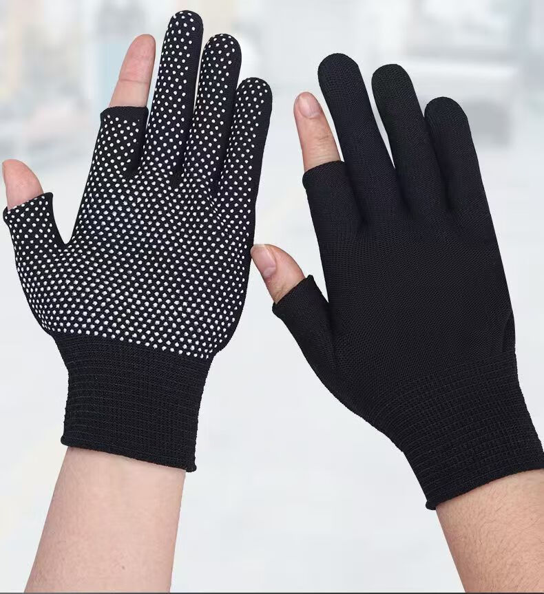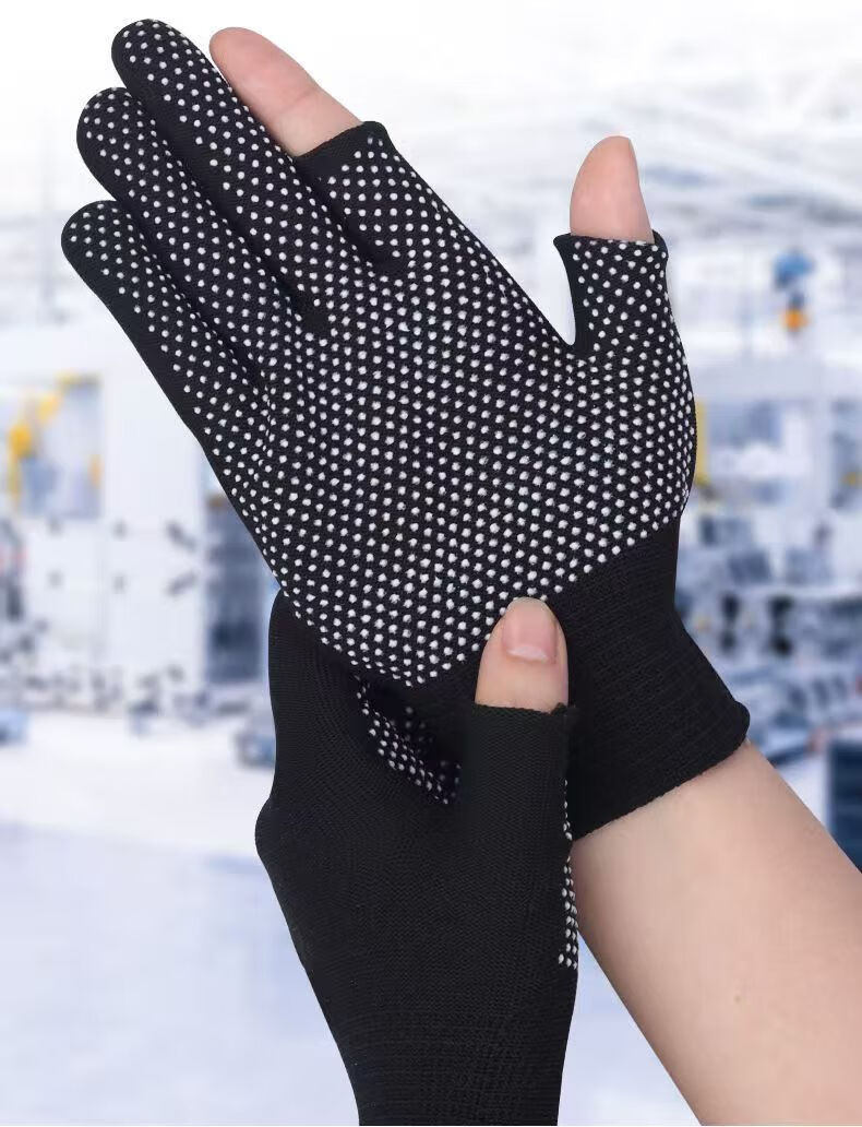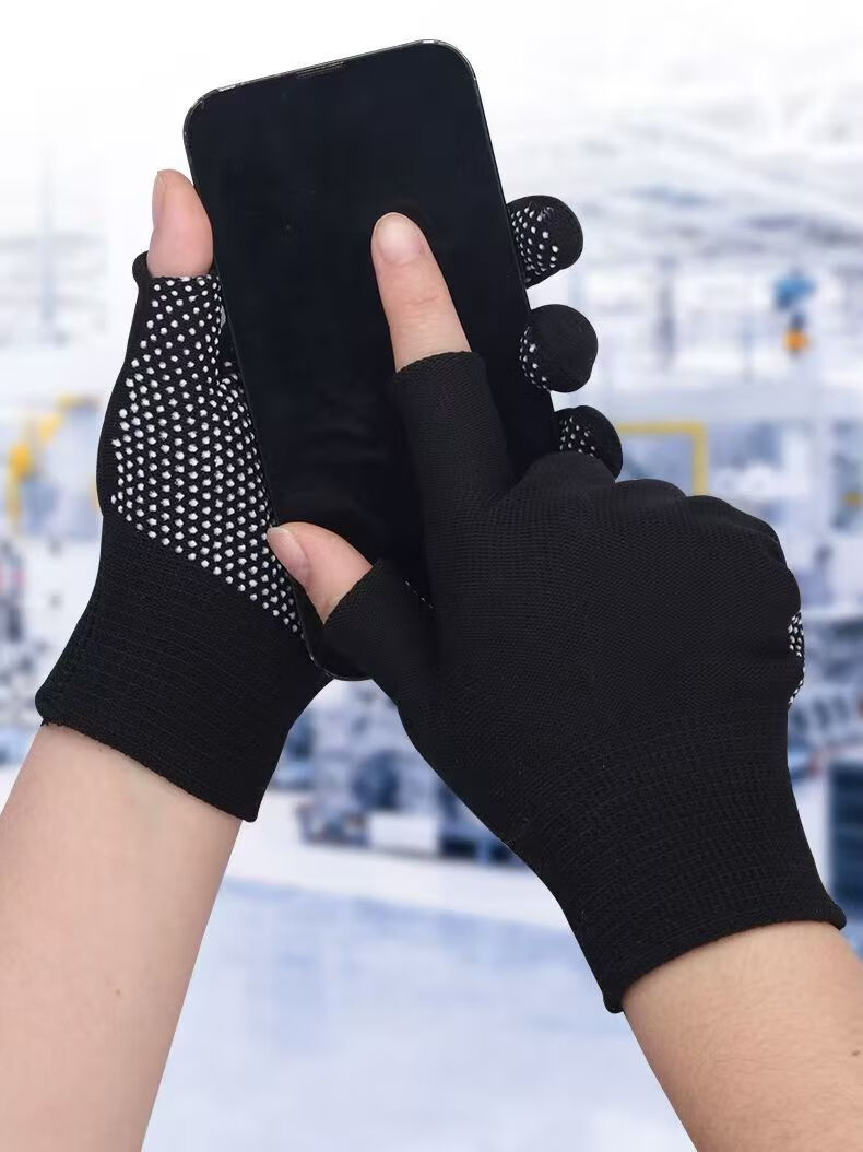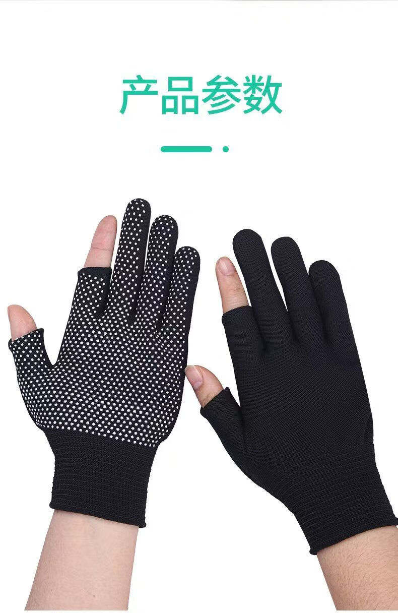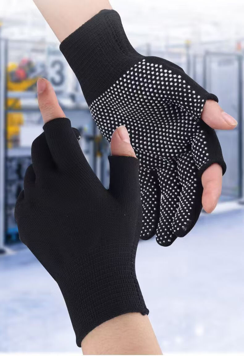 Minggu Glue Dot Exposed Two Finger Labor Protection Gloves 10 Pairs Nylon PVC Dot Beads Anti-Slip and Wear-Resistant One Size CW036246