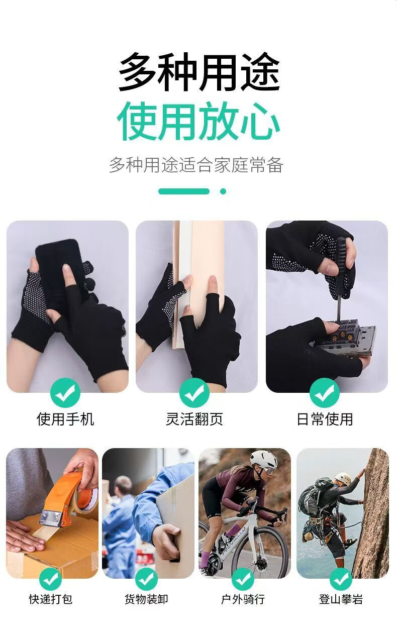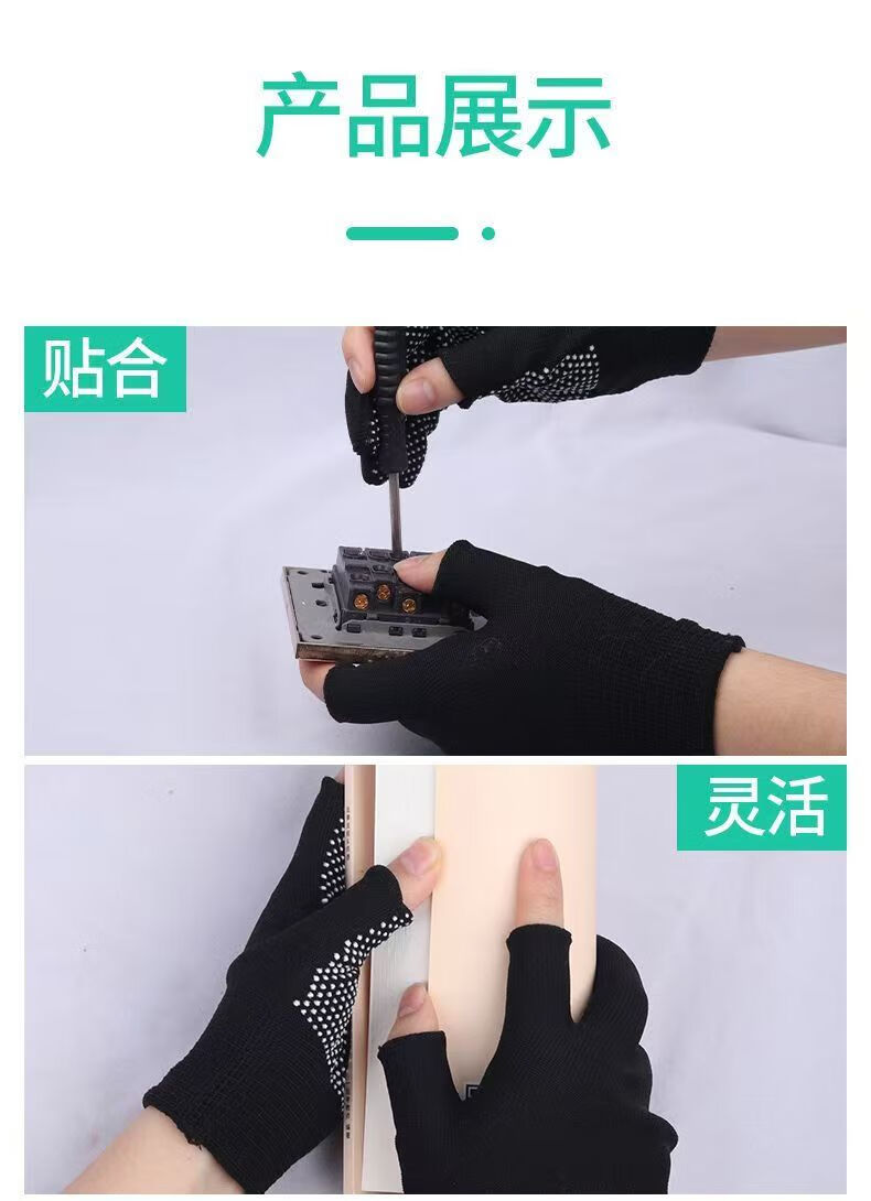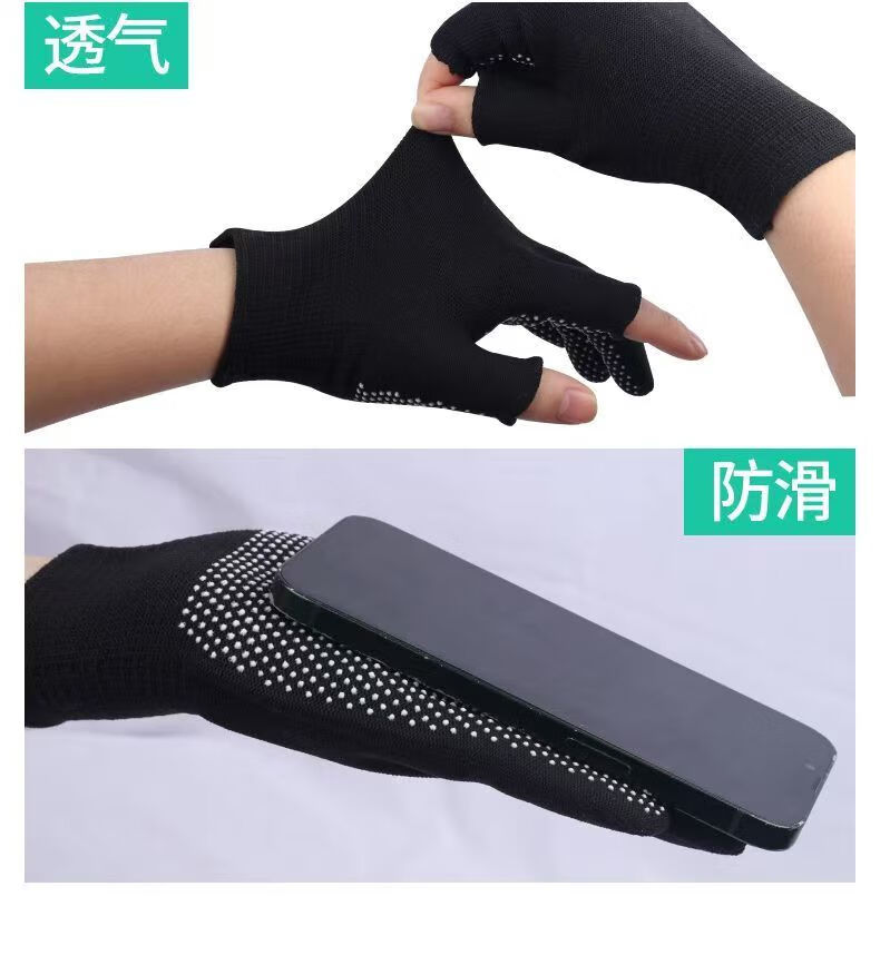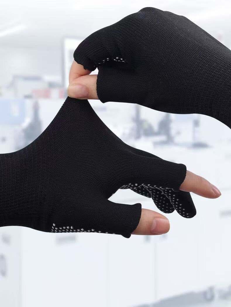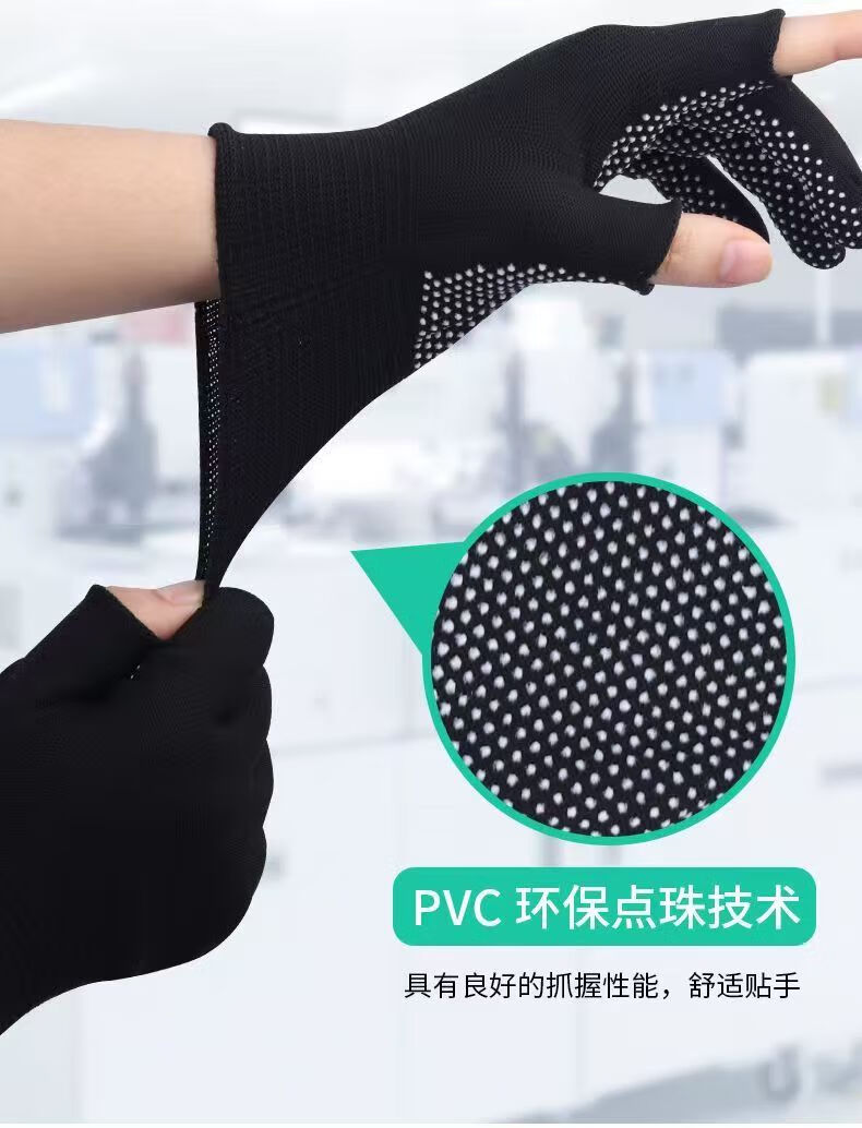 Minggu Glue Dot Exposed Two Finger Labor Protection Gloves 10 Pairs Nylon PVC Dot Beads Anti-Slip and Wear-Resistant One Size CW036246