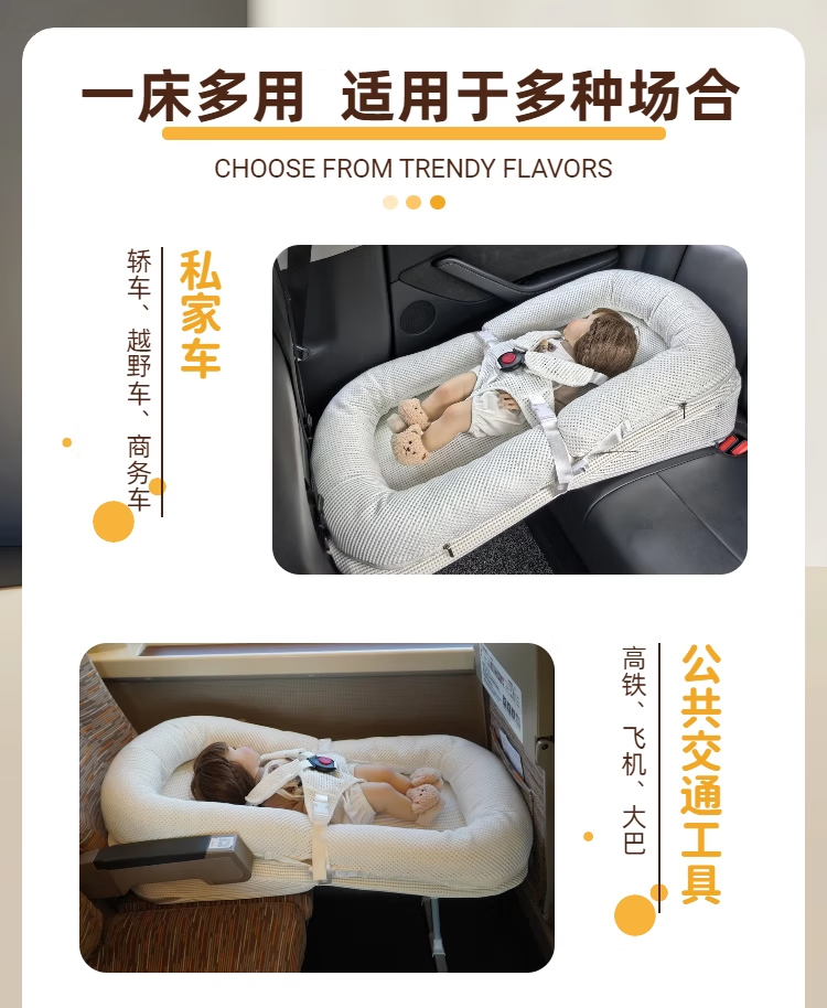 40,000 kilometers car bed dual-purpose baby bed five-point safety belt mesh fabric gray
