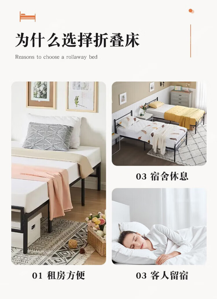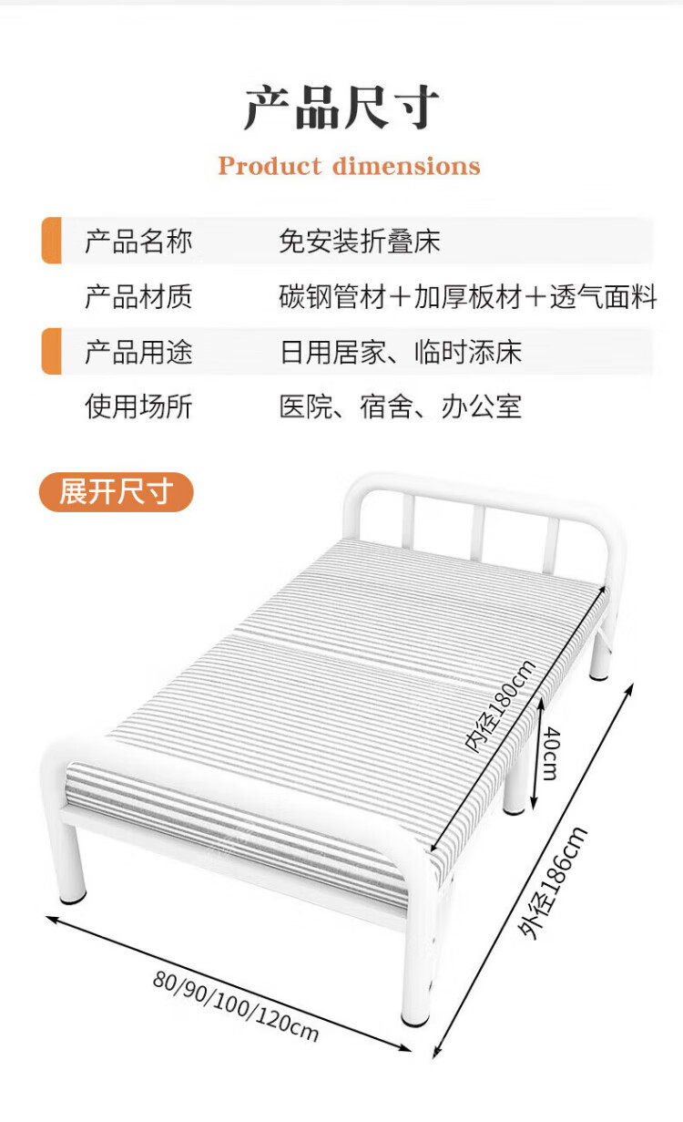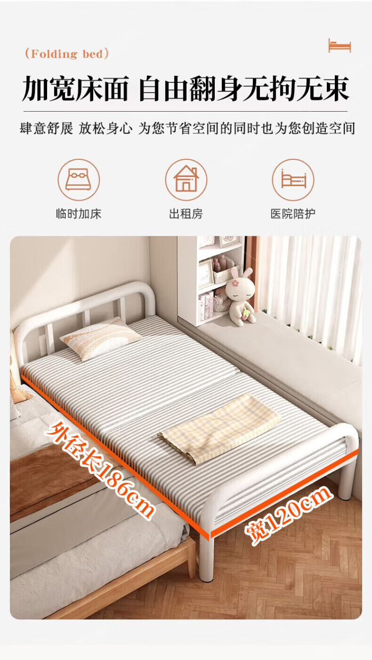 Quanpinwu Folding Single Bed Lunch Break Bed Simple Portable Rental Bed Hospital Home Accompanying Bed Camp Bed