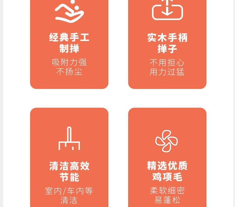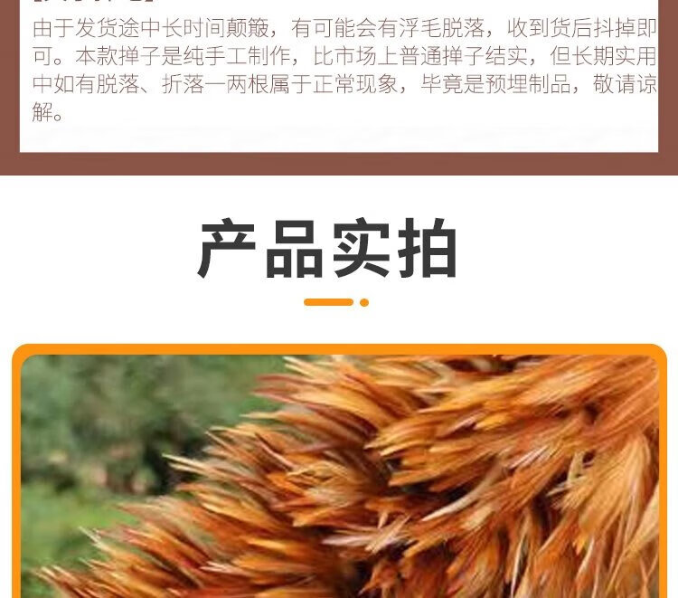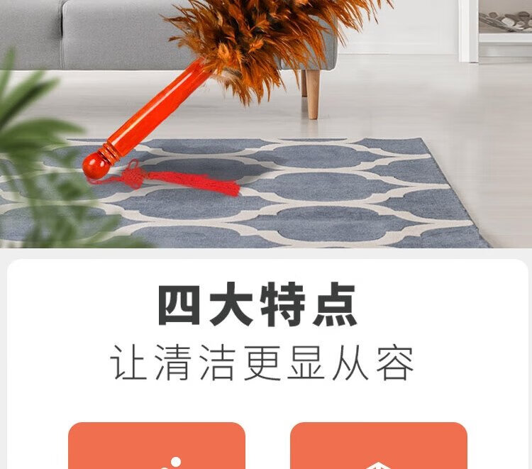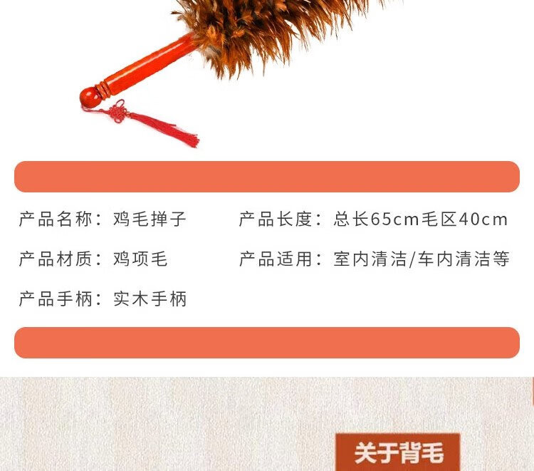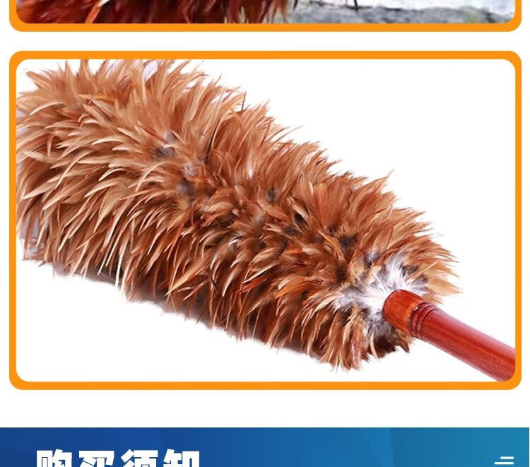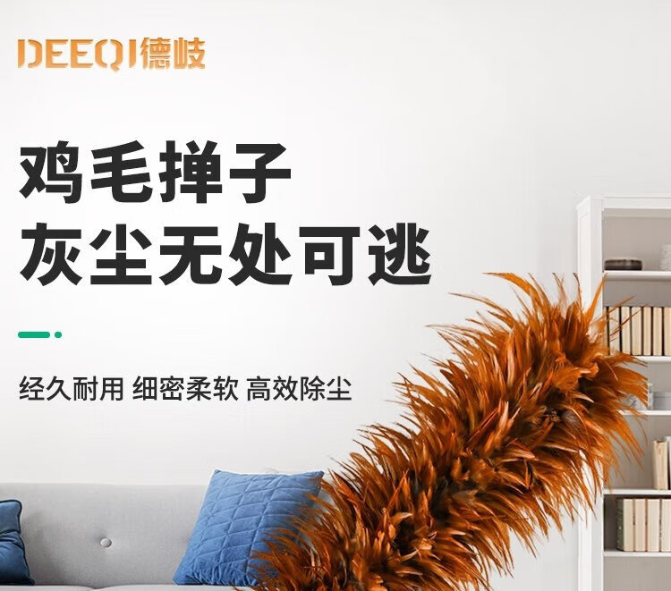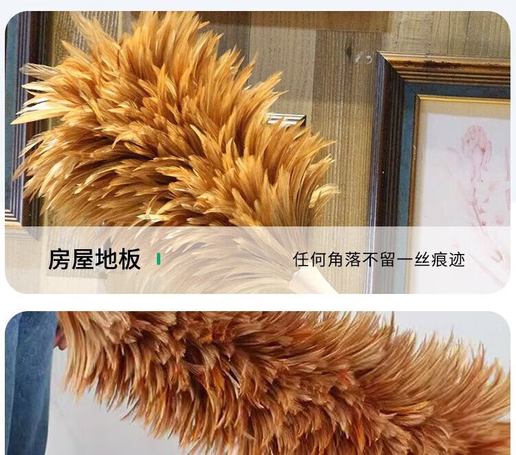 Deqi feather duster, dust removal, dust removal, non-shedding, solid wood handle cleaning duster, chicken neck feather duster 65cm