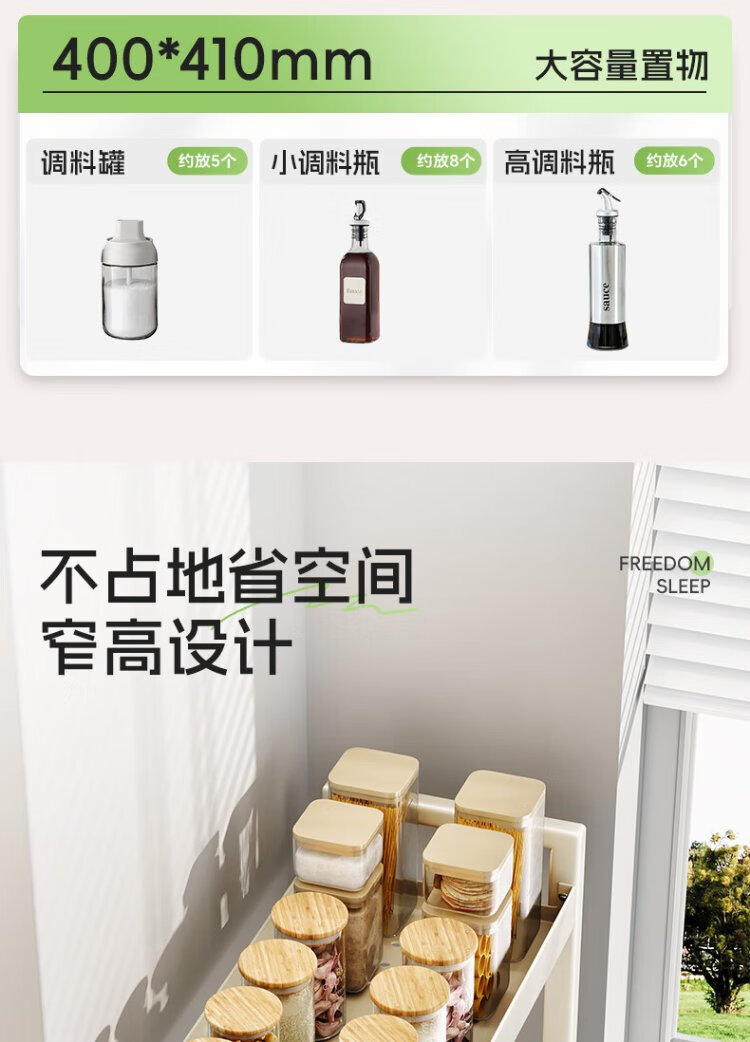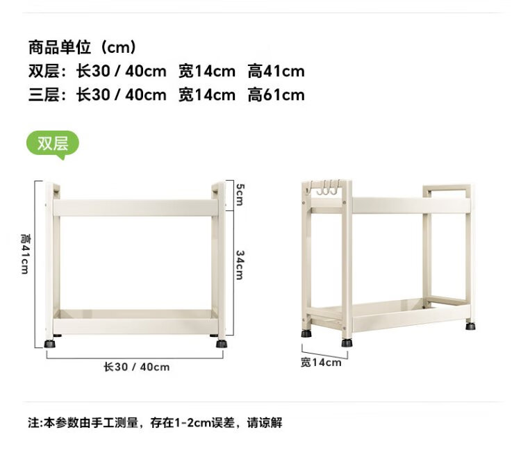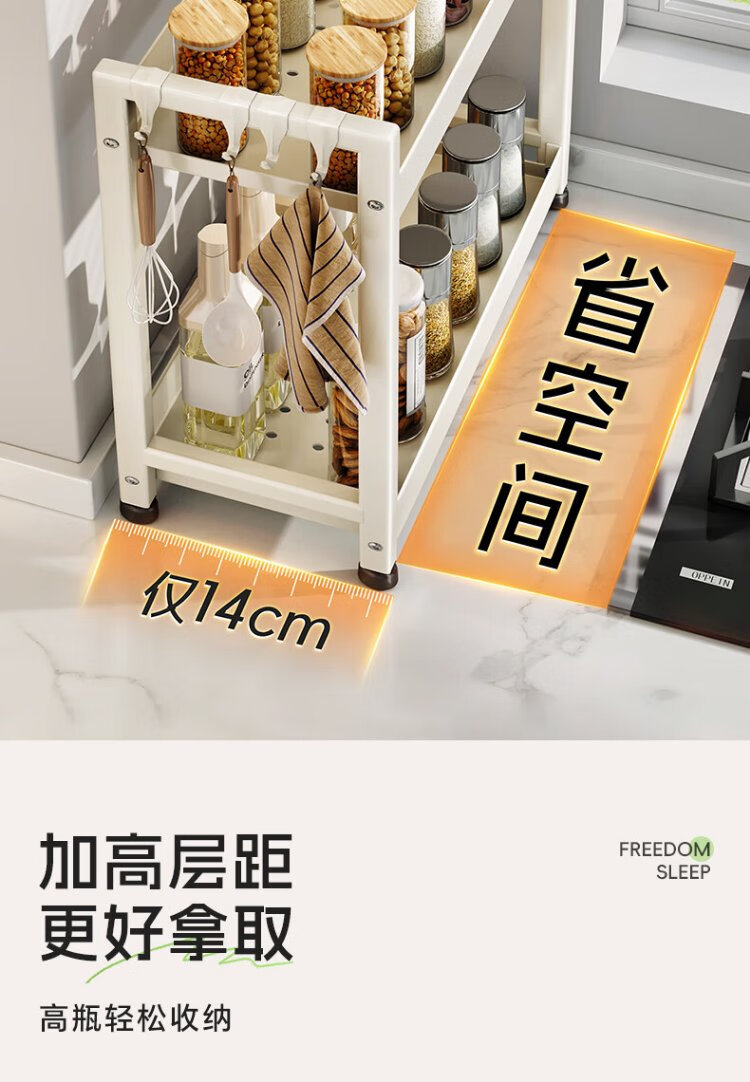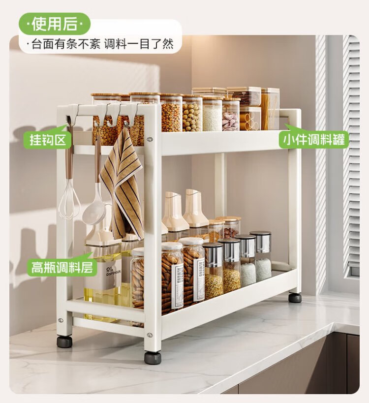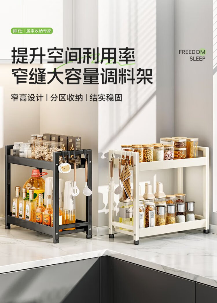Shuaishi kitchen seasoning storage rack seasoning bottle storage rack narrow small countertop to store seasonings and condiments double layer 40cm