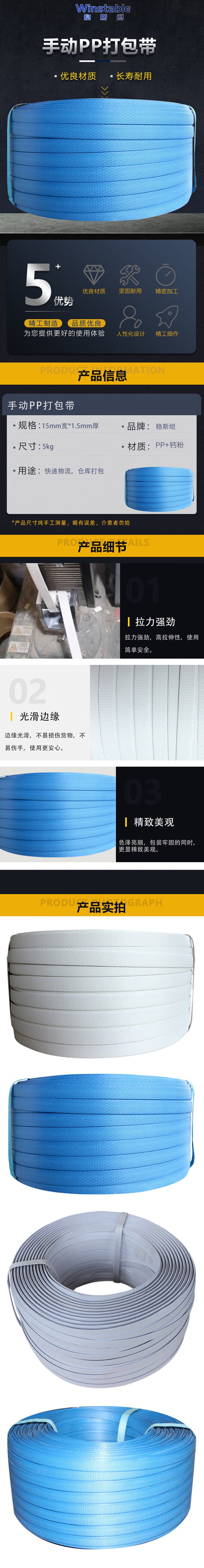 Wenstan WST877 Manual PP Packing Belt Hand Packing Belt Thickened Plastic Manual Packing Belt Width 15mm White 5KG
