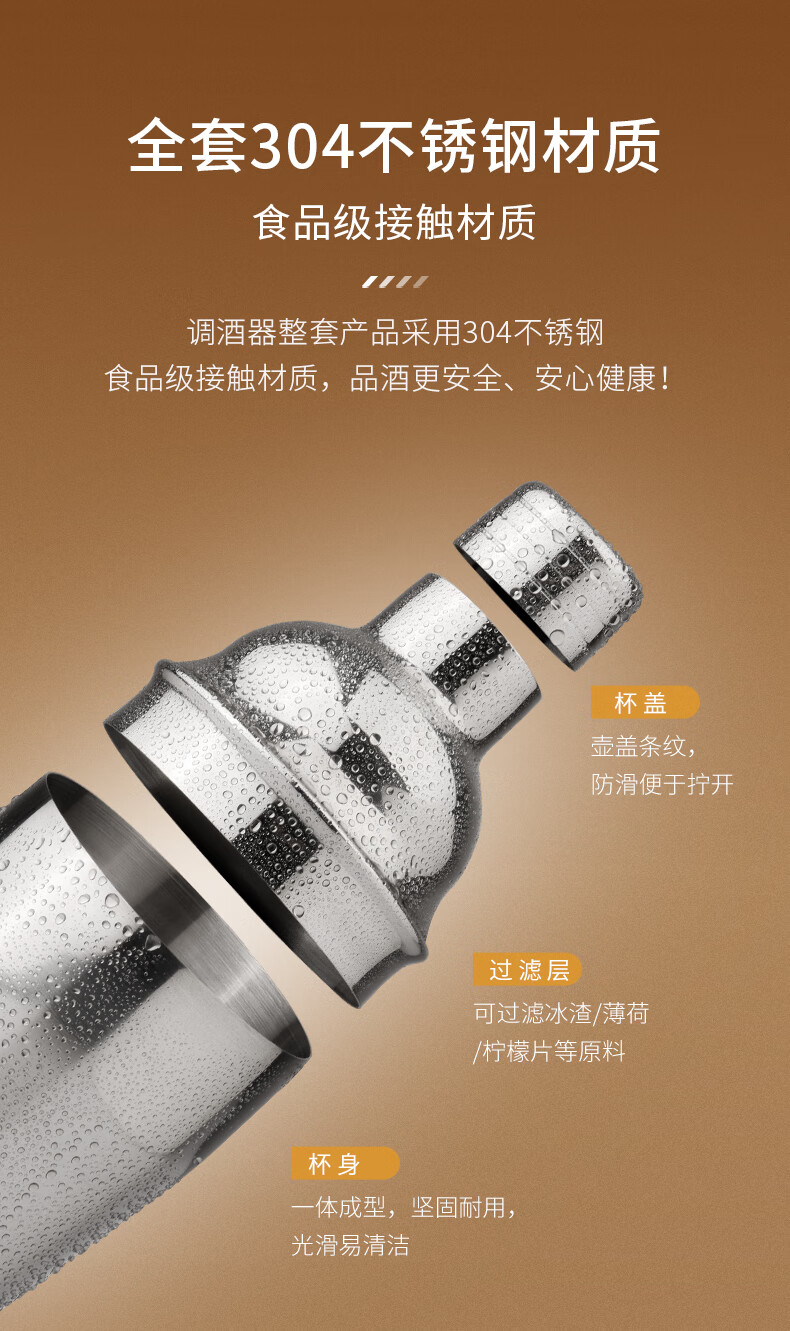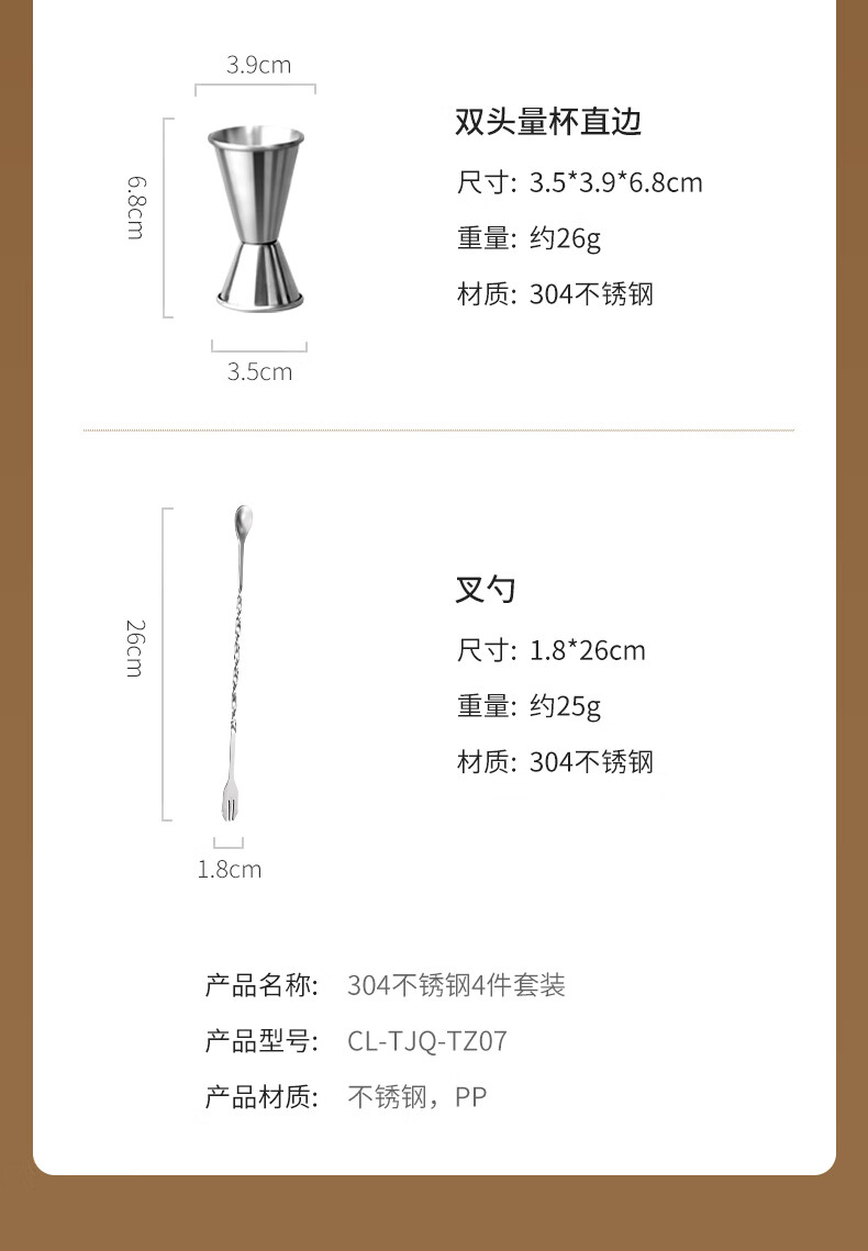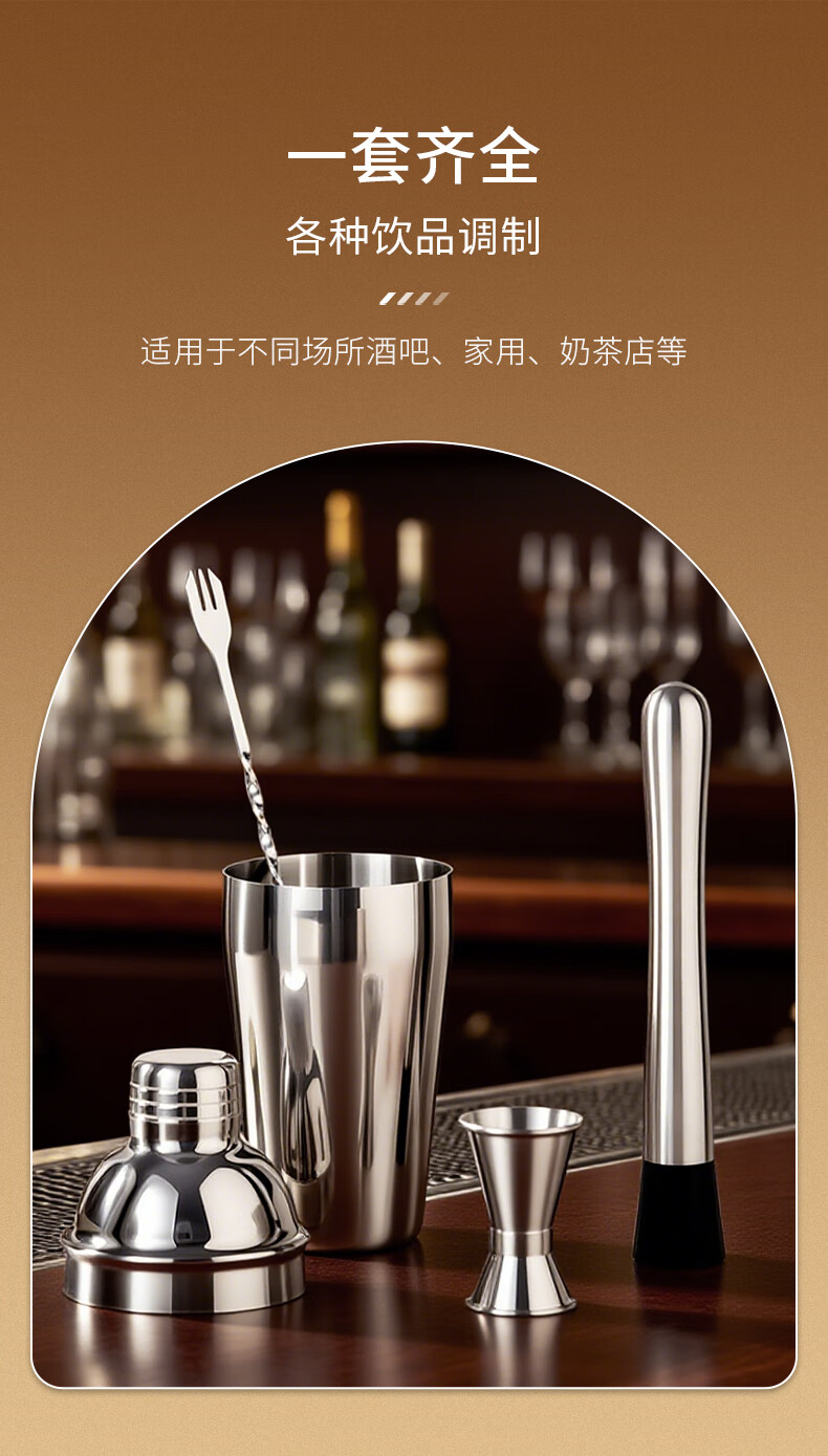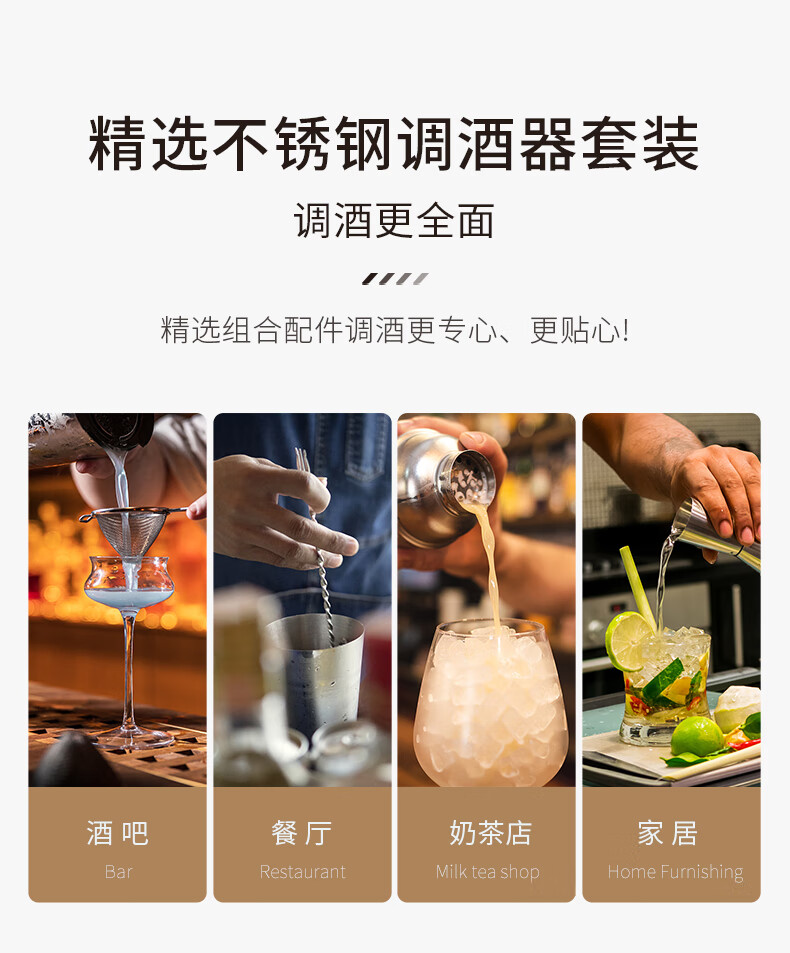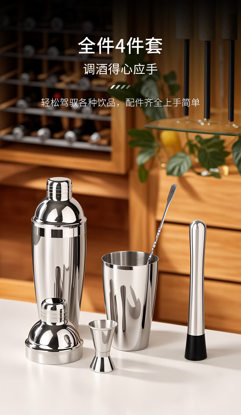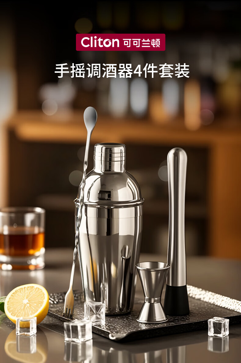 CLITON304 stainless steel cocktail mixer, milk tea shop hand-made lemon artifact cocktail hand-shake shaker cup and pot 4-piece set