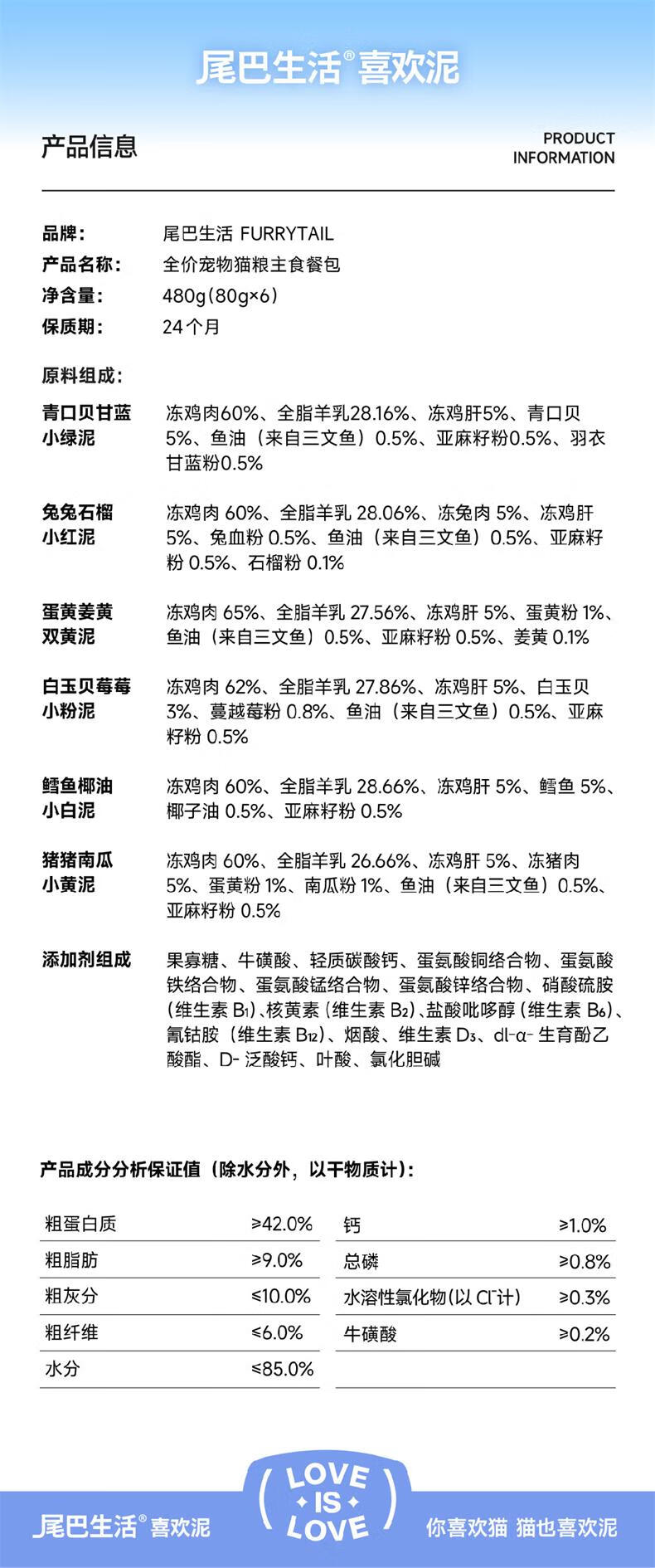 Tail life suction sauce full price staple food meal pack 80g*6 bags adult cats and kittens mixed flavor canned meat puree cat wet food