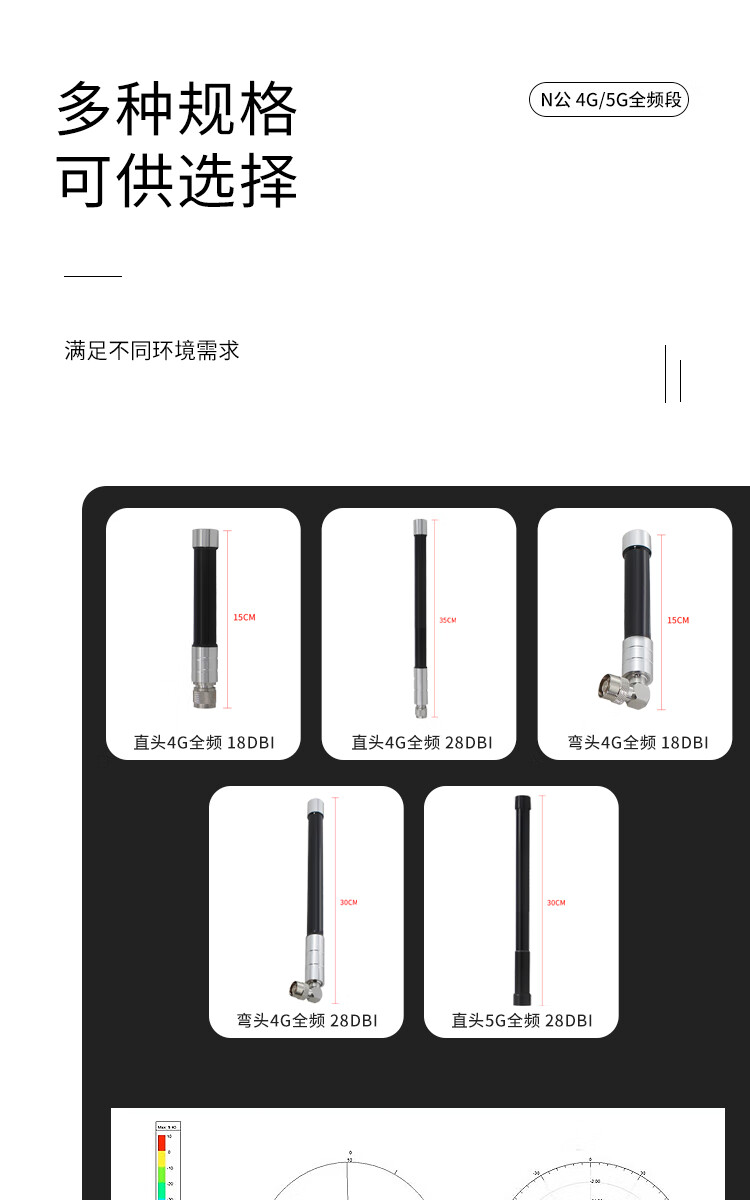Jiudingxin 5G full-frequency fiberglass antenna outdoor waterproof omnidirectional high gain 28DBI N male suction cup base antenna 30cm JDX-5G-1