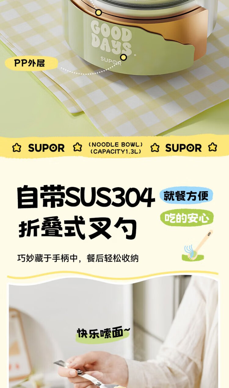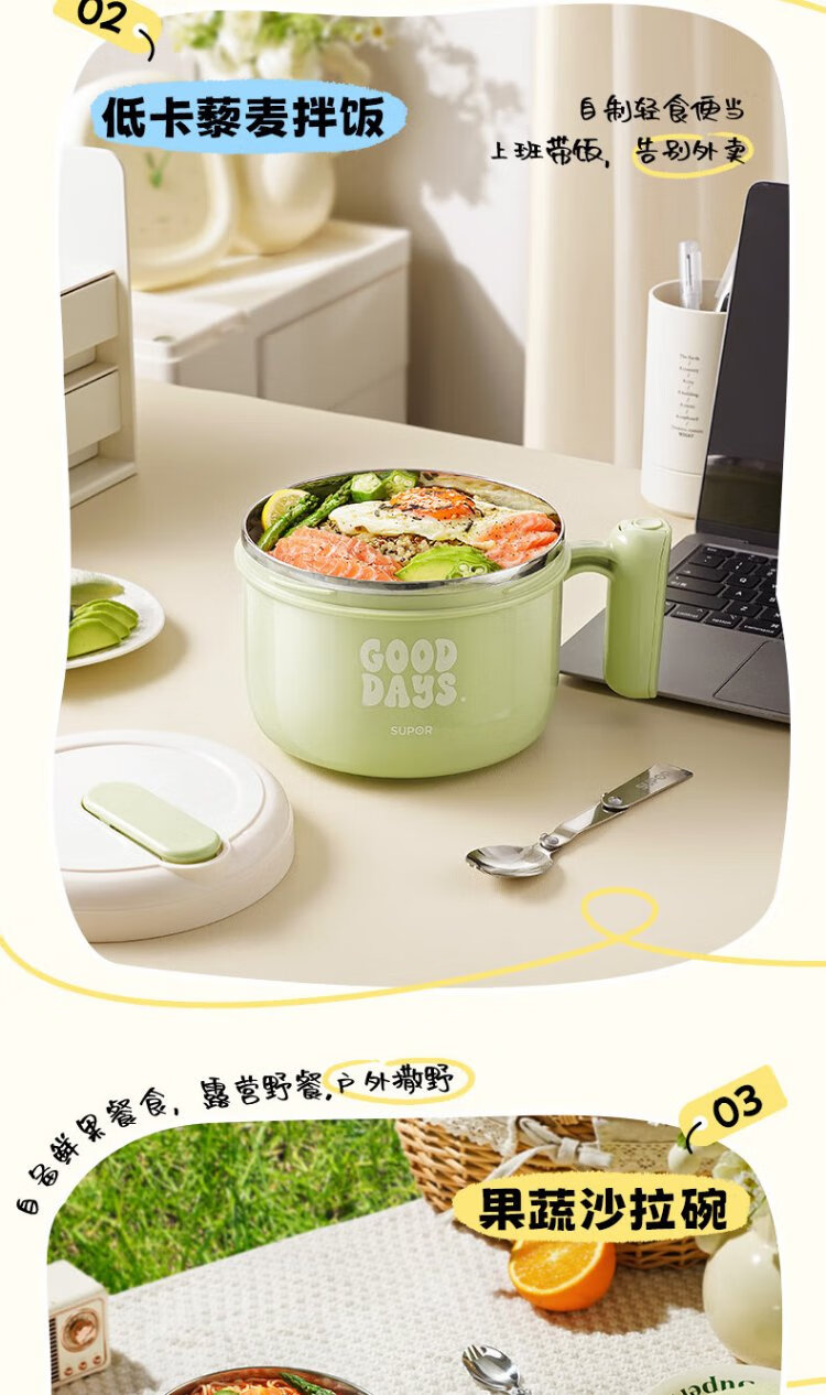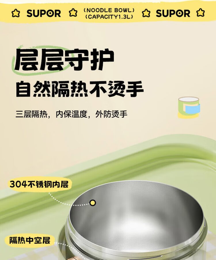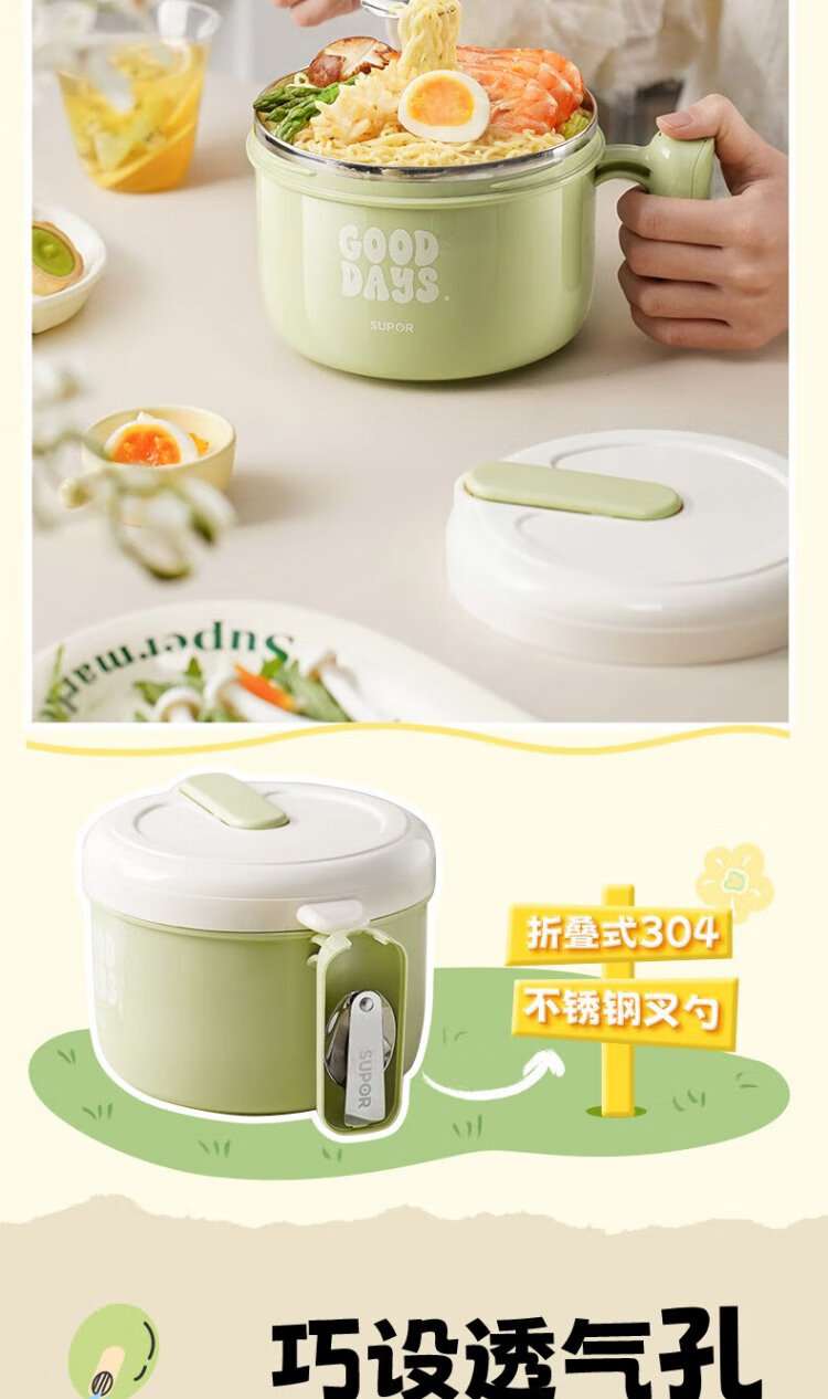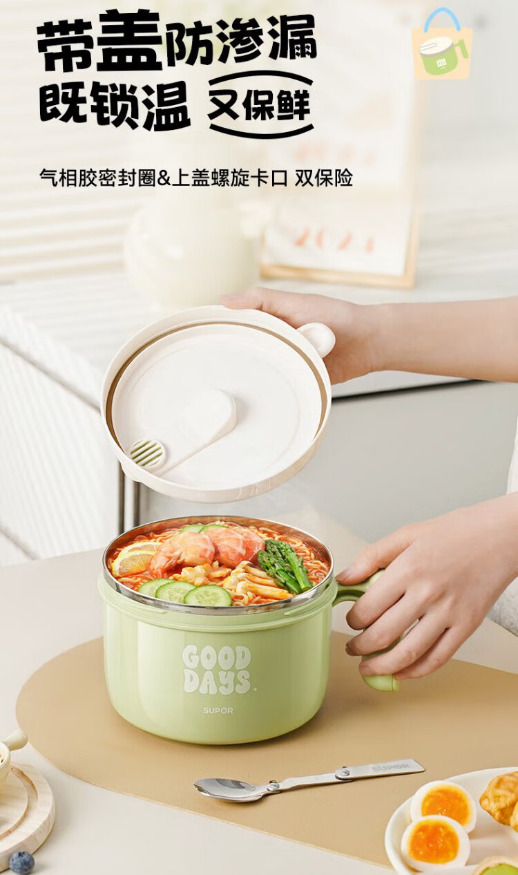 Supor student lunch box, children's lunch box, 304 stainless steel instant noodle bowl, office worker lunch box with lid, large capacity