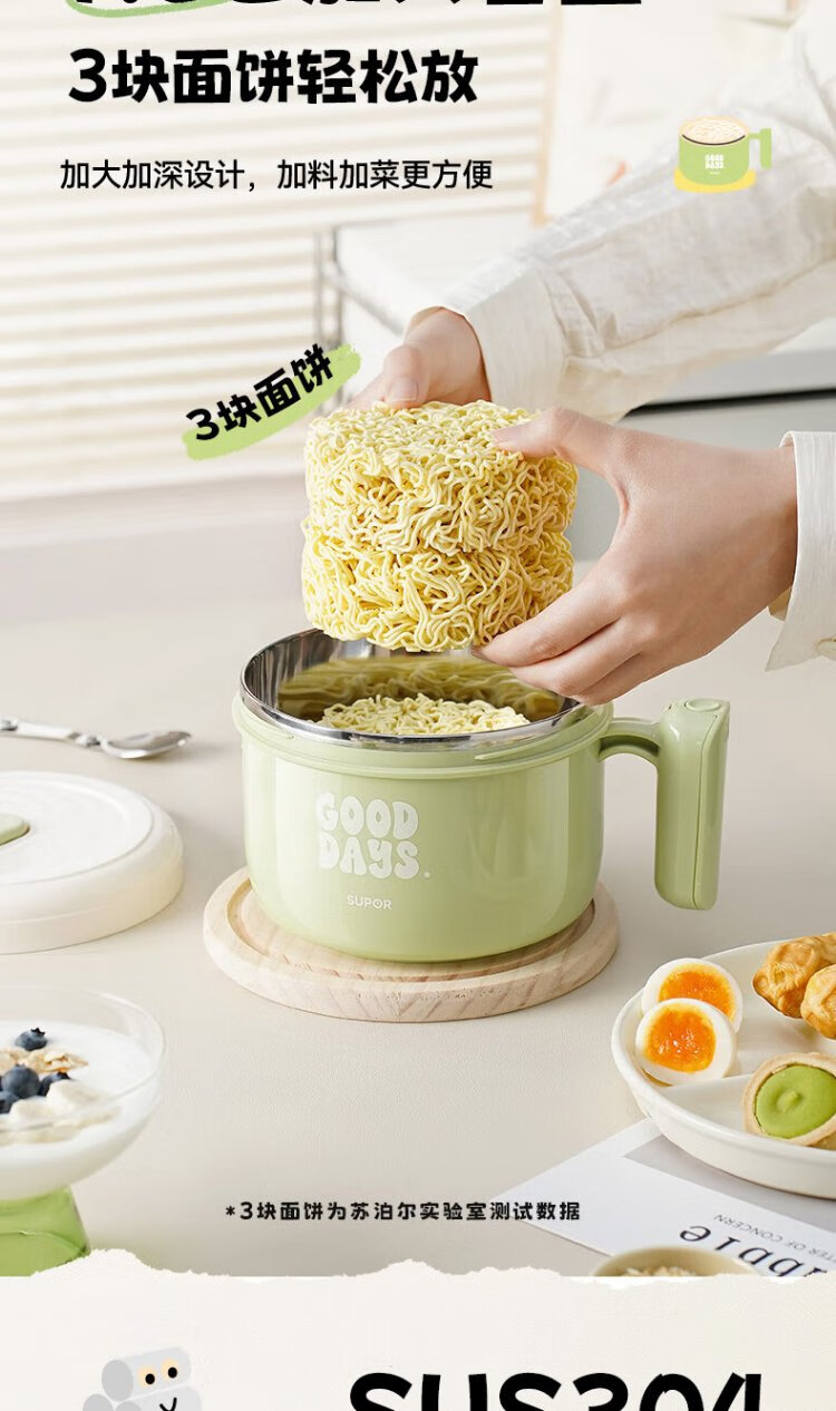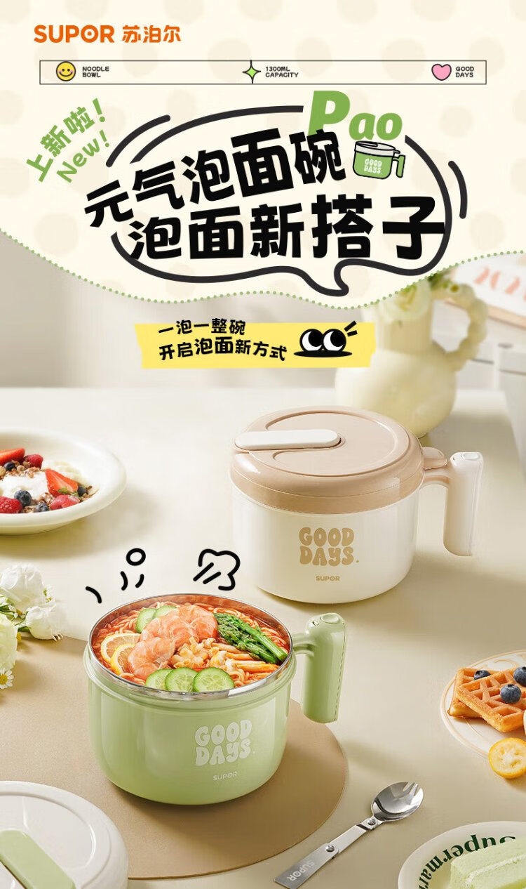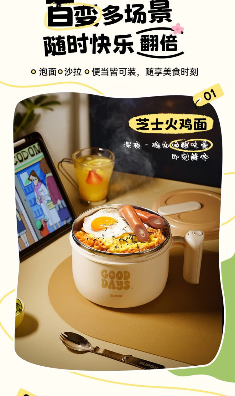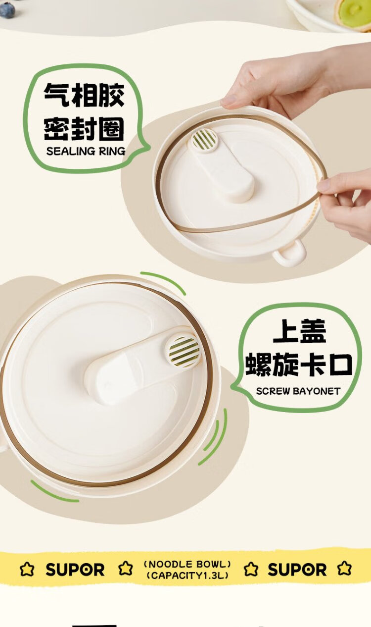 Supor student lunch box, children's lunch box, 304 stainless steel instant noodle bowl, office worker lunch box with lid, large capacity