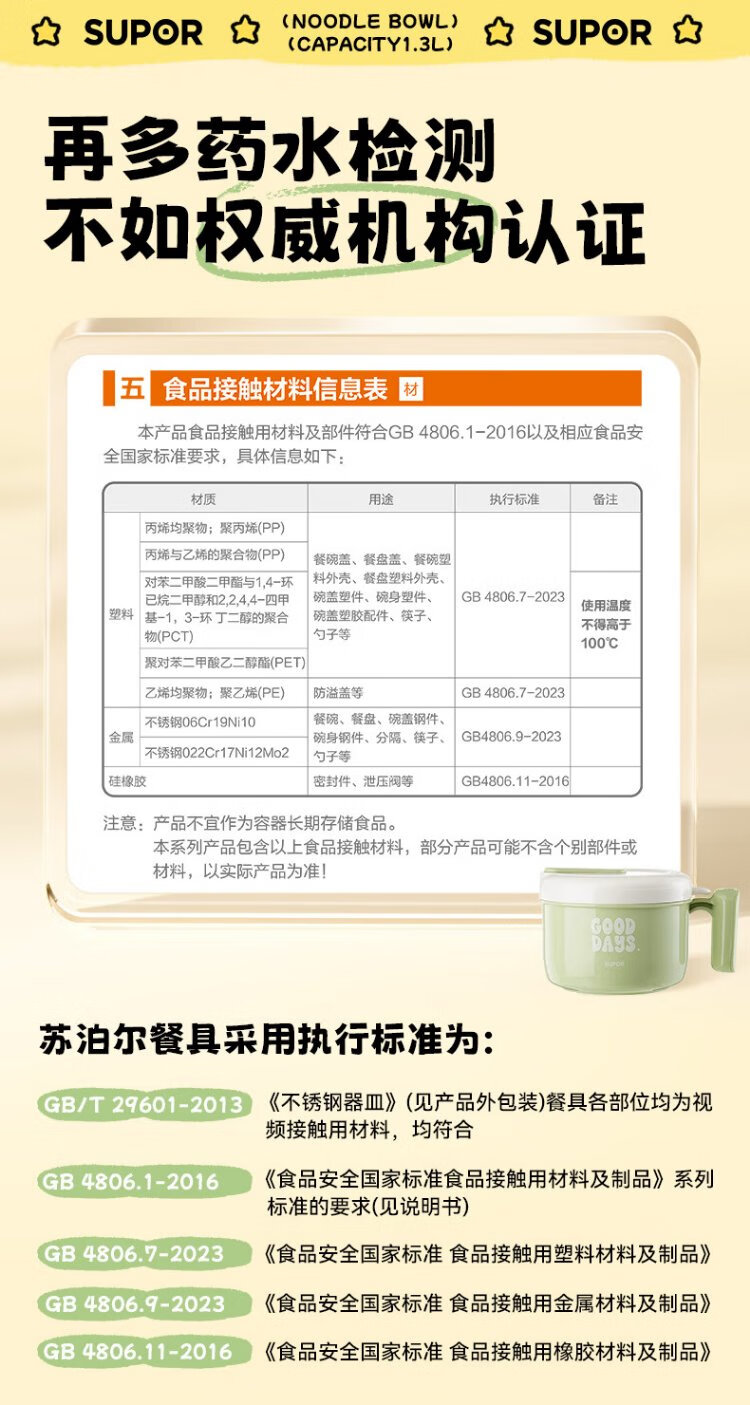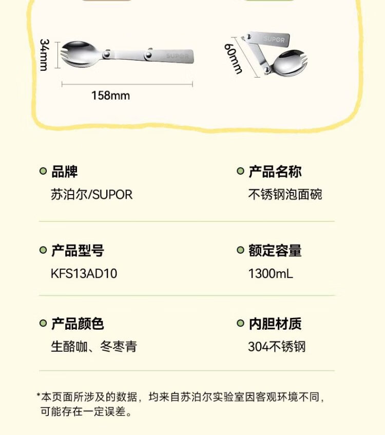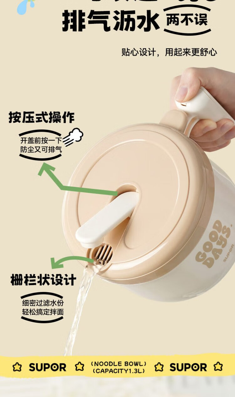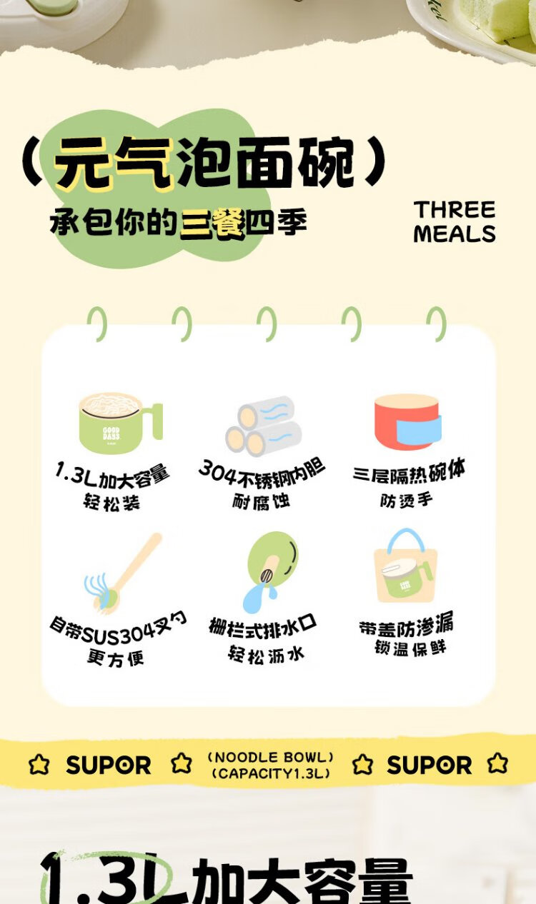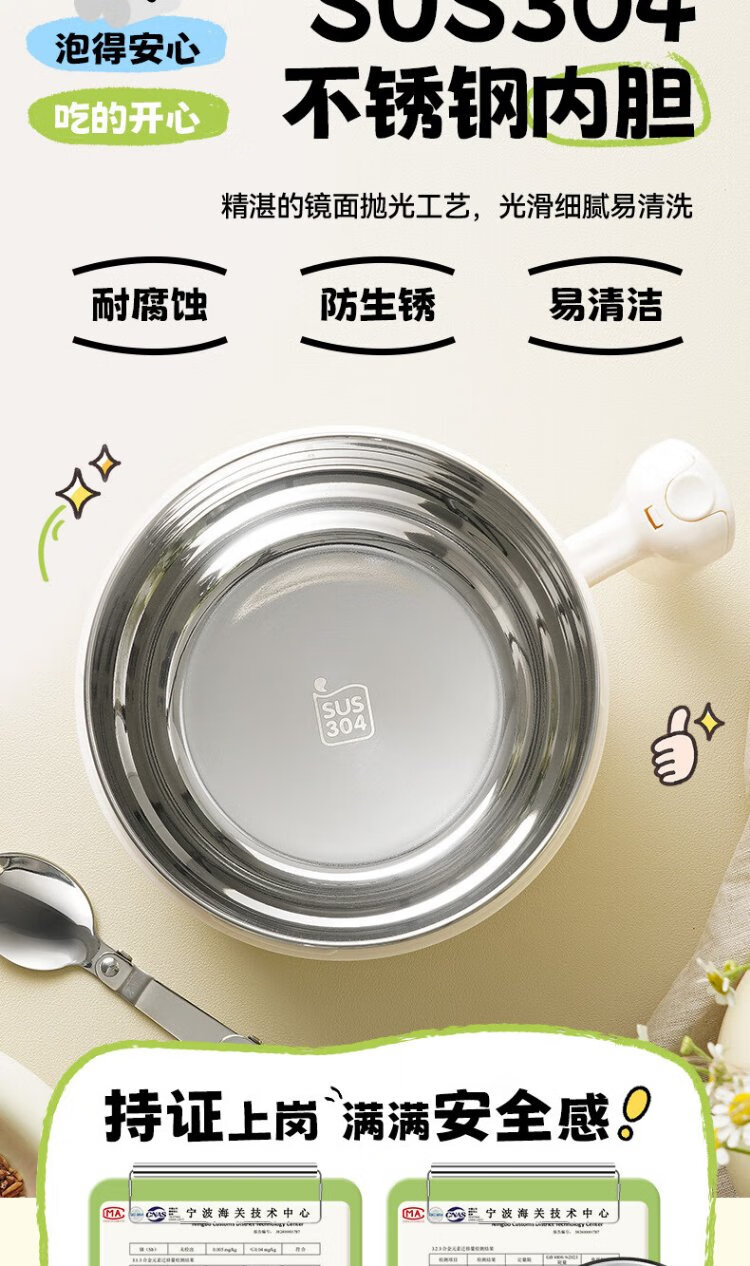 Supor student lunch box, children's lunch box, 304 stainless steel instant noodle bowl, office worker lunch box with lid, large capacity