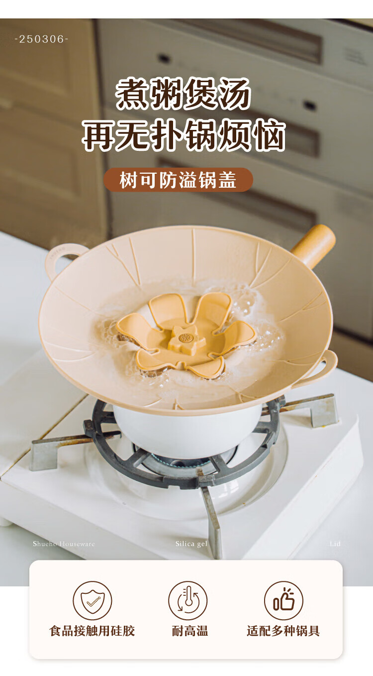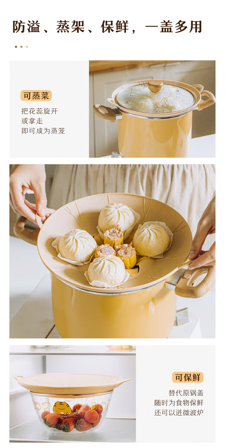 Shuke anti-overflow pot lid food-grade silicone high temperature resistant round heightened steamer wok fresh-keeping lid universal kitchen accessories