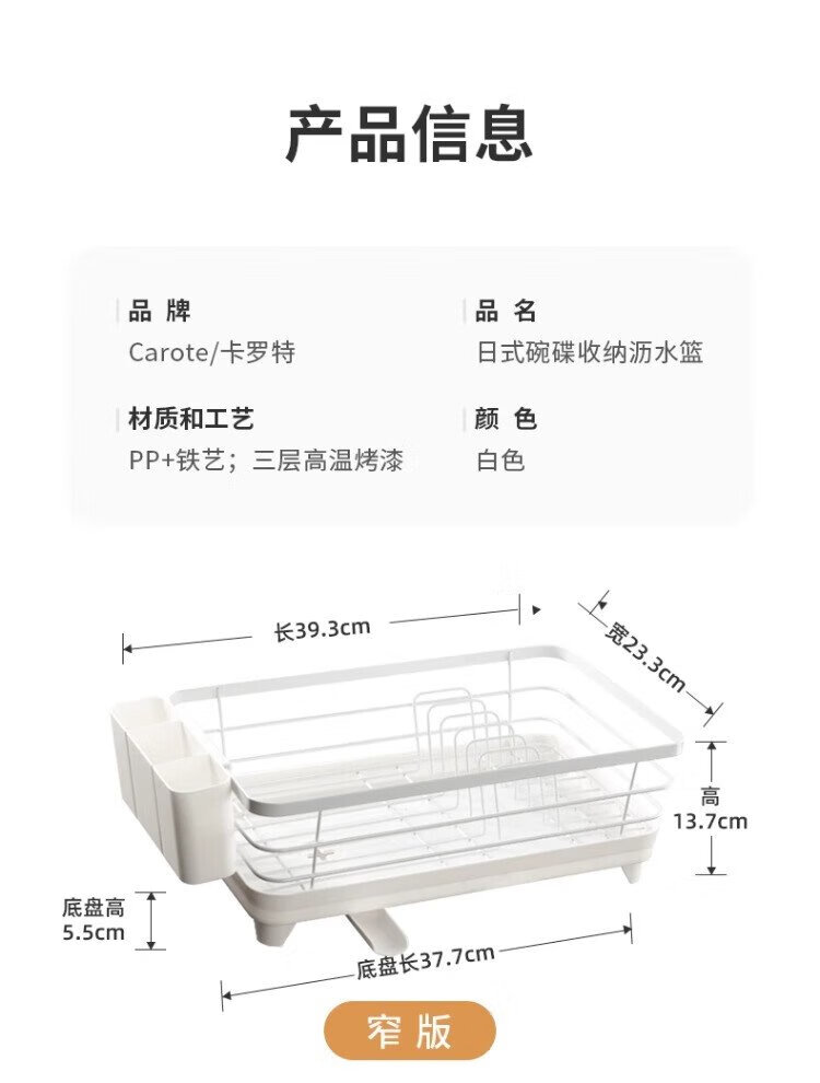 Carrot kitchen rack storage rack floor-standing dish storage rack household water filter dish rack drain rack wide version