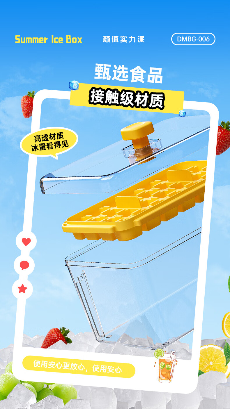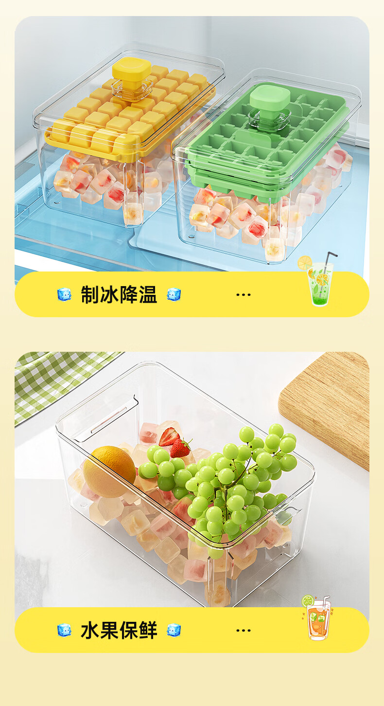 Beijing's frozen ice cube mold ice tray ice making artifact ice cube ice ball ice storage box refrigerator freezing grid push-type ice pellet container