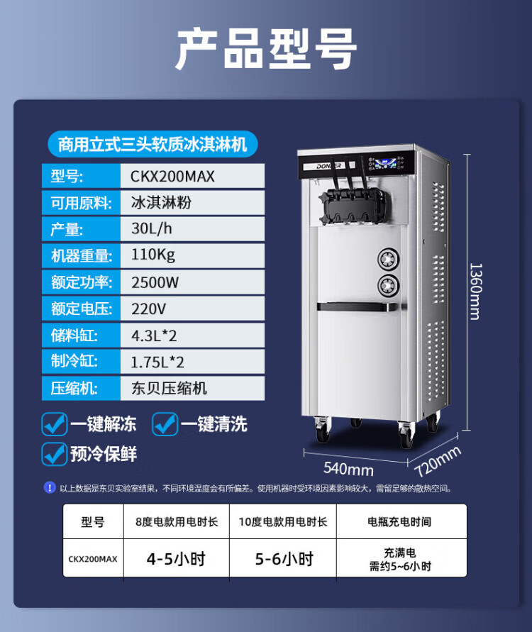 Donper commercial ice cream machine soft ice cream machine cone machine fully automatic milk tea shop equipment vertical ice cream machine CKX200MAX mobile power supply 8 degrees