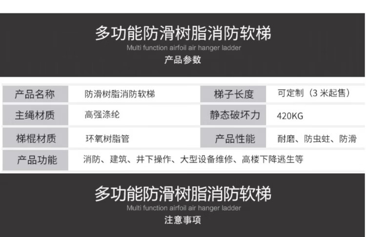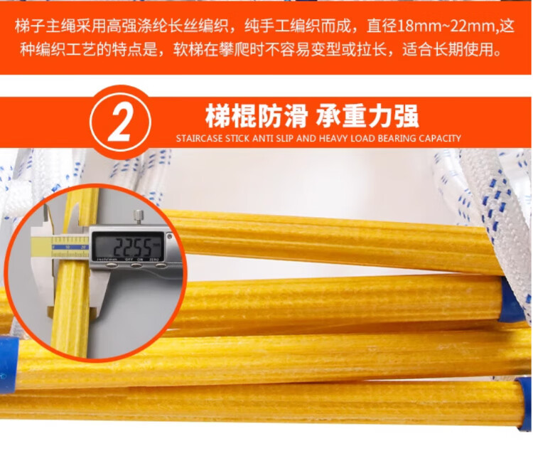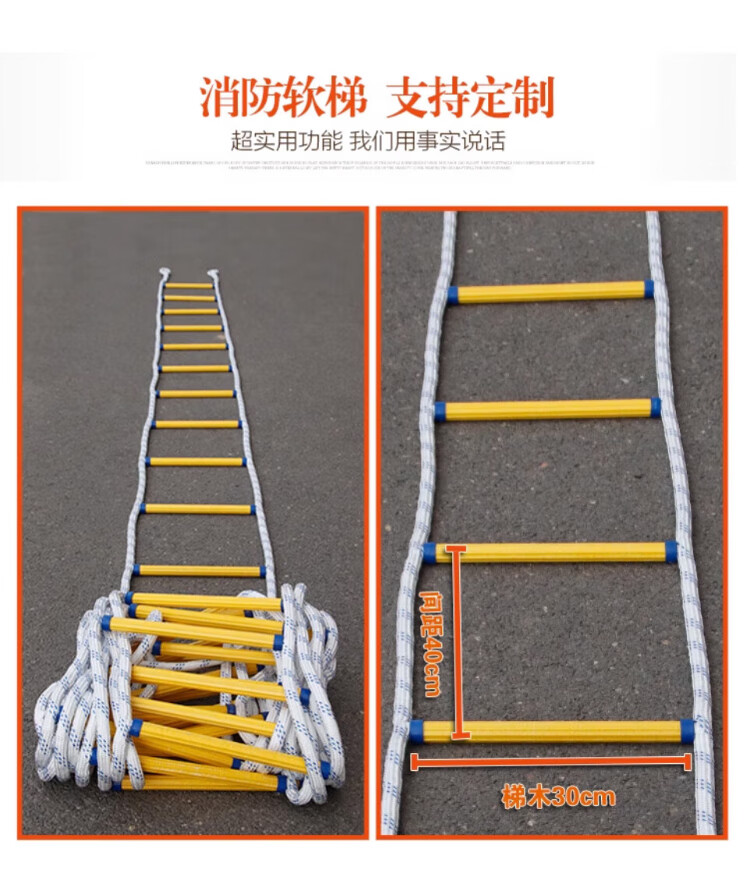 People's Safety Rope Ladder Escape Ladder Fire Escape Ladder Emergency Fire Rescue Training Home Self-Rescue Telescopic Folding Rope Ladder Polyester Resin Fire Ladder 10 Meters + Double Hooks + Screws
