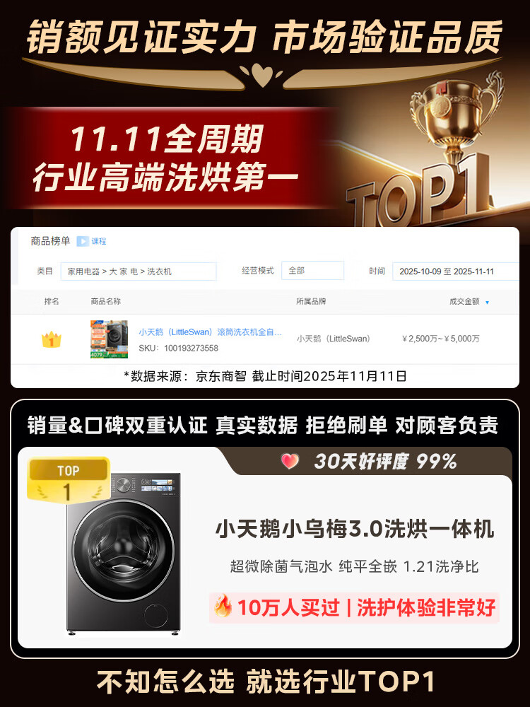 LittleSwan Xiaowumei 3.0 fully automatic drum washing machine with dryer and washing machine, 10KG ultra-thin large drum diameter TD10VE40, trade-in, national subsidy, underwear washing