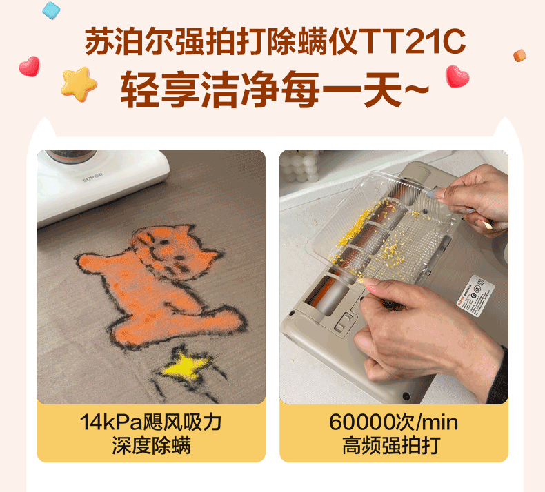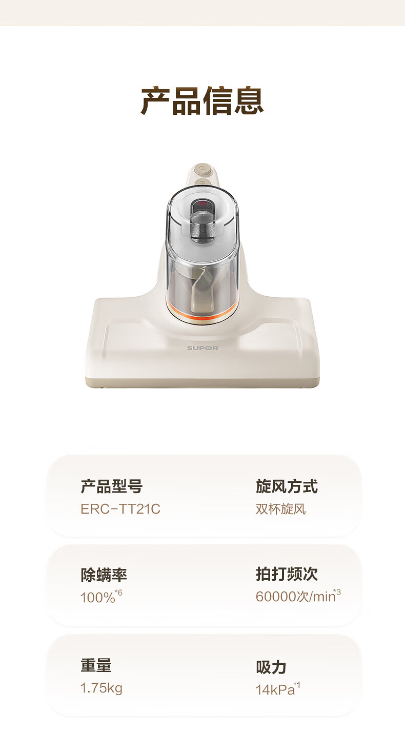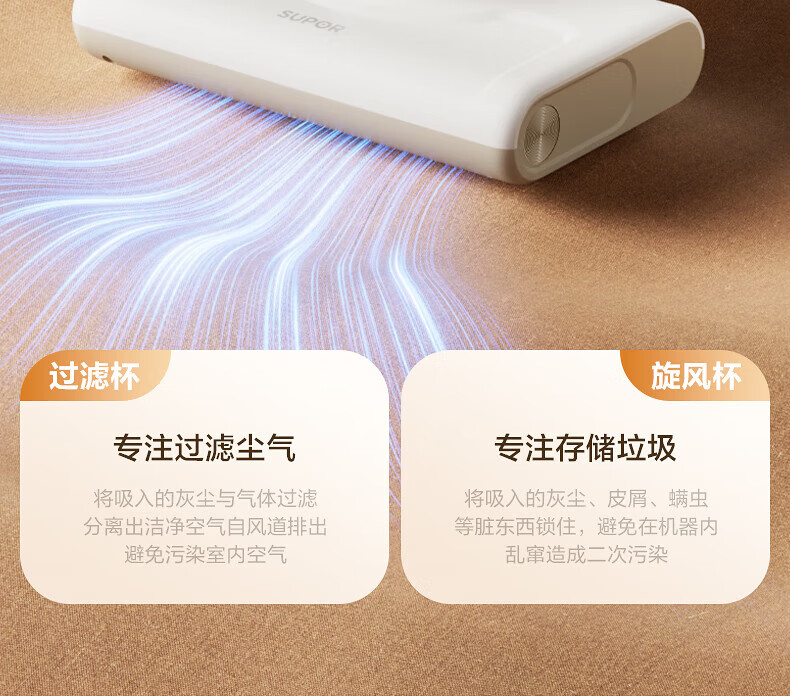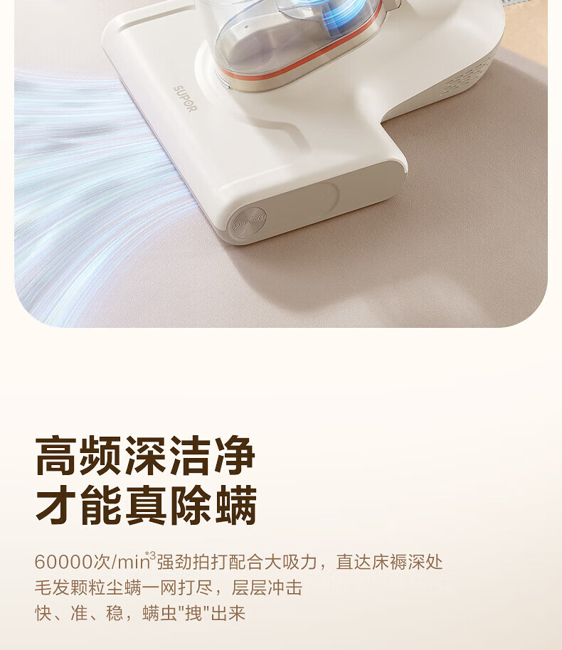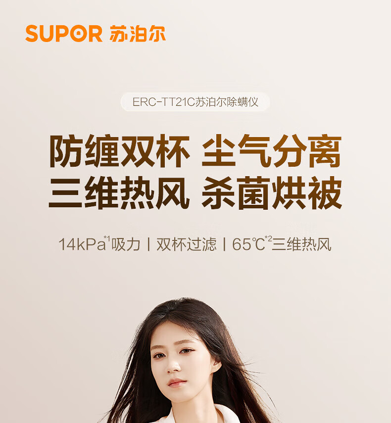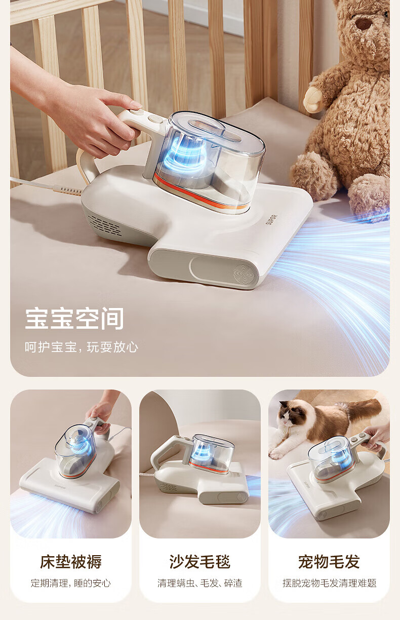 Supor Mite Remover Bed Treasure Upgraded Suction Double Cup Dust Mite Separation 65 Hot Air Drying Household Bed Mite Remover to Remove Mites Pet Mite Remover ERC-TT21C