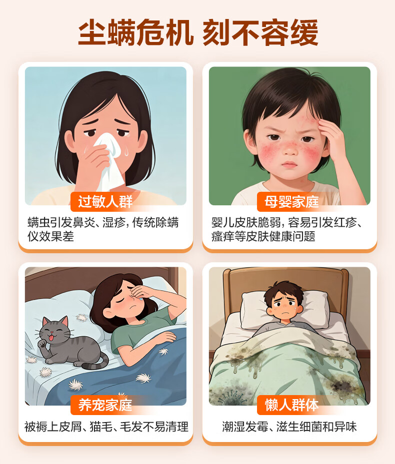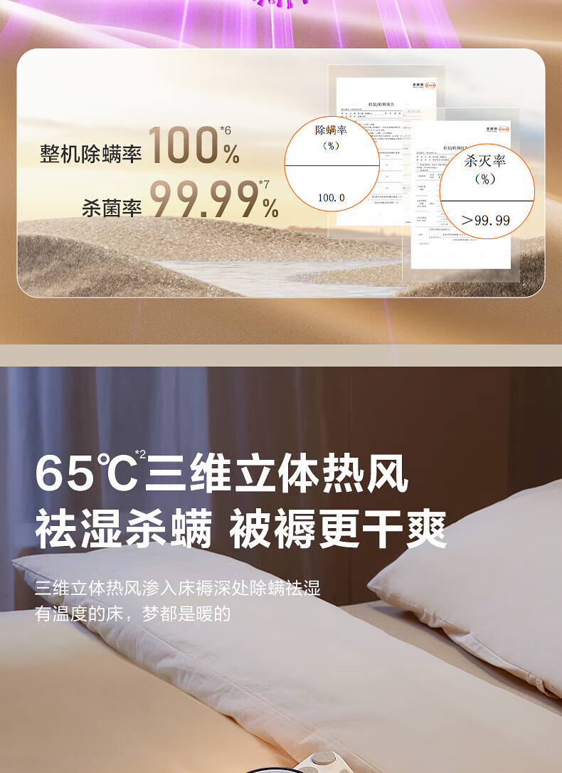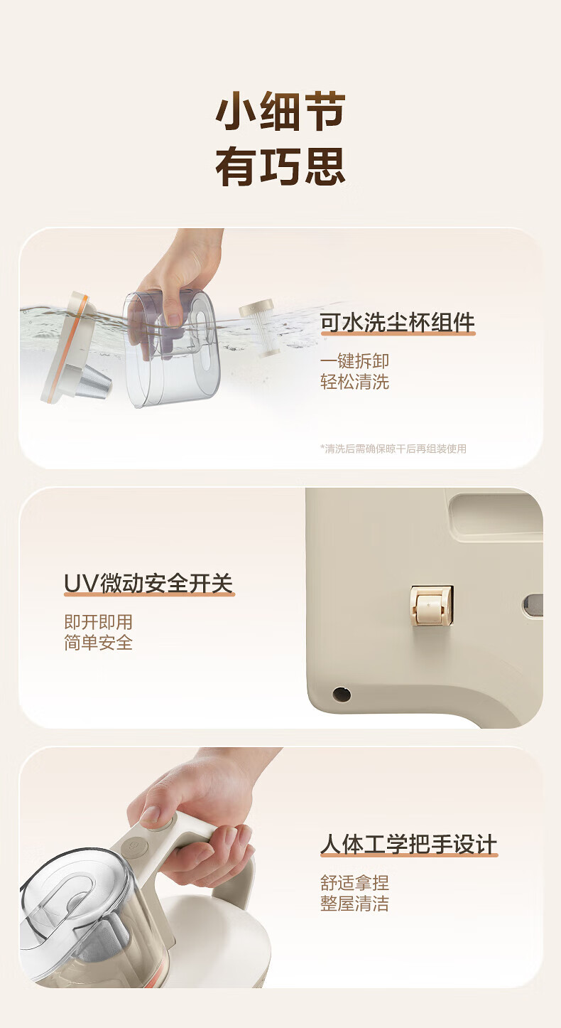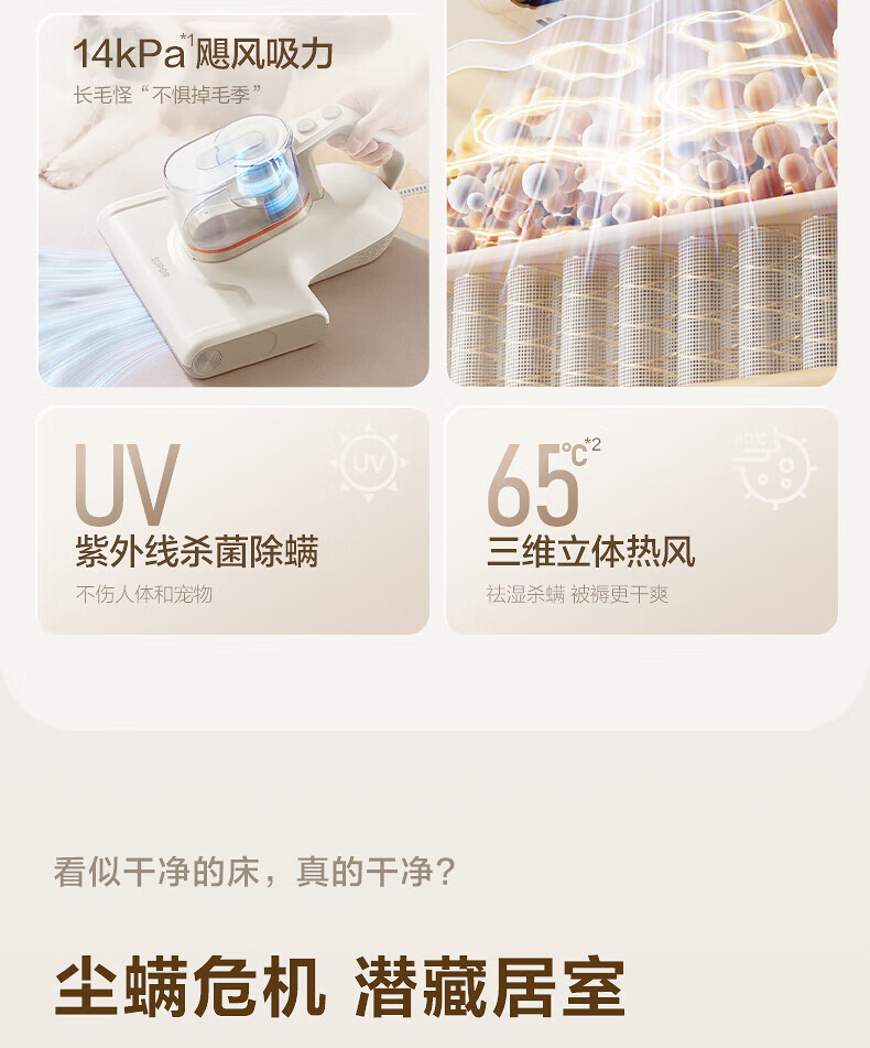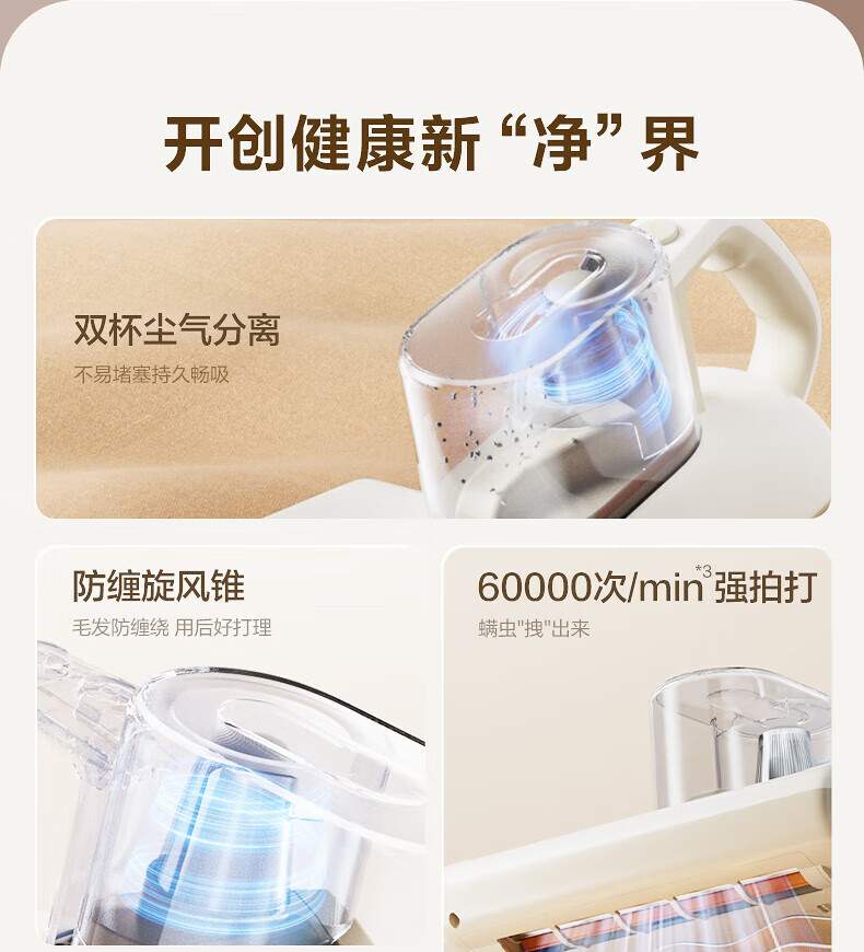 Supor Mite Remover Bed Treasure Upgraded Suction Double Cup Dust Mite Separation 65 Hot Air Drying Household Bed Mite Remover to Remove Mites Pet Mite Remover ERC-TT21C