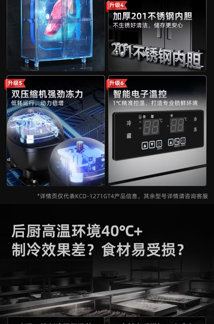 Star four-door refrigerator commercial large-capacity fully refrigerated vertical freezer fresh-keeping cabinet stainless steel multi-door kitchen freezer refrigerator KD-1271GT4