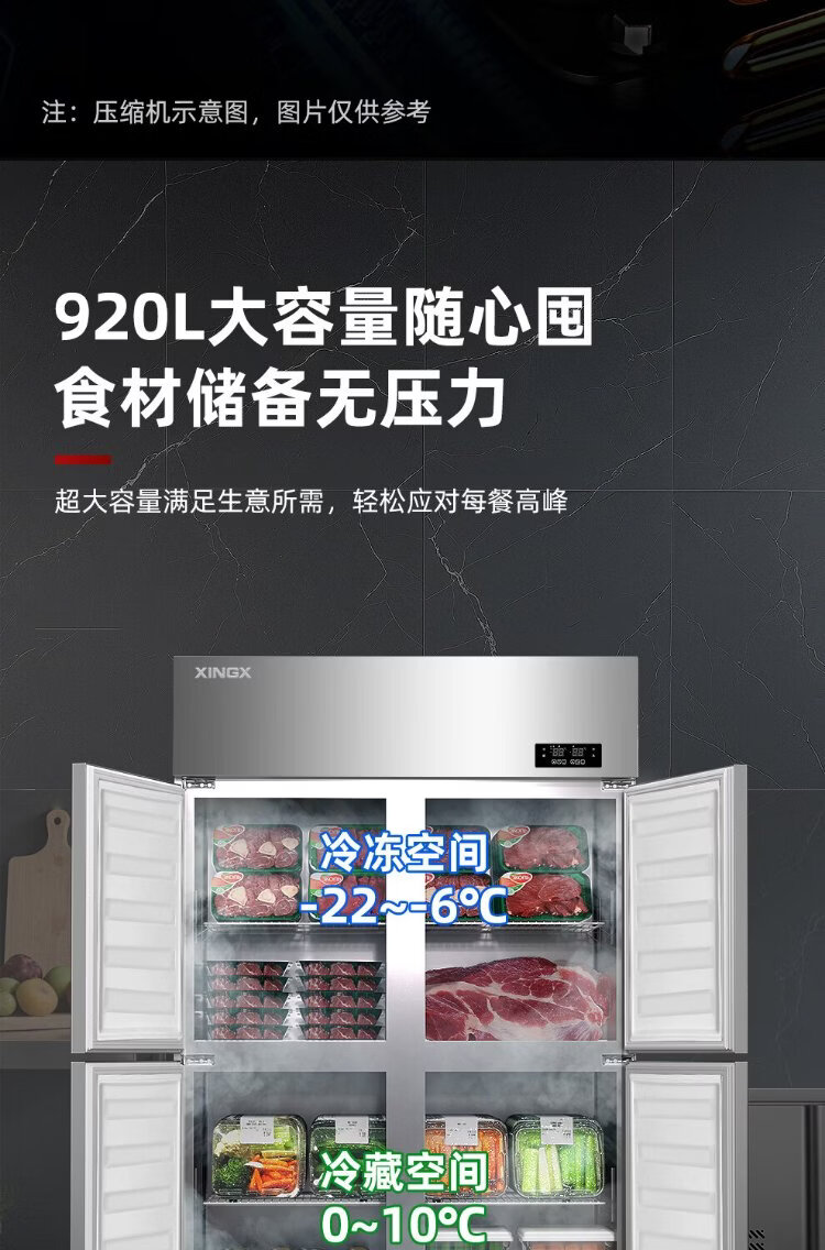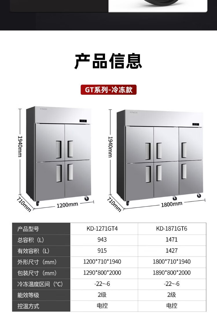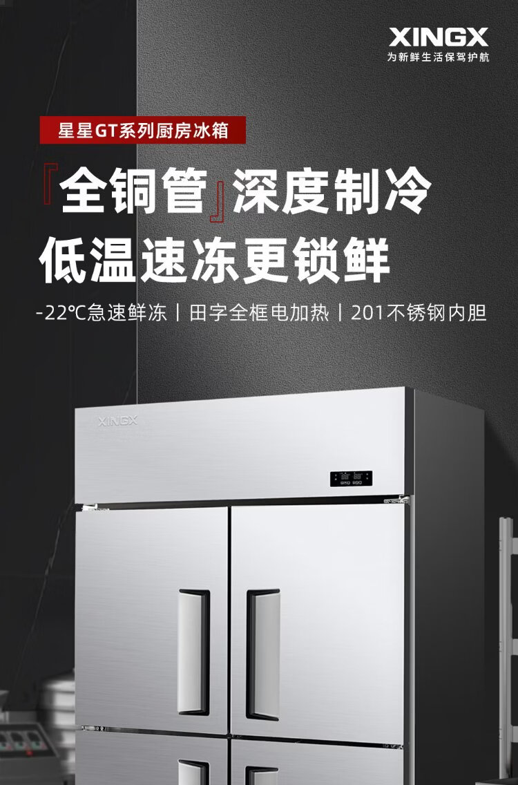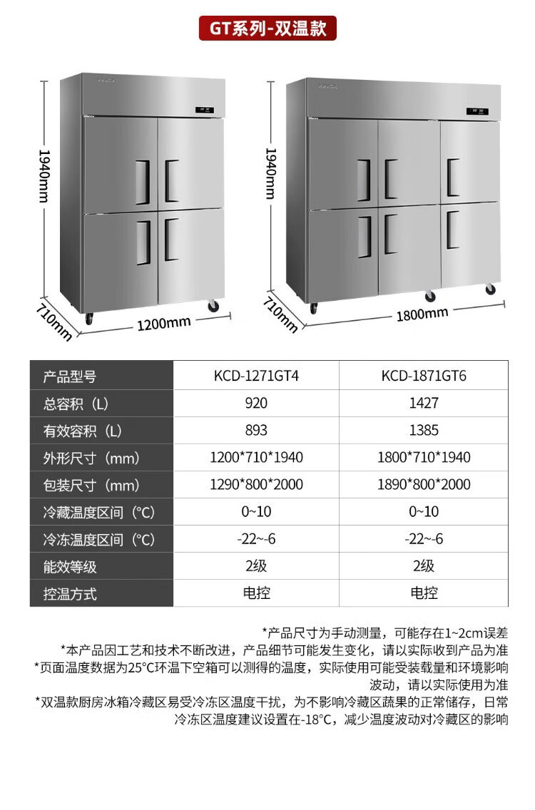 Star four-door refrigerator commercial large-capacity dual-temperature refrigerated freezer kitchen refrigerator restaurant kitchen canteen fresh cabinet stainless steel freezer commercial refrigerator KCD-1271GT4