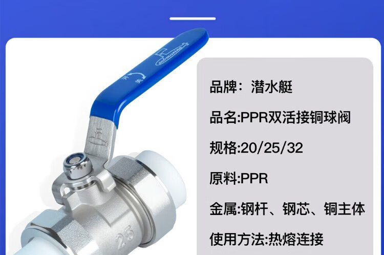 Submarine PPH32 PPR stop ball valve 1 inch water pipe valve double union brass check valve (32 caliber)