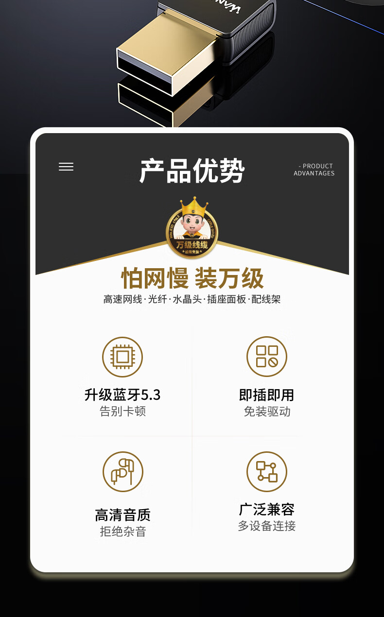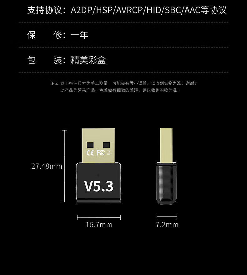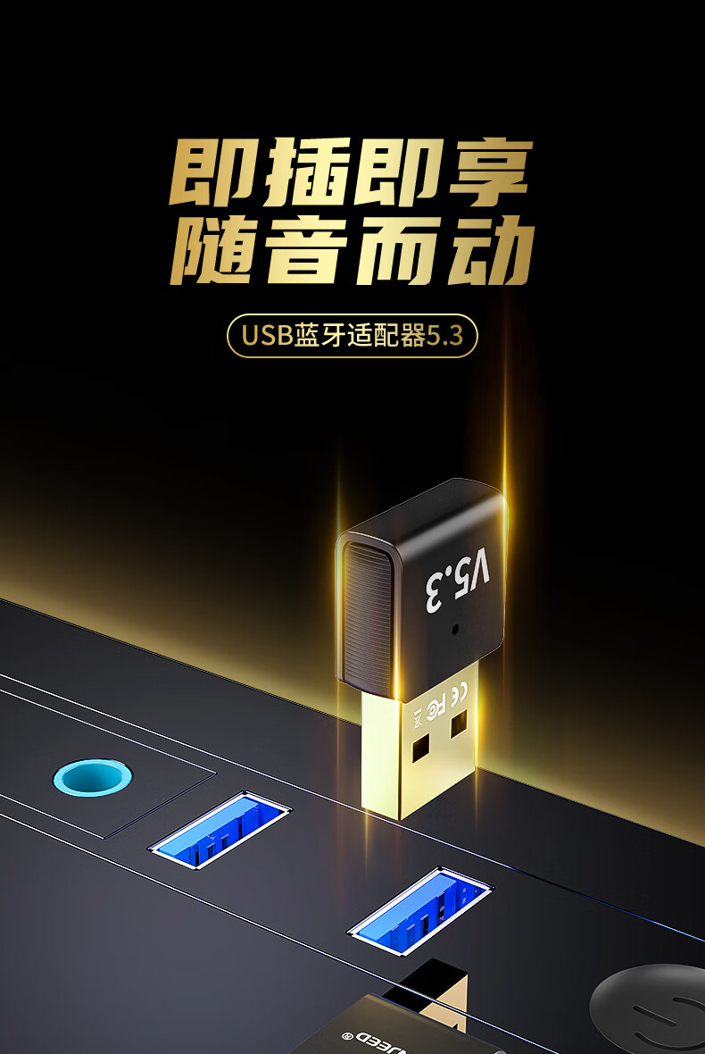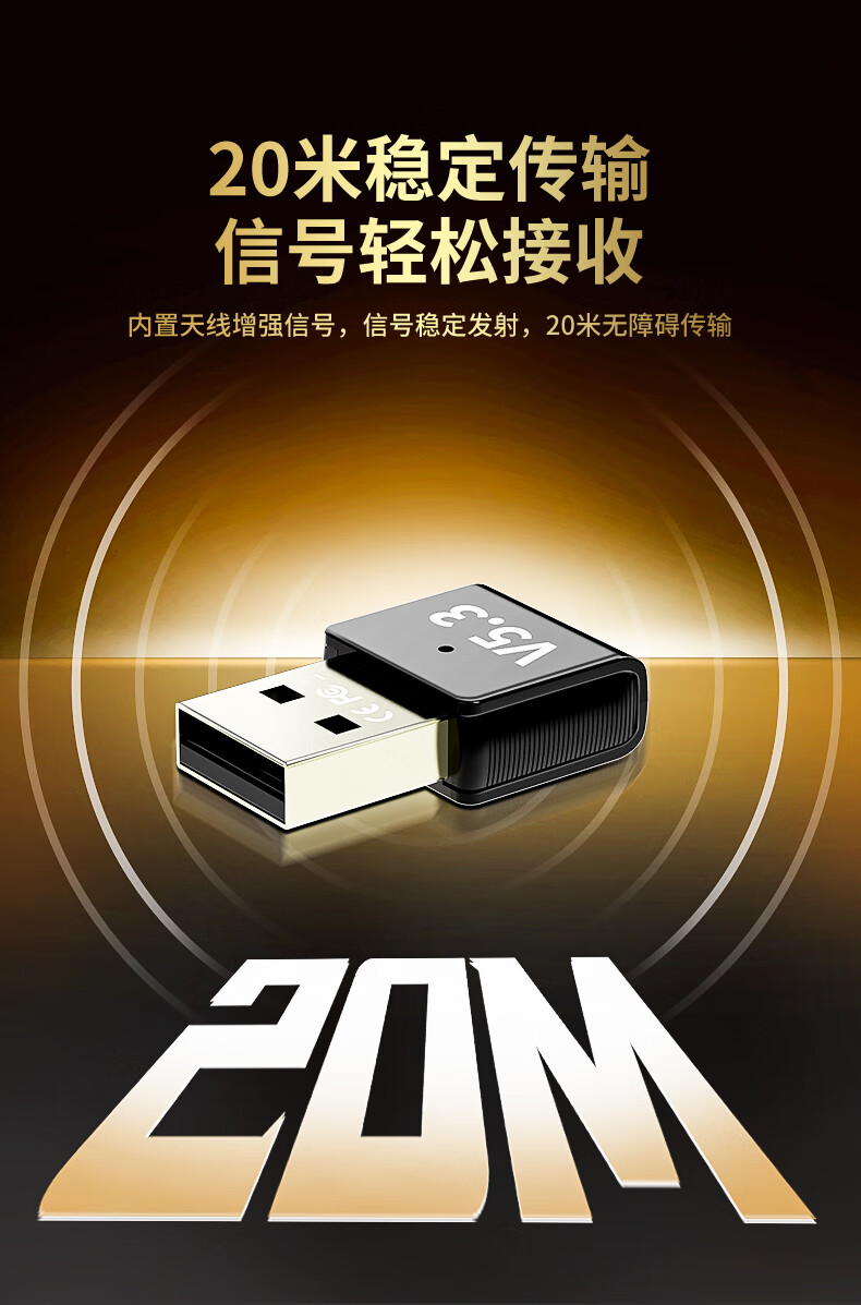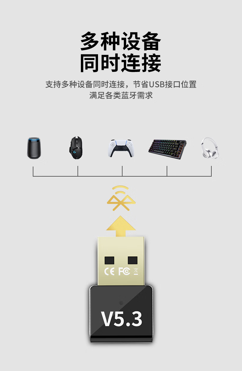 10,000-level USB Bluetooth adapter 5.3 receiver driver-free suitable for wireless keyboard and mouse headphones audio handle computer desktop external PC Bluetooth module transmitter