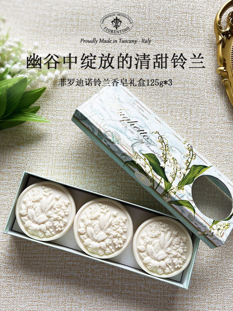 Firodino Italian imported soap fragrance soap gift box lily of the valley handmade soap bath bath cleansing face soap 125g*3