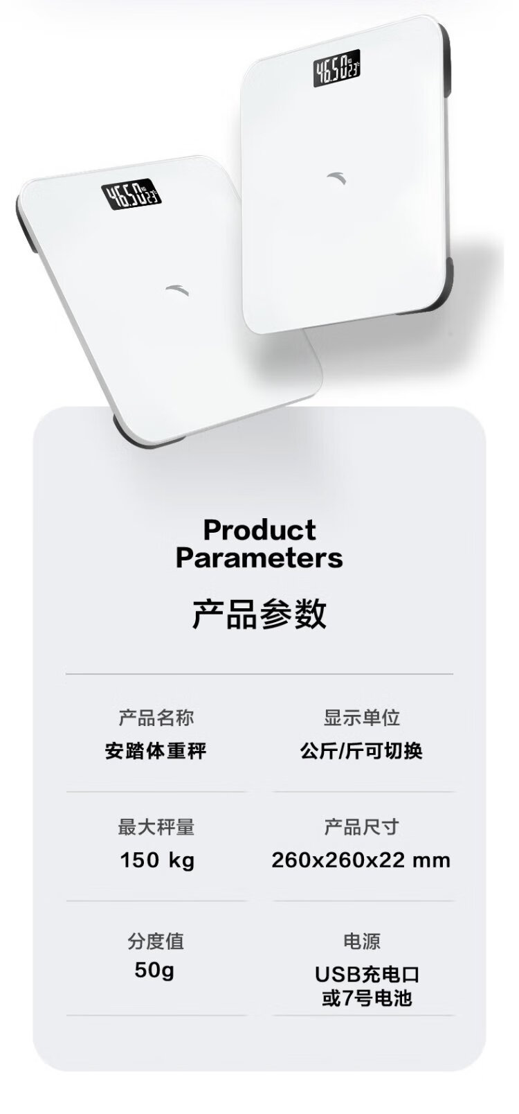 ANTA weight scale electronic scale human body home health scale high-precision weighing accurate LCD high-definition screen battery model