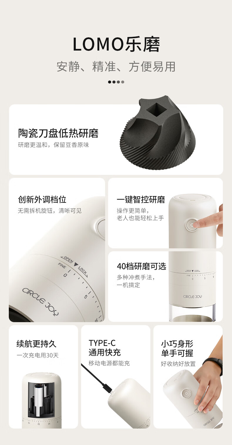 Circle joy electric coffee grinder hand-cranked coffee bean coffee machine portable hand grinder grinder automatic grinder