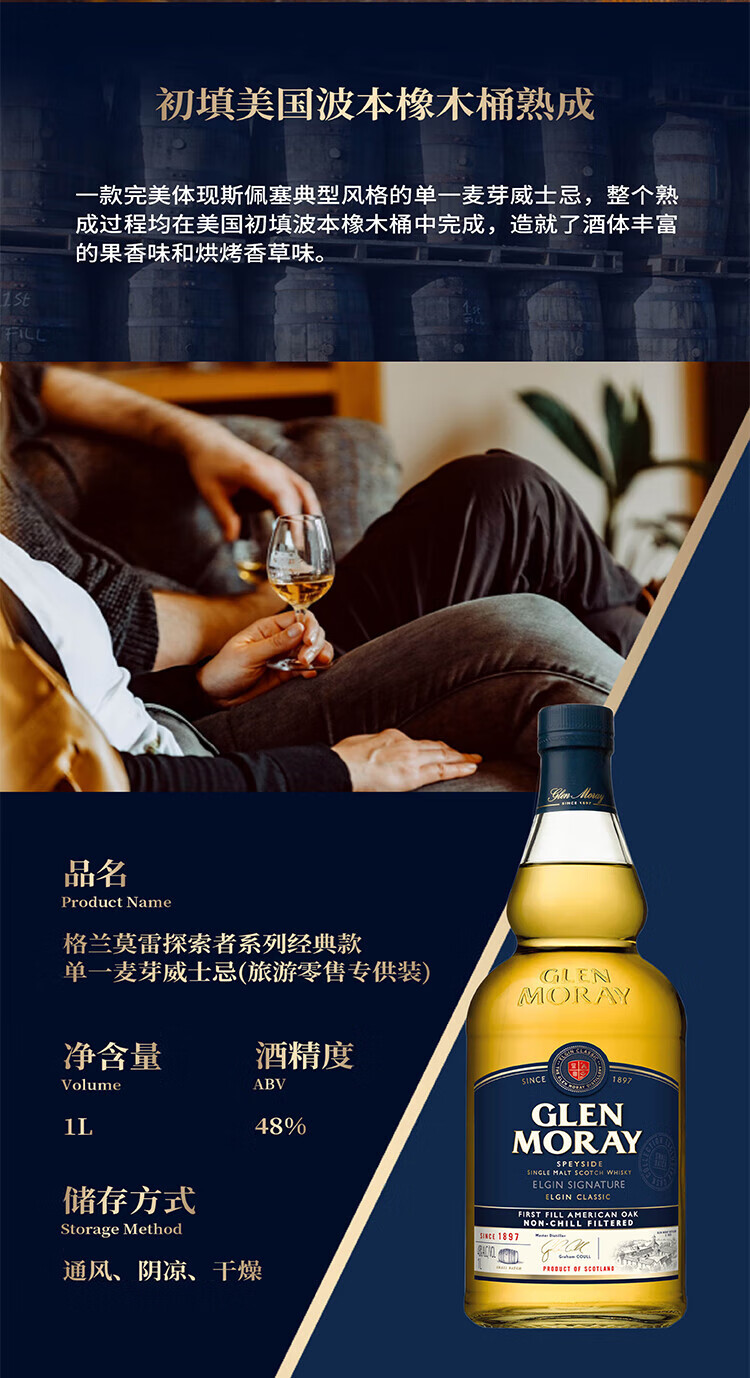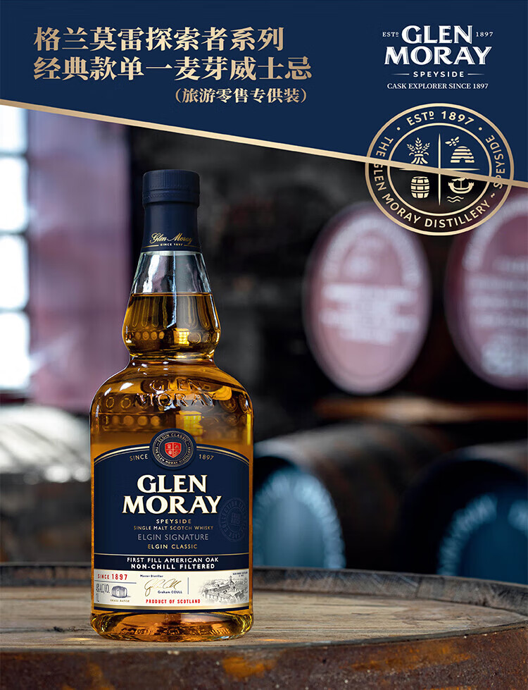 Glen Moray Explorer Classic Scottish Single Malt Whiskey 1000ml 48%