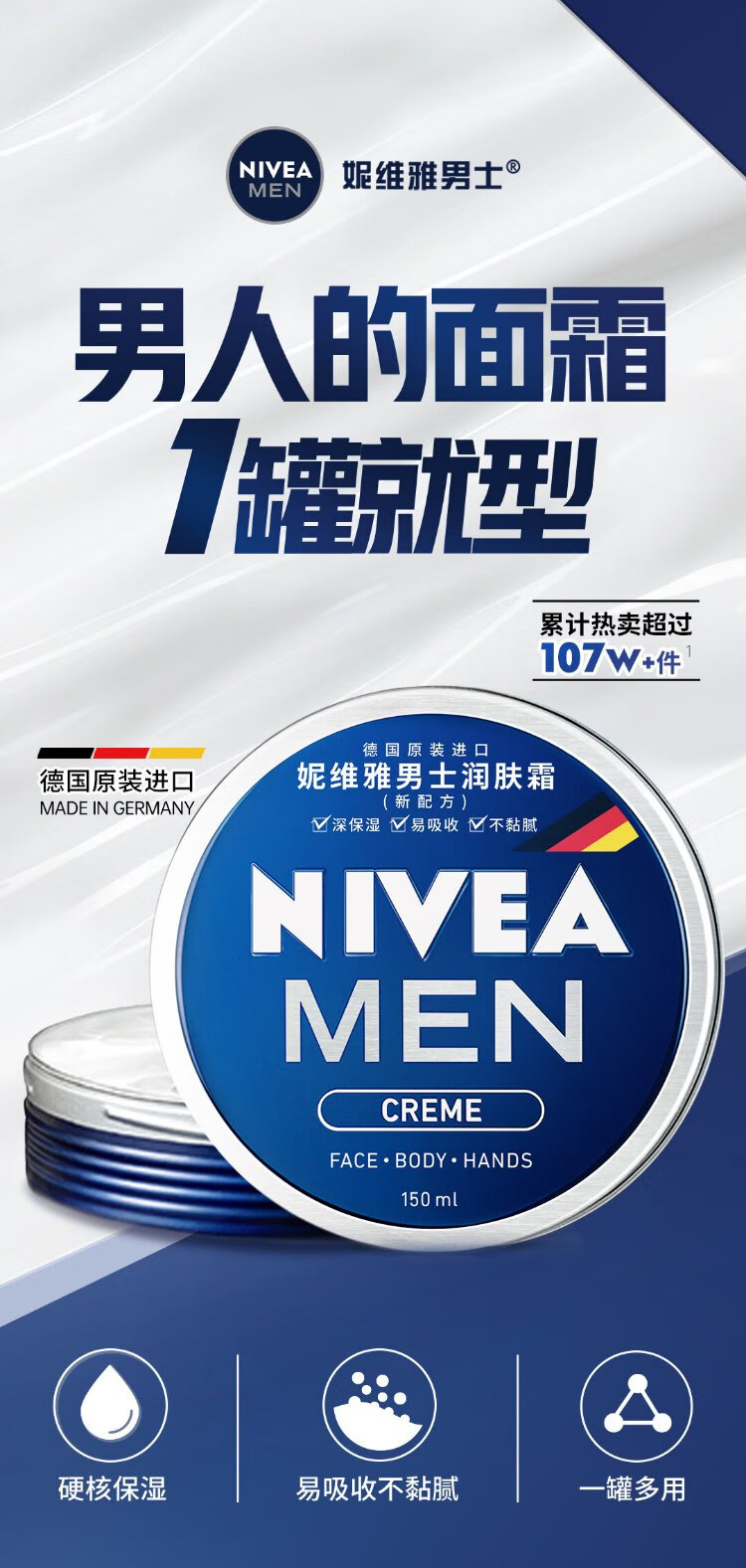 NIVEA Men's Moisturizer 150ml Long-lasting Moisturizing Refreshing Moisturizing Cream Skin Care Products On Clearance