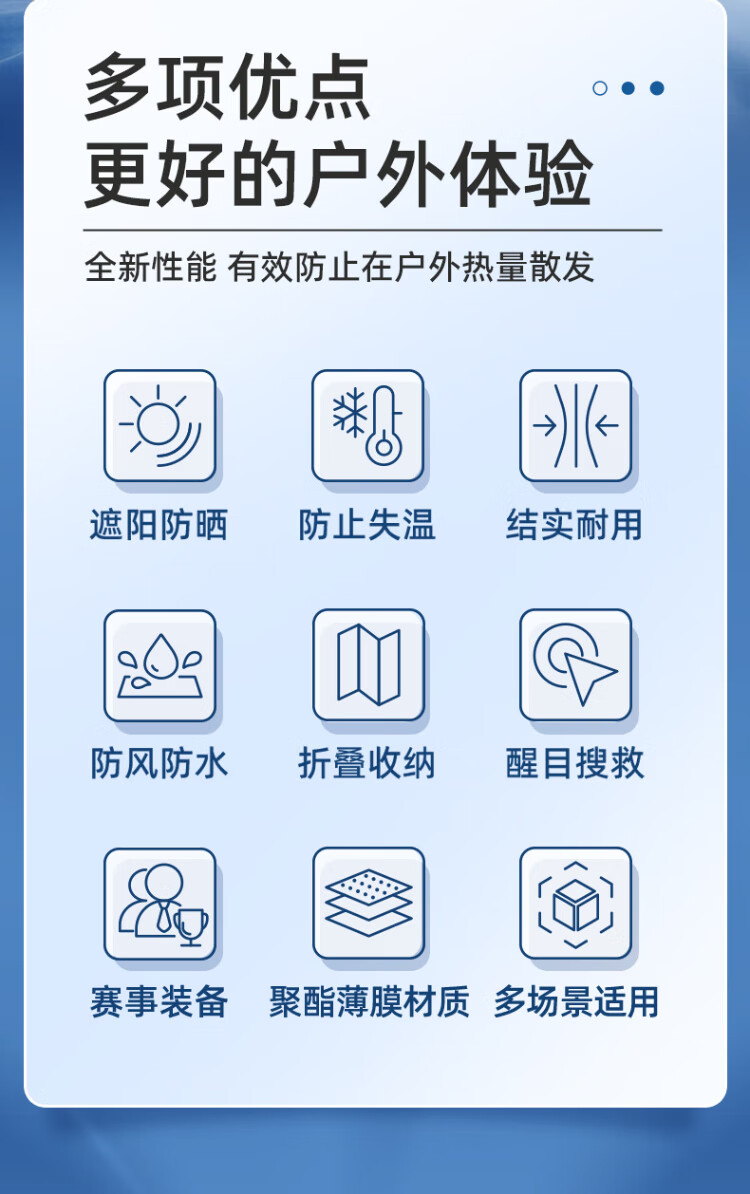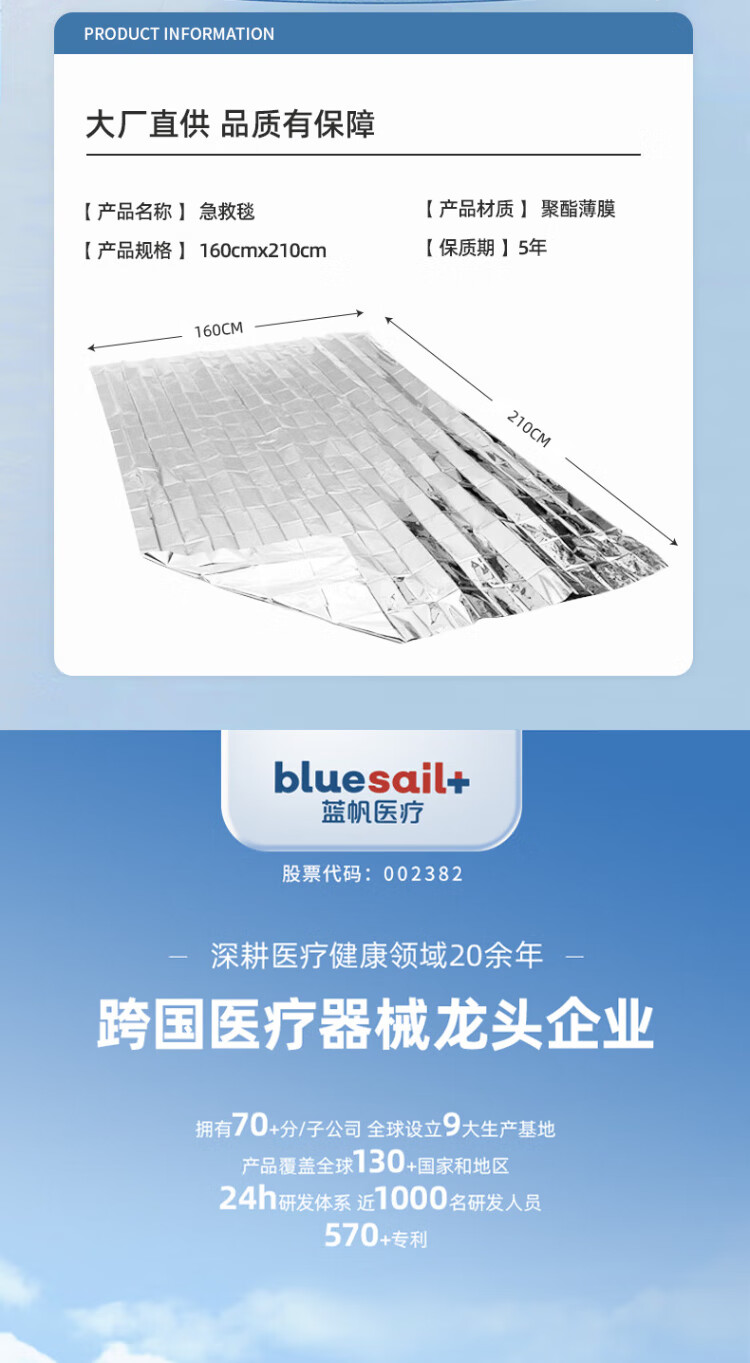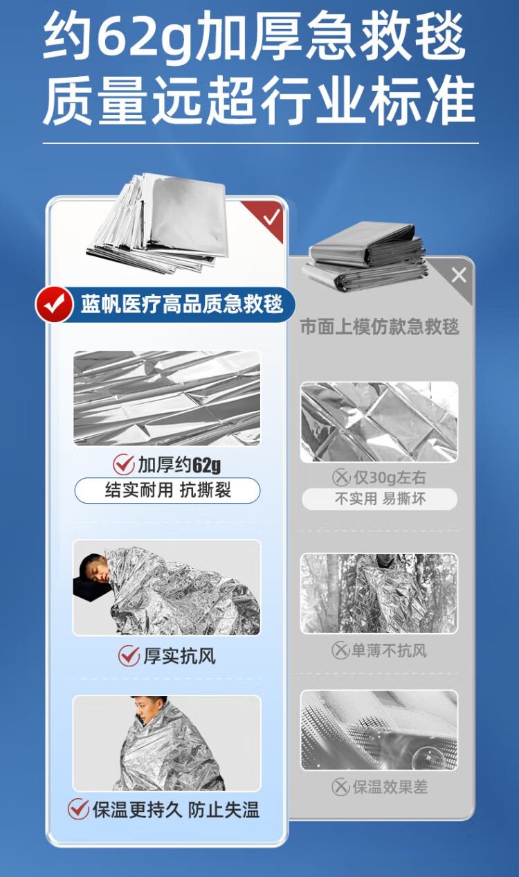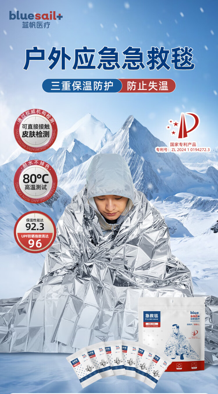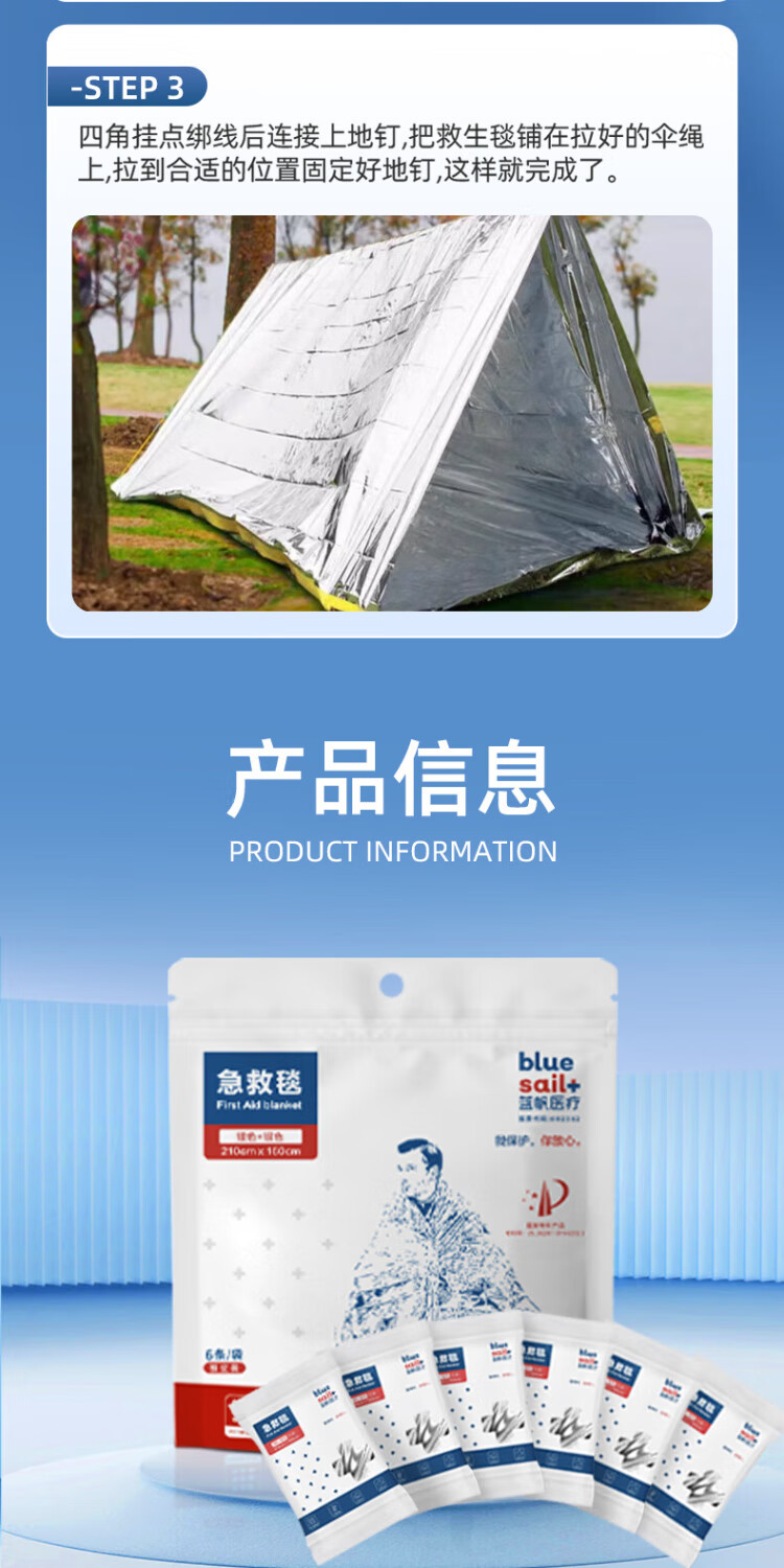 Blue sail medical (blue sail+) earthquake search and rescue lifesaving first aid insulation blanket outdoor equipment polyester film blanket emergency reserve supplies silver two-color 160*210cm 6 pieces/bag