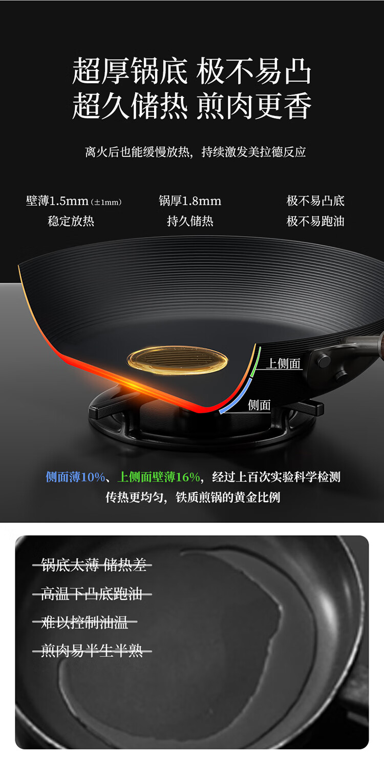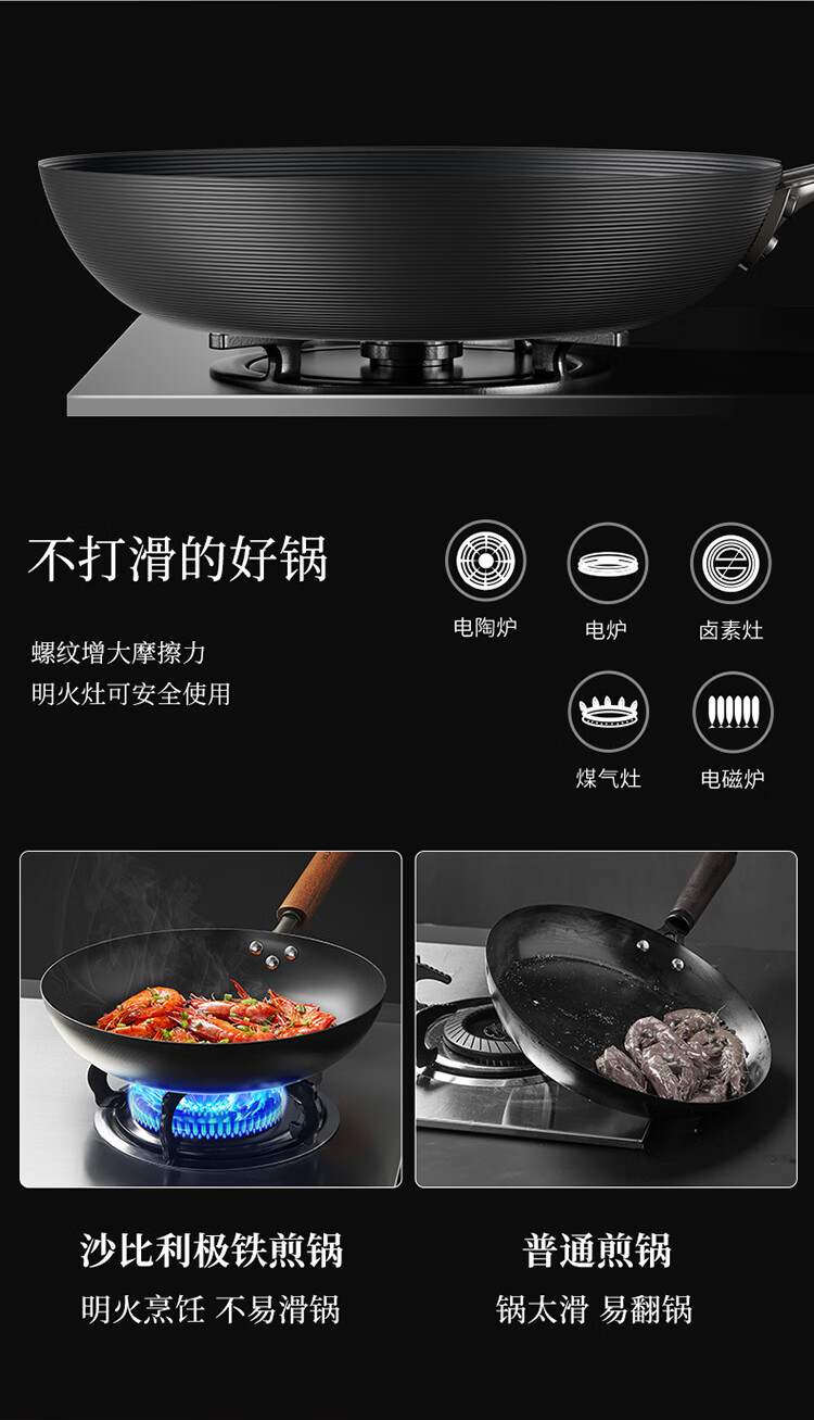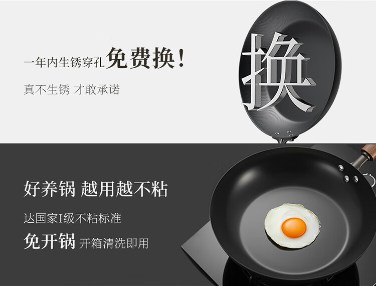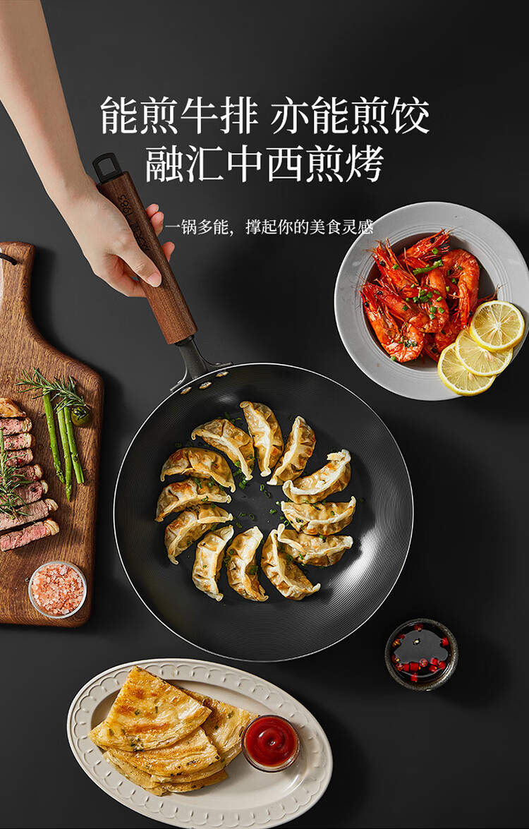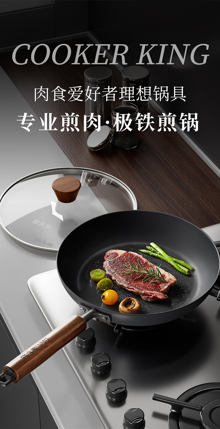 Cooking King pan uncoated household pancake steak non-stick pan induction cooker special small iron pan pole iron frying pan 28cm