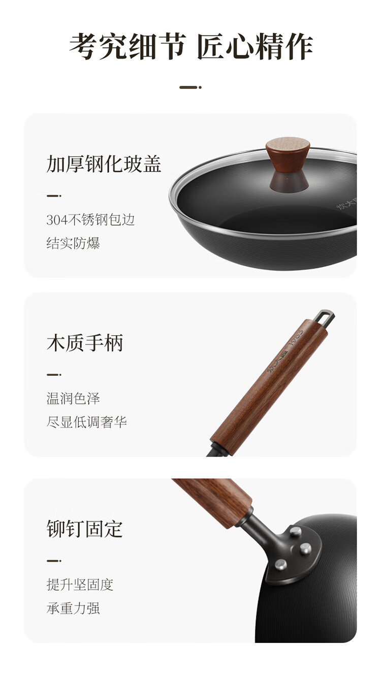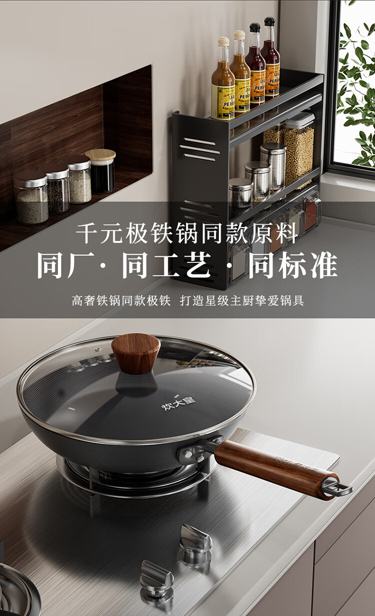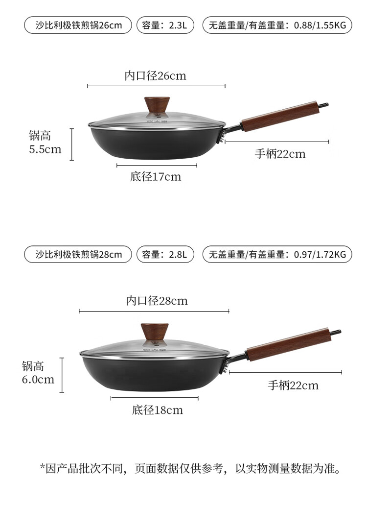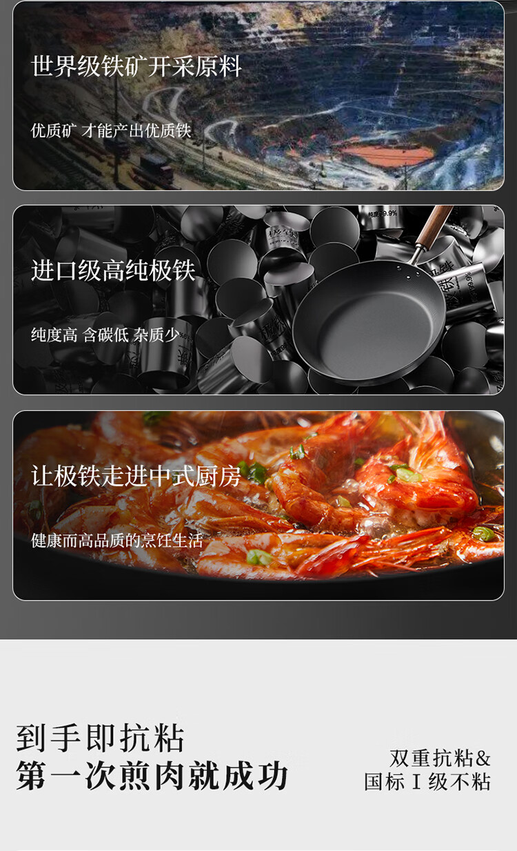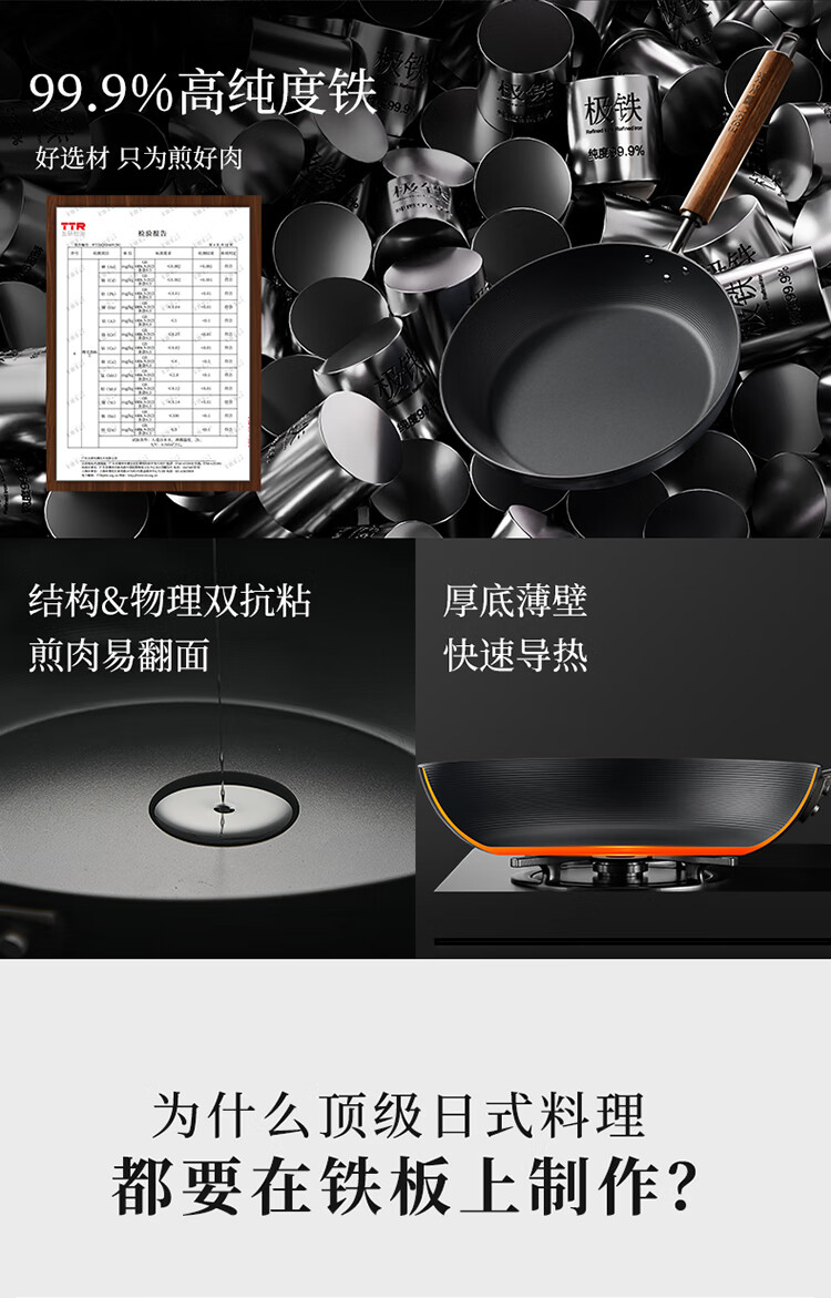 Cooking King pan uncoated household pancake steak non-stick pan induction cooker special small iron pan pole iron frying pan 28cm