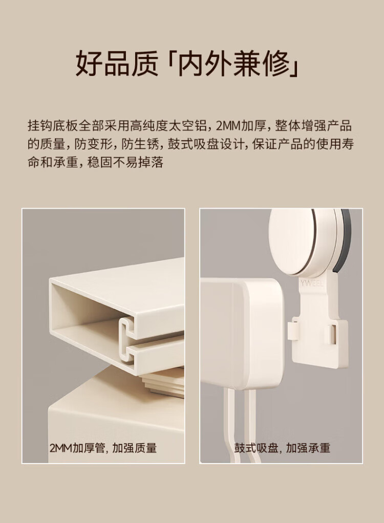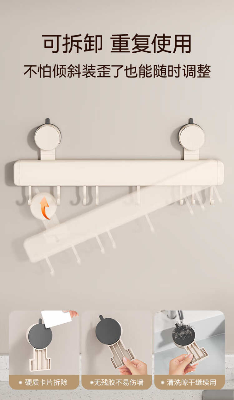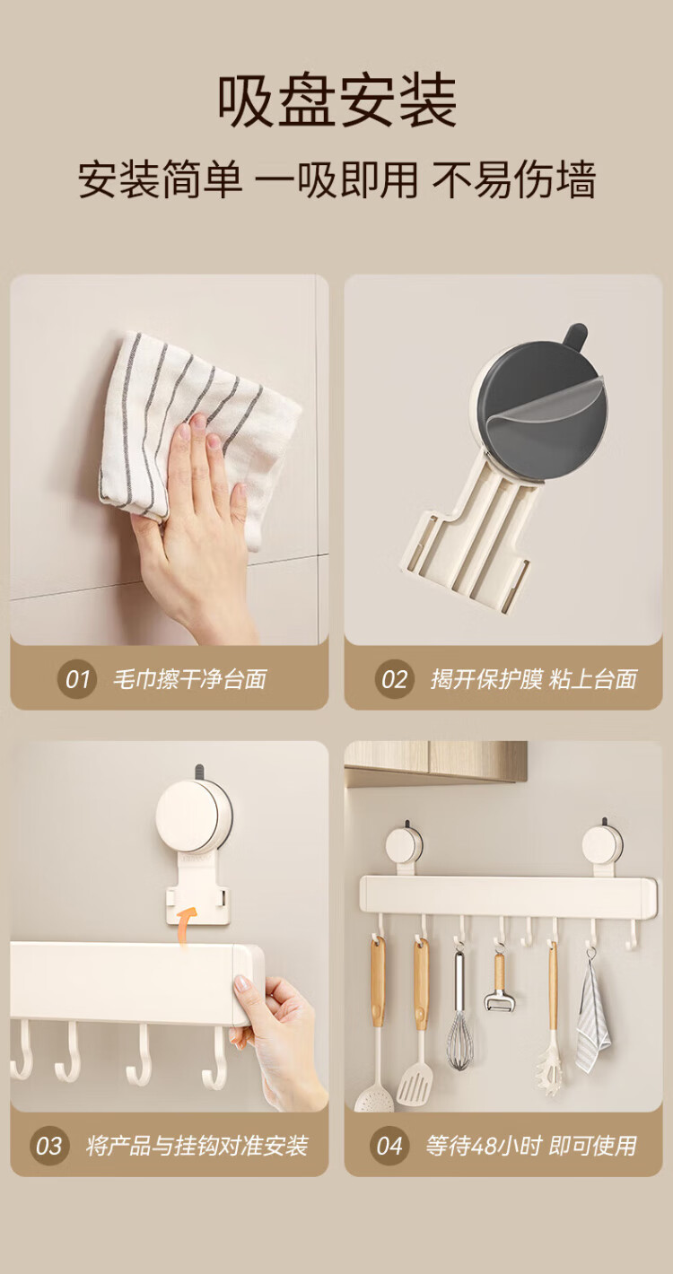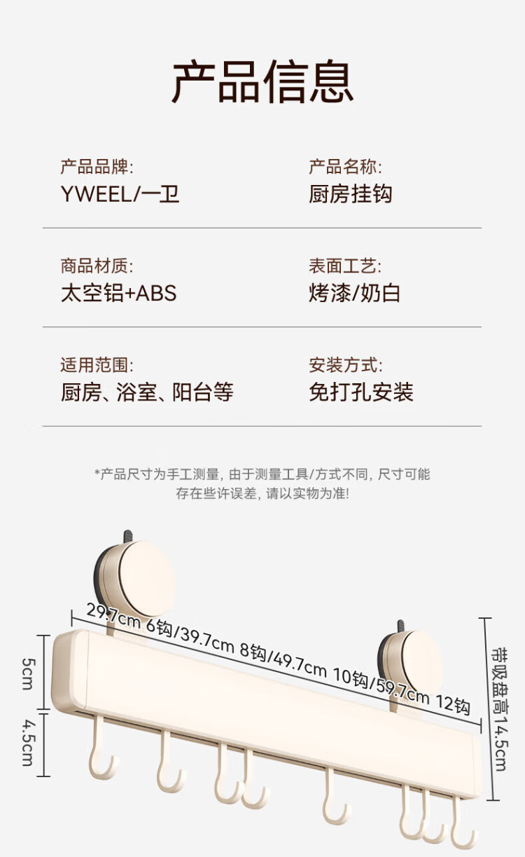 Yweel Milk White Suction Cup Kitchen Hook Rack Hanging Rod Wall-mounted Kitchen Utensil Rack Spoon Shovel Rack Multi-Function
