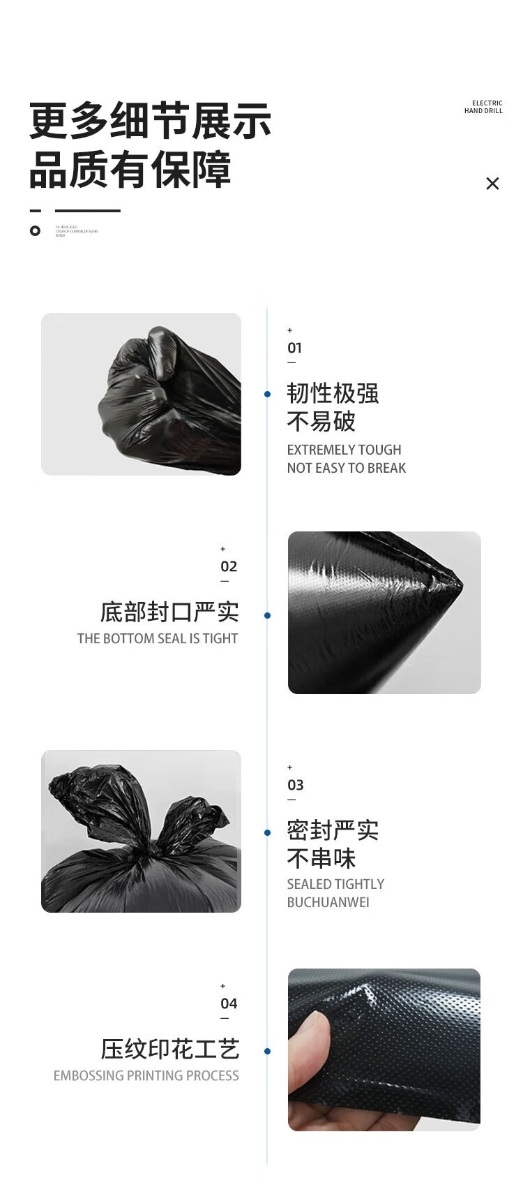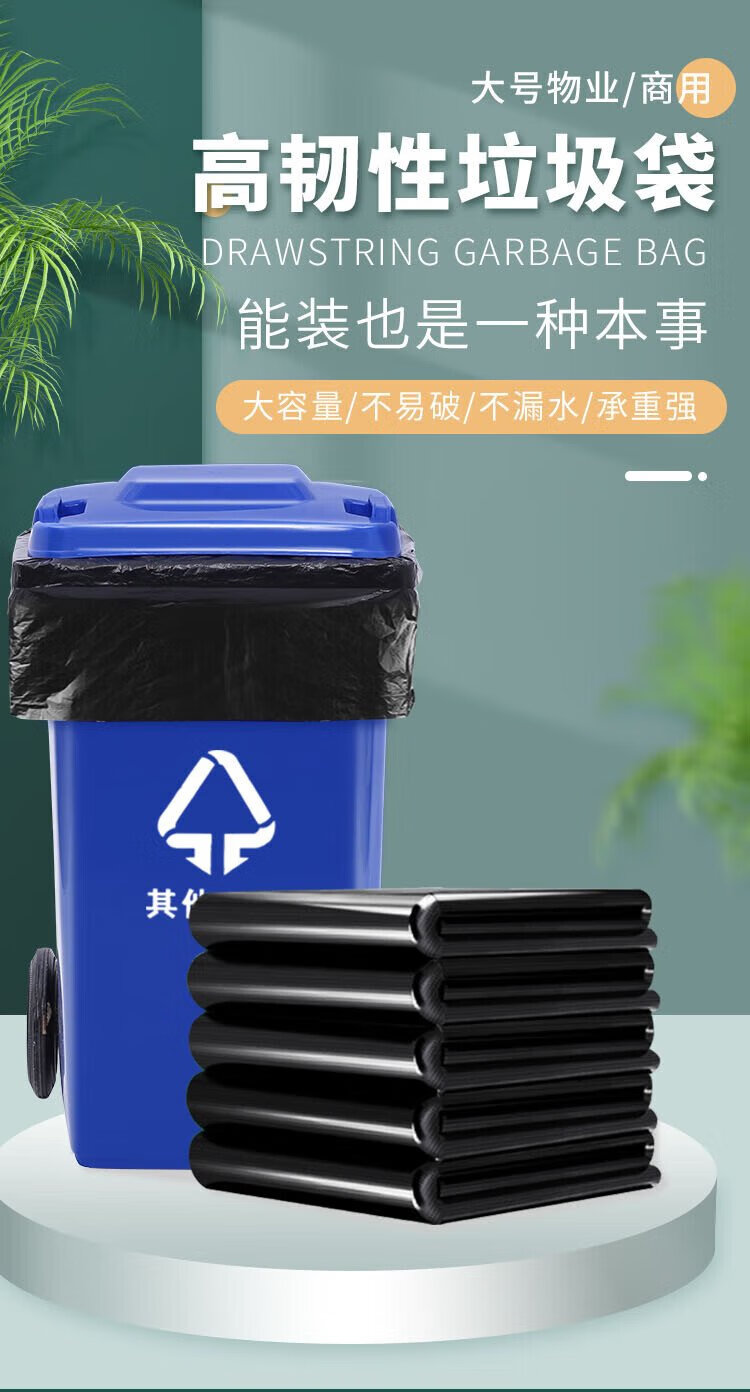 Lide Property Garbage Bags Large Thick 2.8 Silk Black Flat Mouth 90*100cm*50 pieces Trash Can Classification