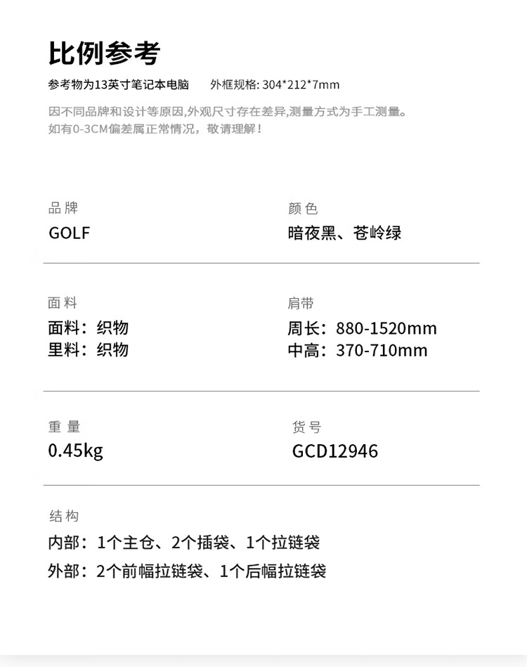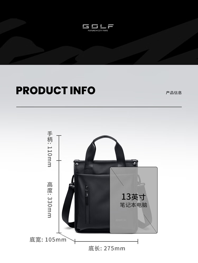 Golf (GOLF) business briefcase men's handbag 13-inch computer bag multi-compartment office document bag single shoulder crossbody bag
